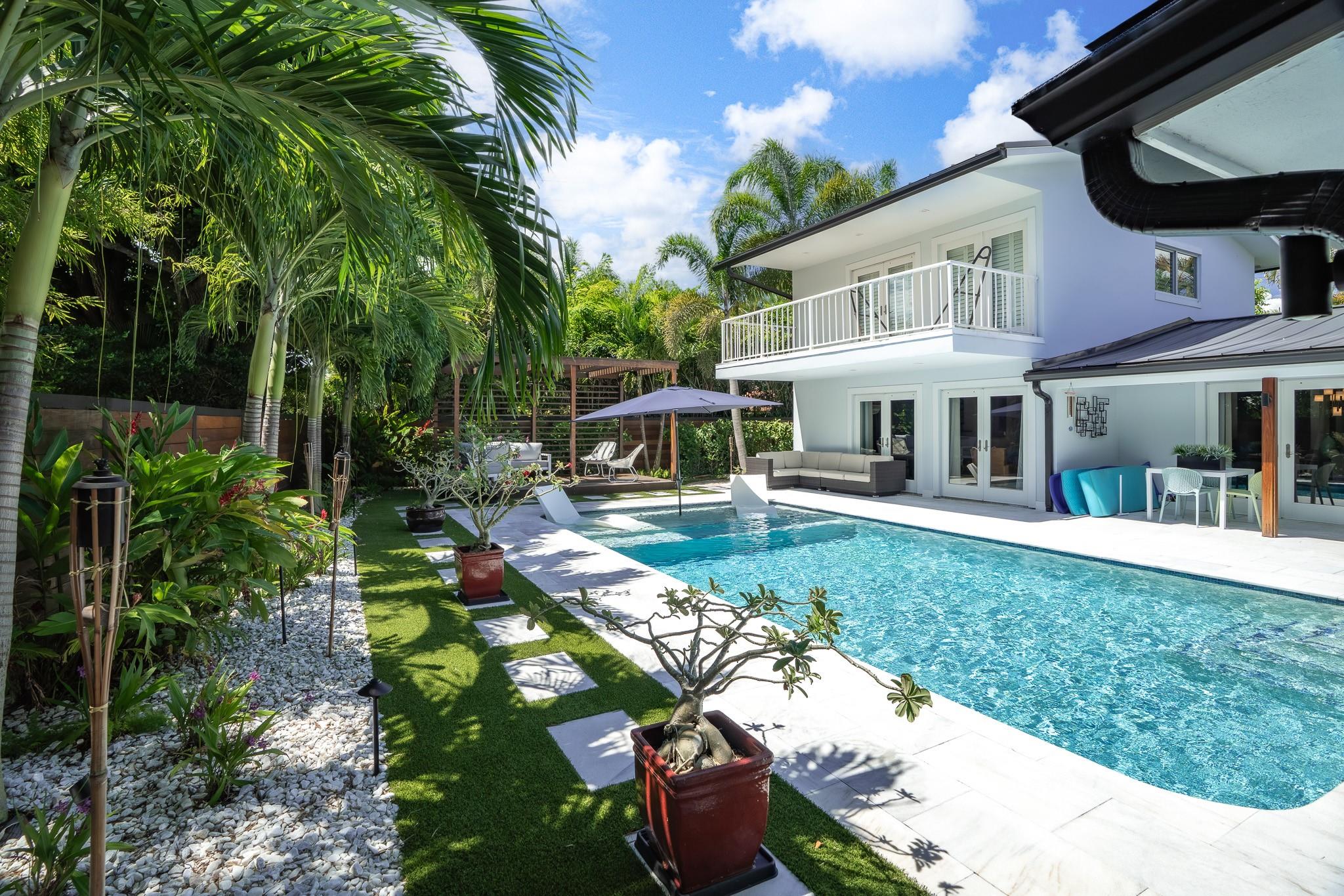 Sophisticated charm meets modern comfort on one of Coral Ridge’s most desirable streets. This 3-bed, 2.5-bath pool home features built-ins and a sleek eat-in kitchen with quartz peninsula and stainless appliances. Entertain with a family room, formal dining, or work away in your home office. The primary suite offers custom lighting and ample storage. Outdoors, enjoy a private resort-style oasis with Diamond Brite pool and pergola—fully renovated in 2022. Additional highlights include a renovated two-car garage, new metal roof, Rain Bird sprinklers, and EV charger.