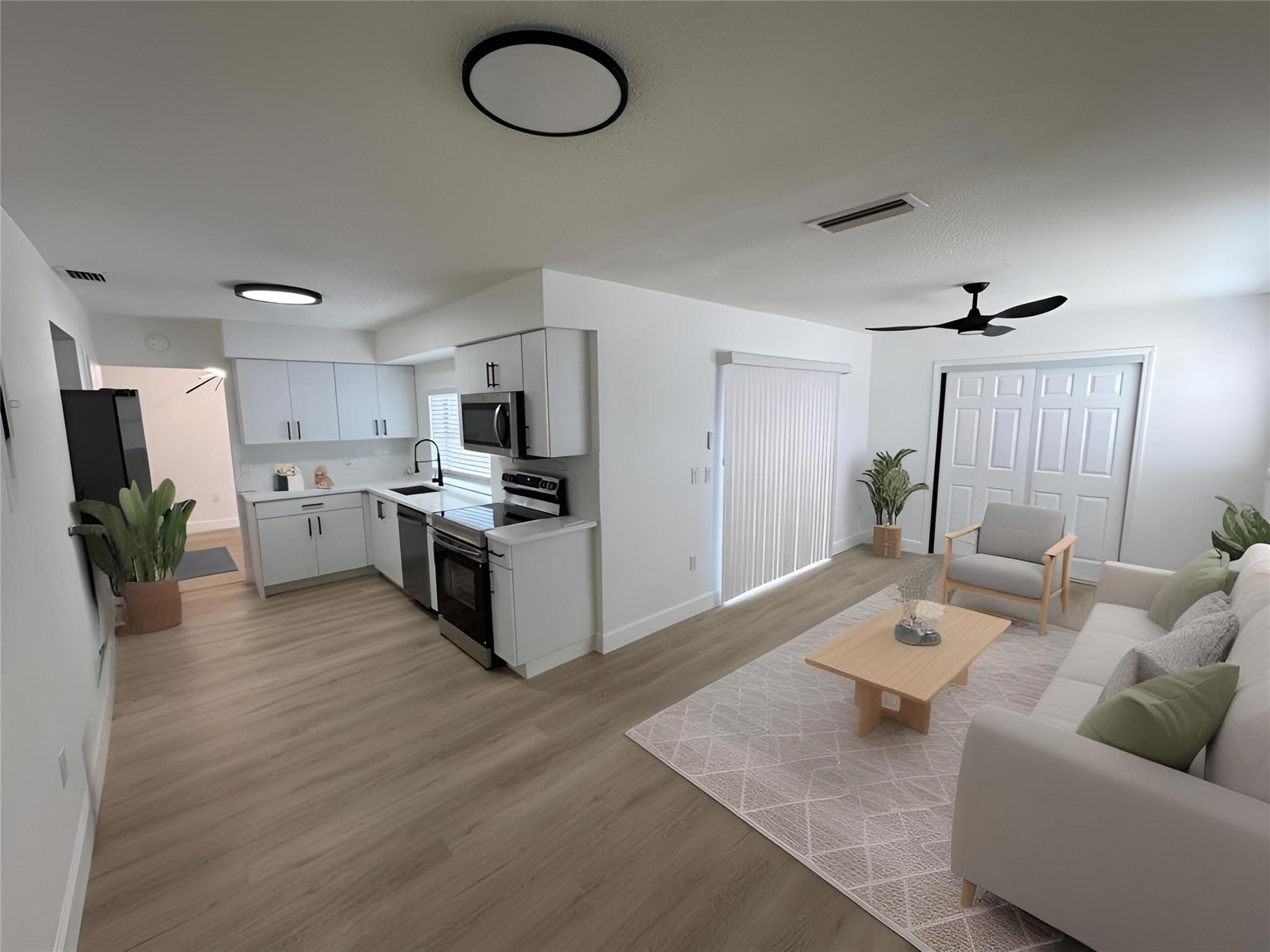 Promotion: Ask about the Seller incentive for closing costs or buy-down credit available. Beautiful Move in Ready 3 bed 2 bath plus a family room and 1 car garage| Room for a 4th Bedroom | NO HOA | Split Floor plan | Property Features European Designer Style Kitchen with Quartz Countertops and New Stainless Steel Appliances plus new Washer and Dryer | New flooring throughout | Oversized fenced back yard with fruit trees | Accordion Shutters | Highly sought after area of Pembroke Pines | Conveniently located close to Pembroke Mall | Hospitals | Shopping | Dining | Entertainment.