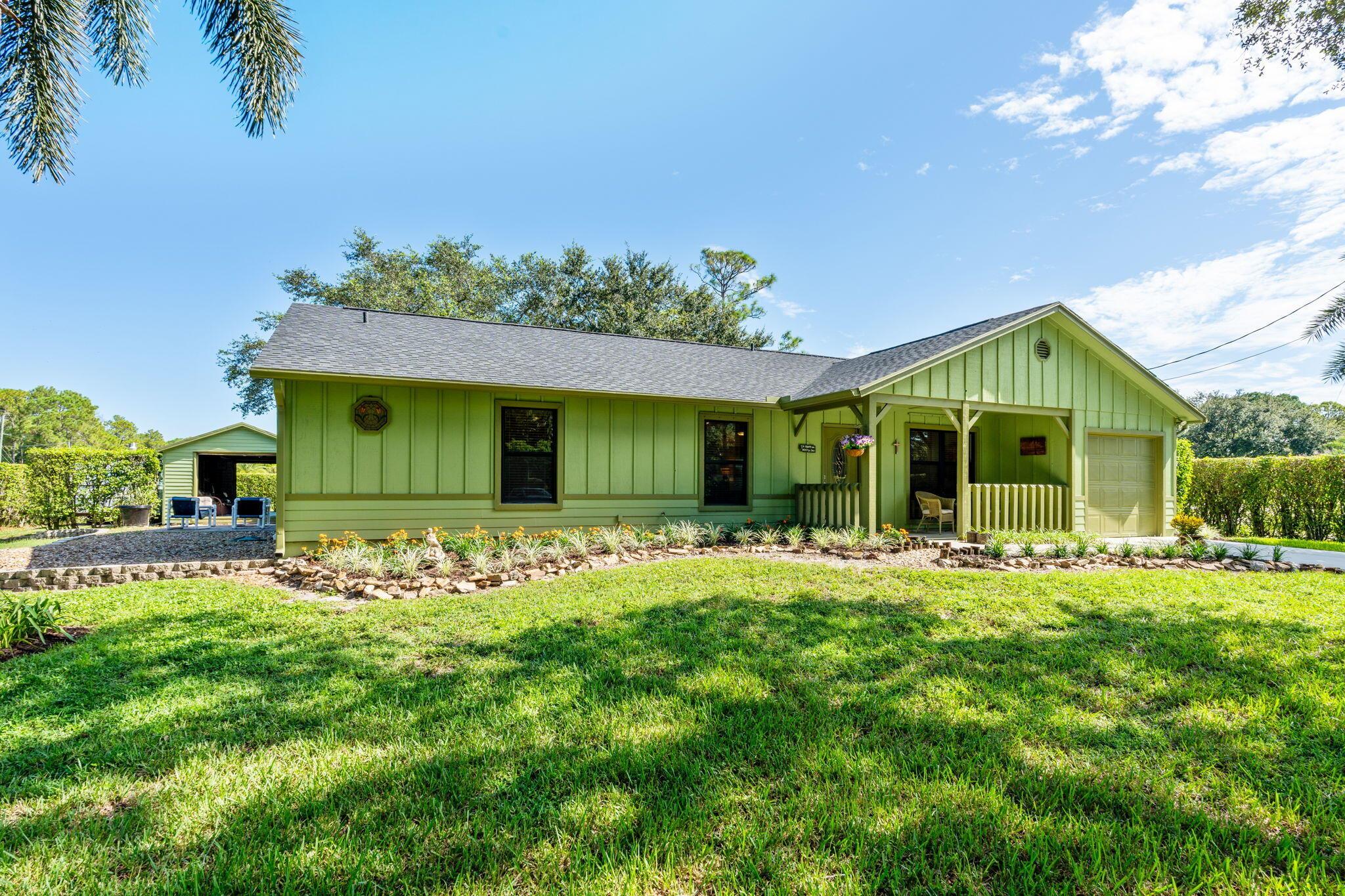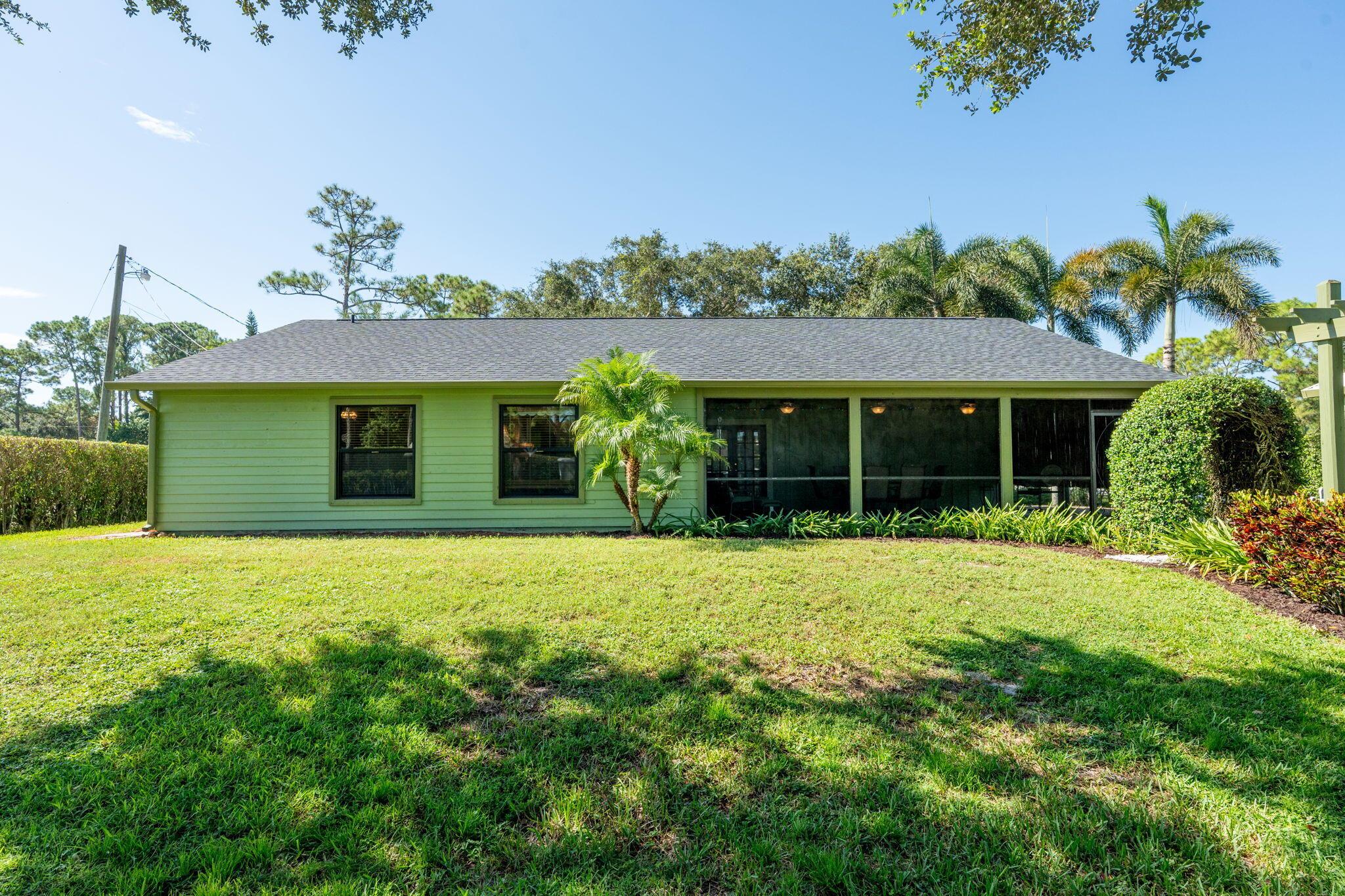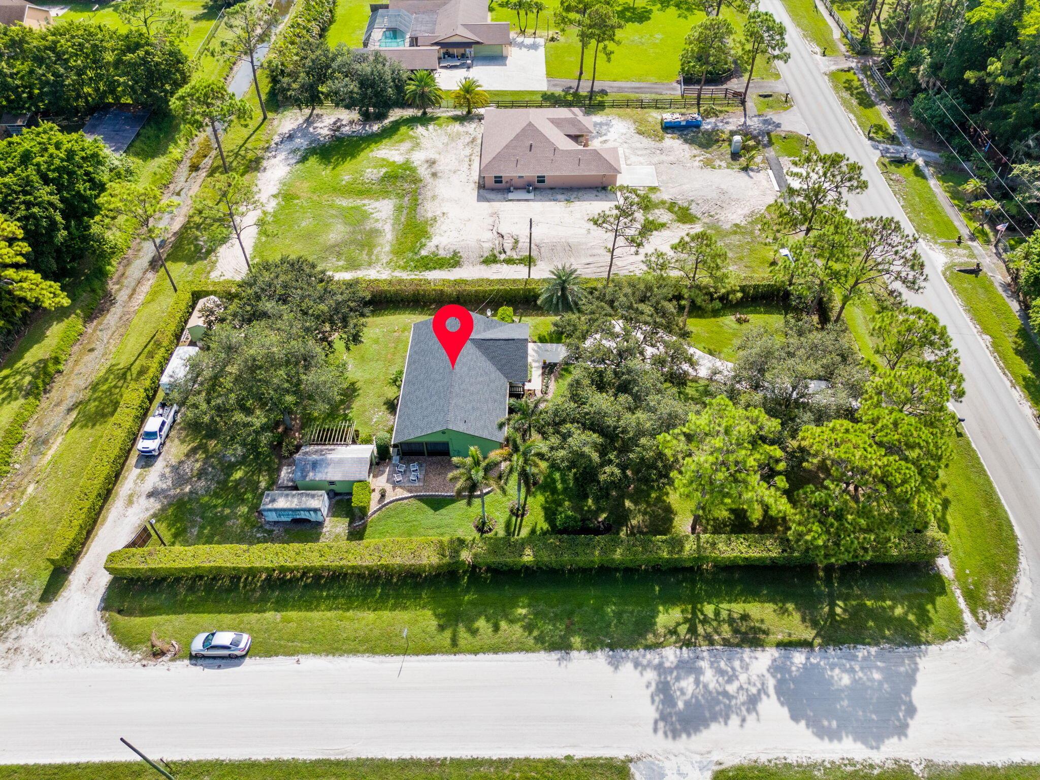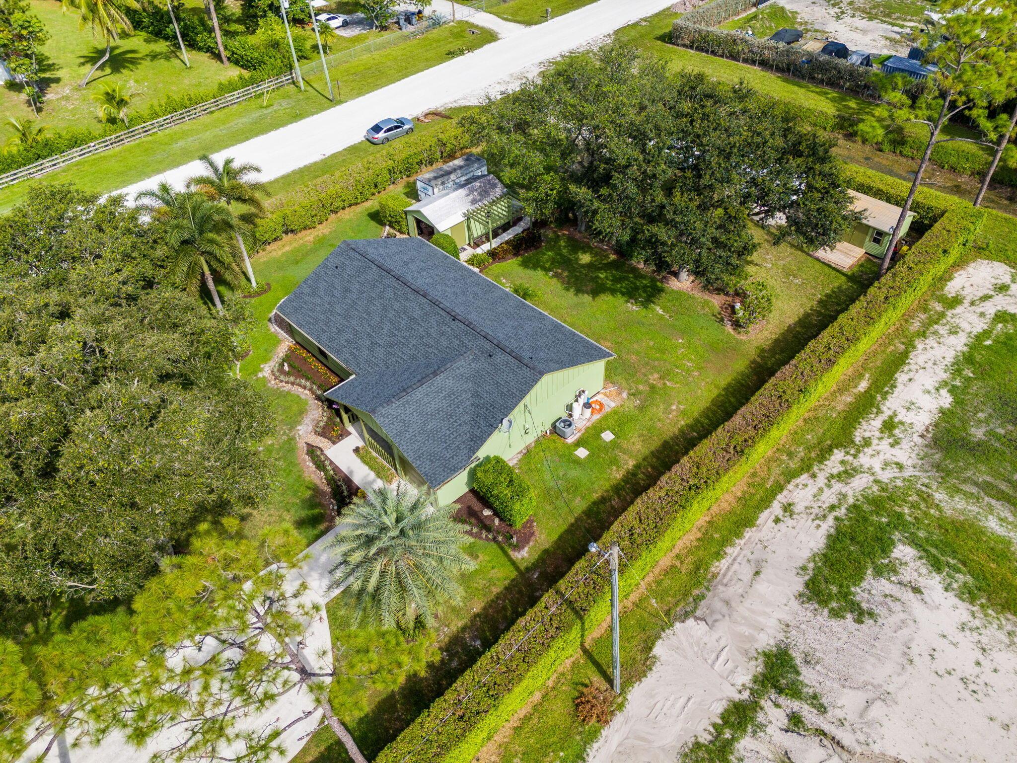 Welcome to your dream home in The Acreage! This beautiful 3-bedroom, 2-bathroom residence boasts a brand NEW ROOF and all new IMPACT WINDOWS for peace of mind and energy efficiency. Sitting on a spacious 1.25 acre lot along a PAVED ROAD, this property offers perfect blend of privacy and convenience. Step inside to find vaulted ceilings, a split-bedroom layour, and a bright, open floor plan perfect for family living. The home features a covered patio for relaxing or entertaining, plus two oversized sheds that provide ample storage or workshop space. With a PRIVATE ENTRANCE ideal for a home-based business, this property offers both lifestyle and opportunity. Schedule your private tour today!