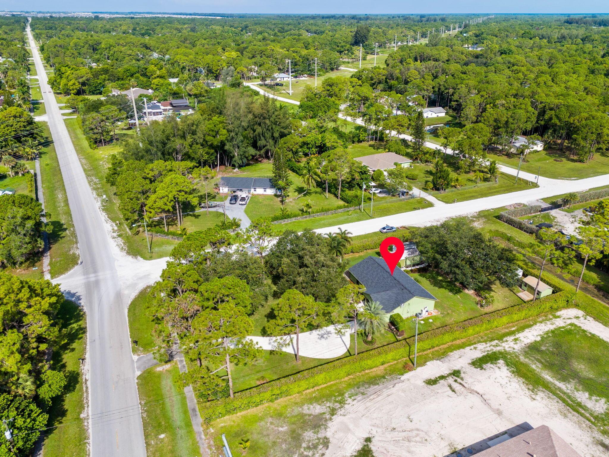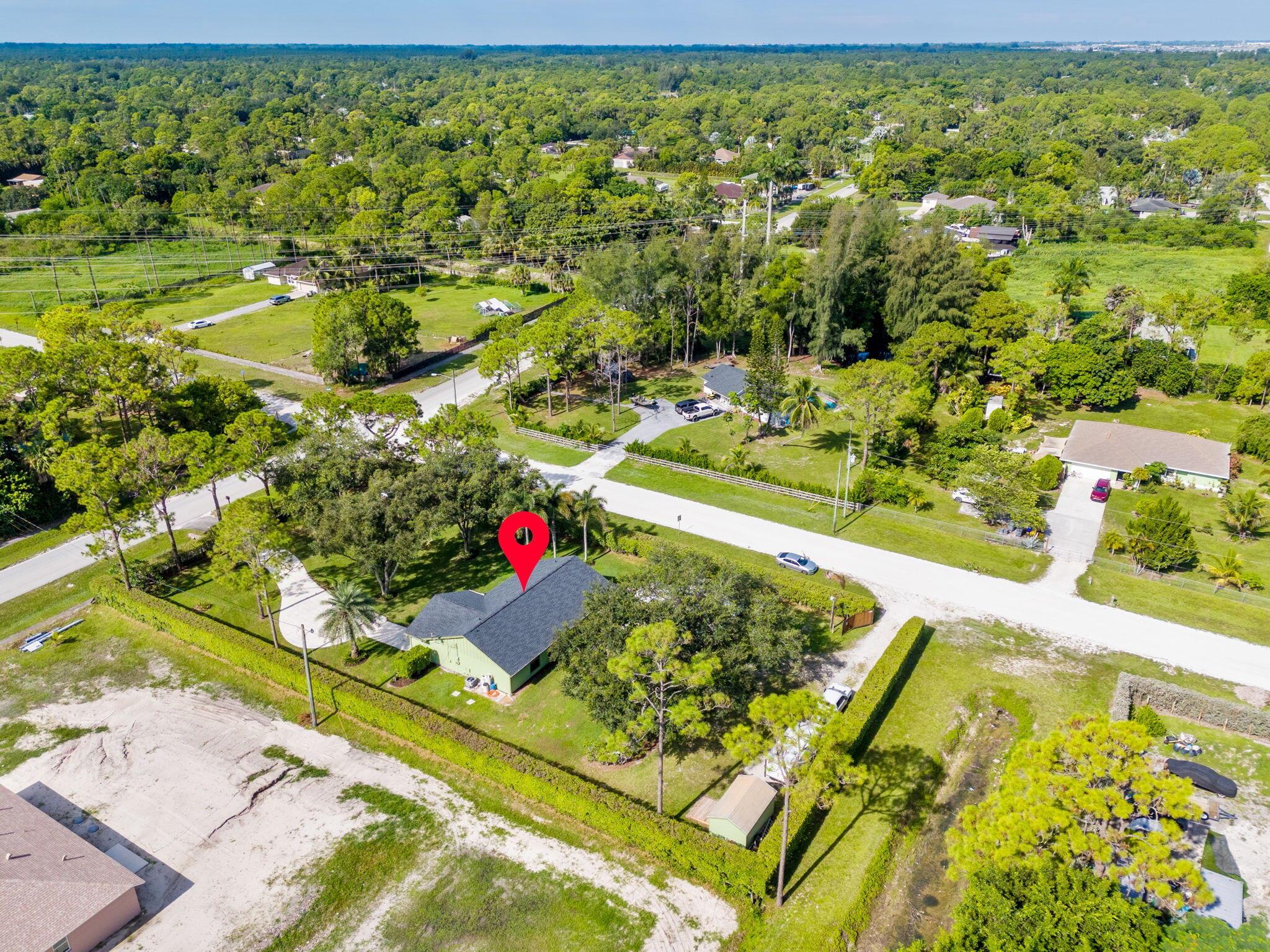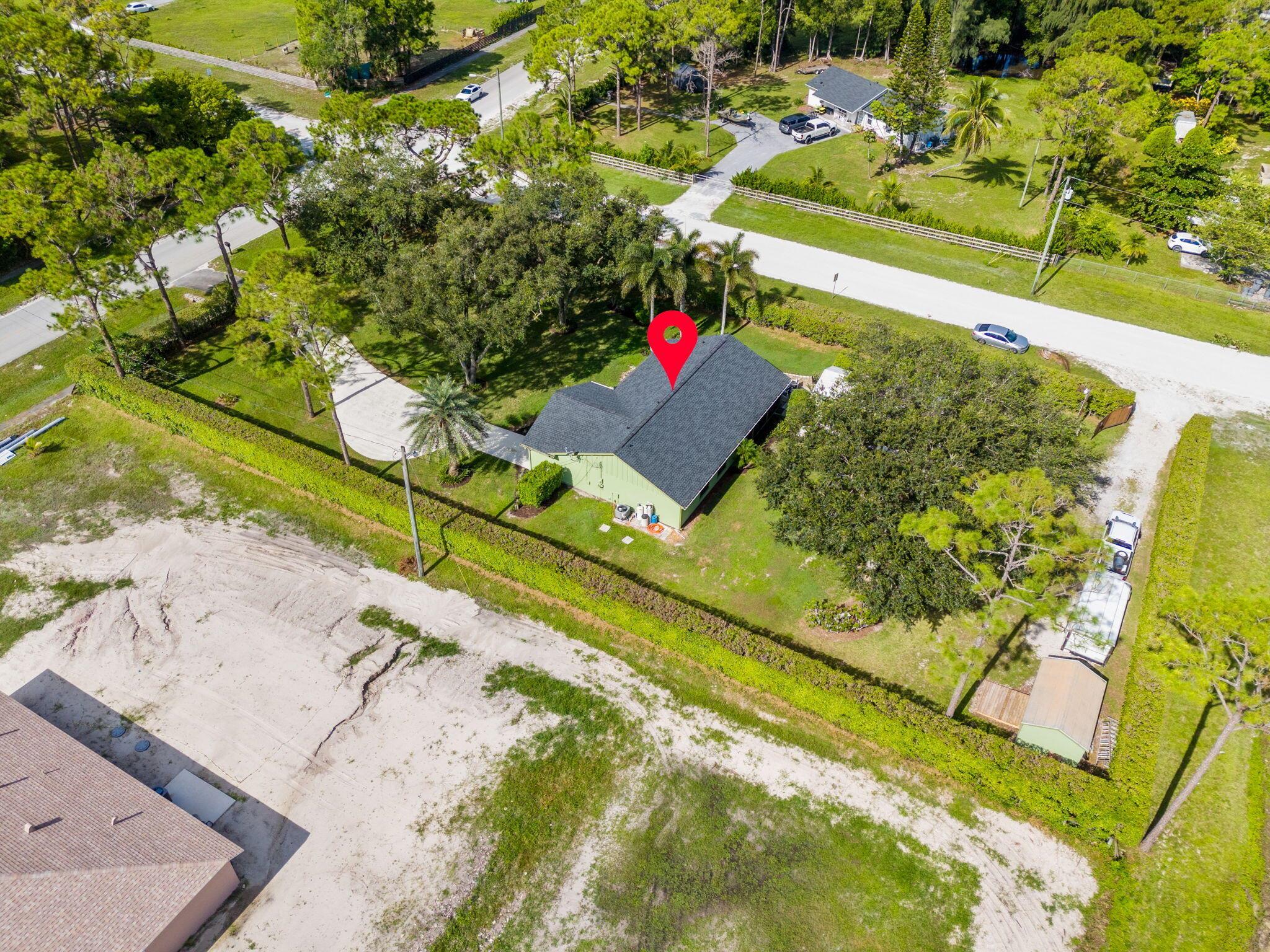 Welcome to your dream home in The Acreage! This beautiful 3-bedroom, 2-bathroom residence boasts a brand NEW ROOF and all new IMPACT WINDOWS for peace of mind and energy efficiency. Sitting on a spacious 1.25 acre lot along a PAVED ROAD, this property offers perfect blend of privacy and convenience. Step inside to find vaulted ceilings, a split-bedroom layour, and a bright, open floor plan perfect for family living. The home features a covered patio for relaxing or entertaining, plus two oversized sheds that provide ample storage or workshop space. With a PRIVATE ENTRANCE ideal for a home-based business, this property offers both lifestyle and opportunity. Schedule your private tour today!
