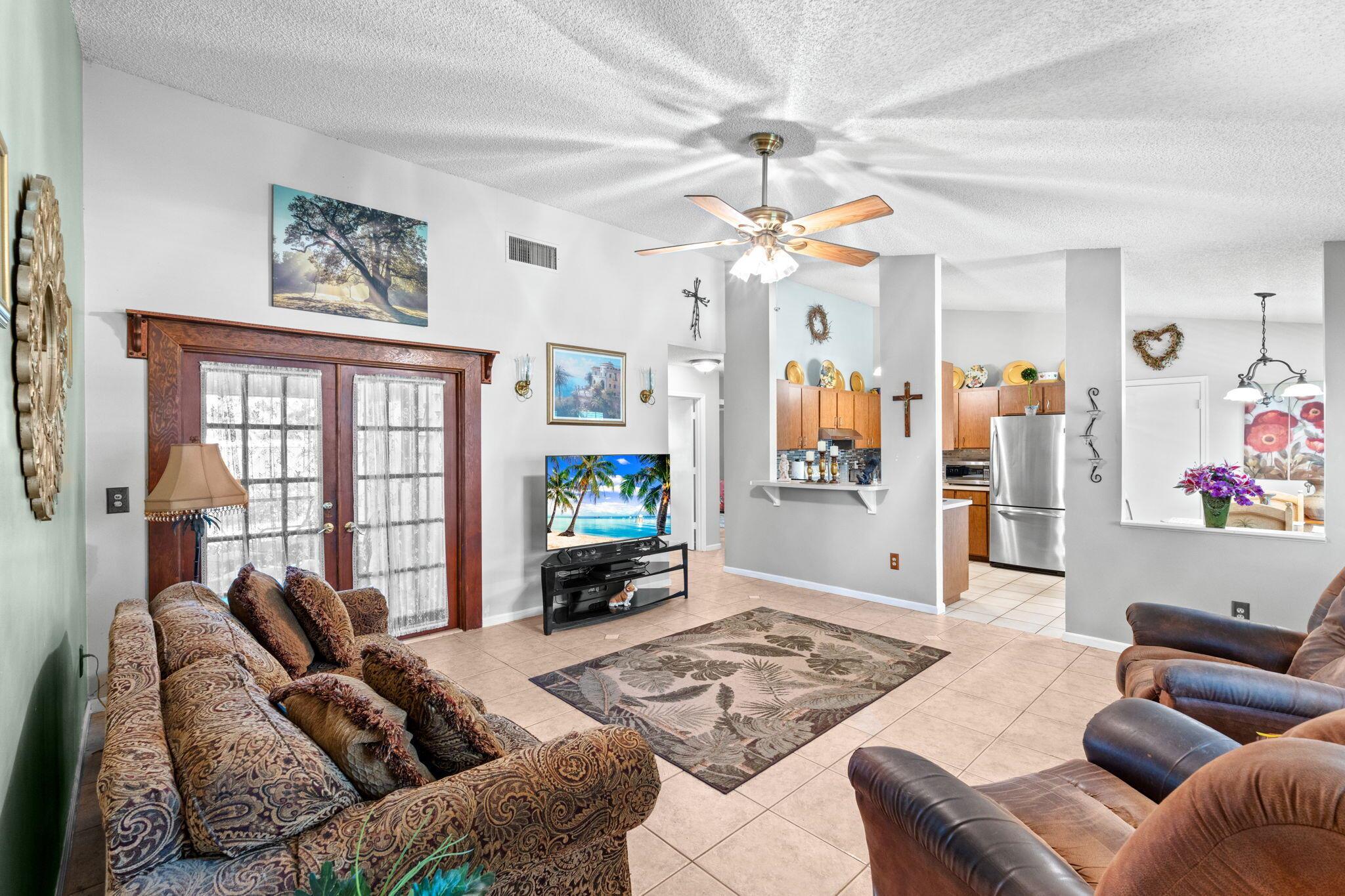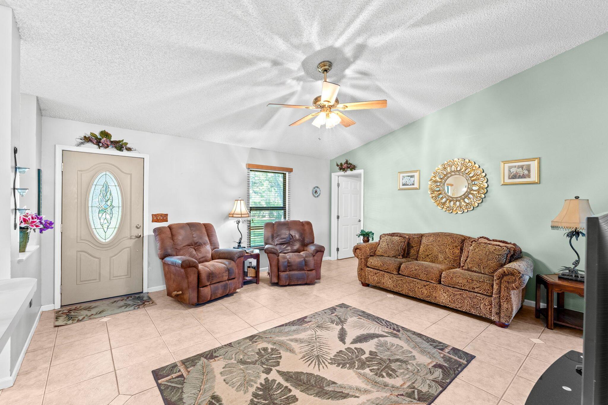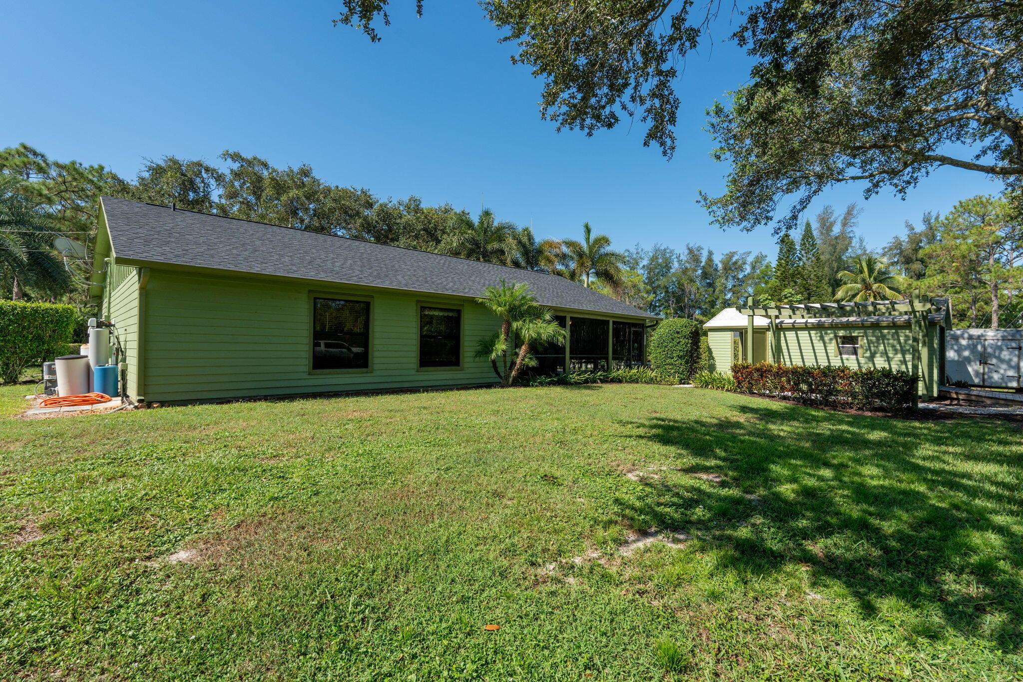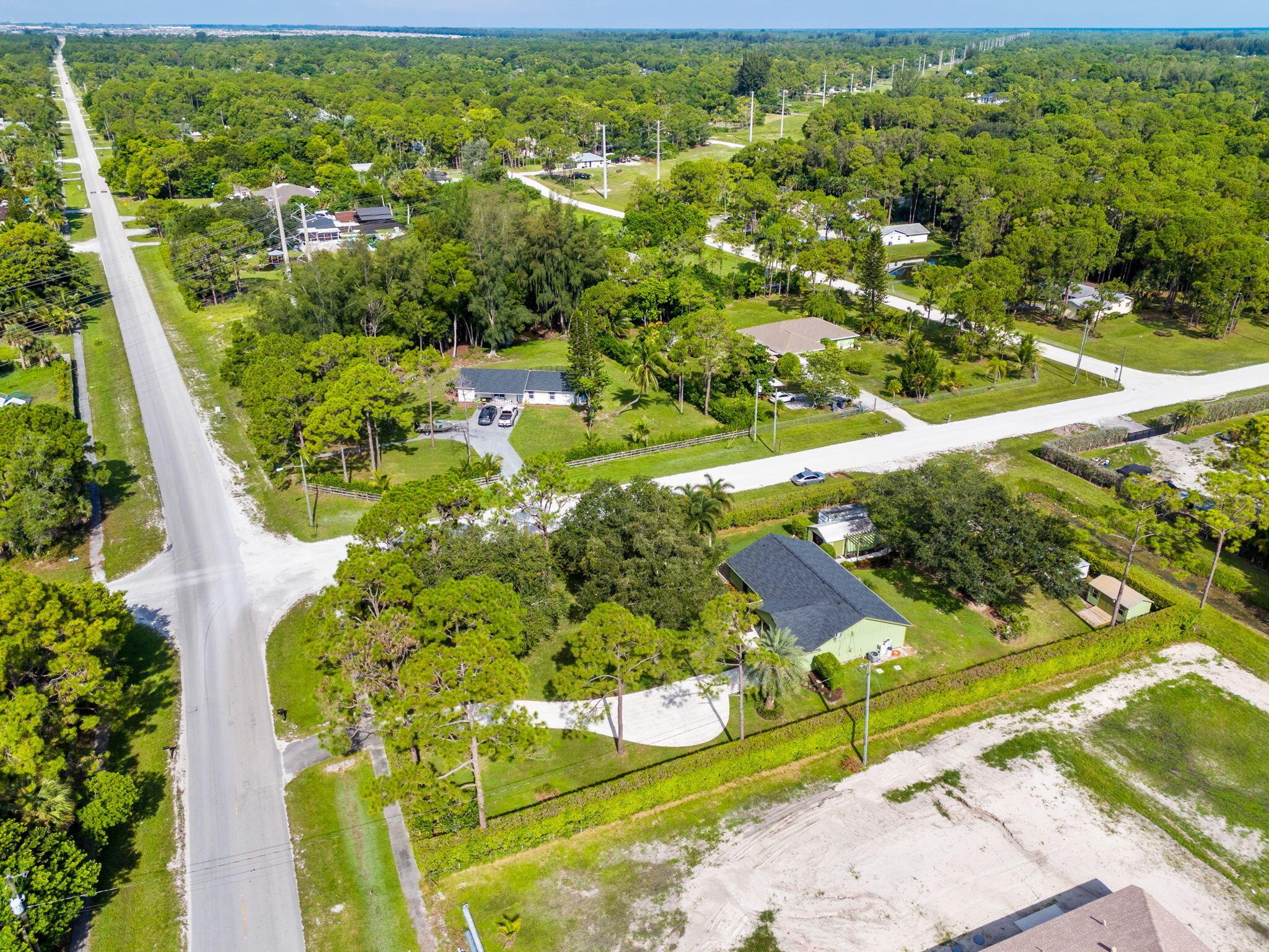 Welcome to your dream home in The Acreage! This beautiful 3-bedroom, 2-bathroom residence boasts a brand NEW ROOF and all new IMPACT WINDOWS for peace of mind and energy efficiency. Sitting on a spacious 1.25 acre lot along a PAVED ROAD, this property offers perfect blend of privacy and convenience. Step inside to find vaulted ceilings, a split-bedroom layour, and a bright, open floor plan perfect for family living. The home features a covered patio for relaxing or entertaining, plus two oversized sheds that provide ample storage or workshop space. With a PRIVATE ENTRANCE ideal for a home-based business, this property offers both lifestyle and opportunity. Schedule your private tour today!