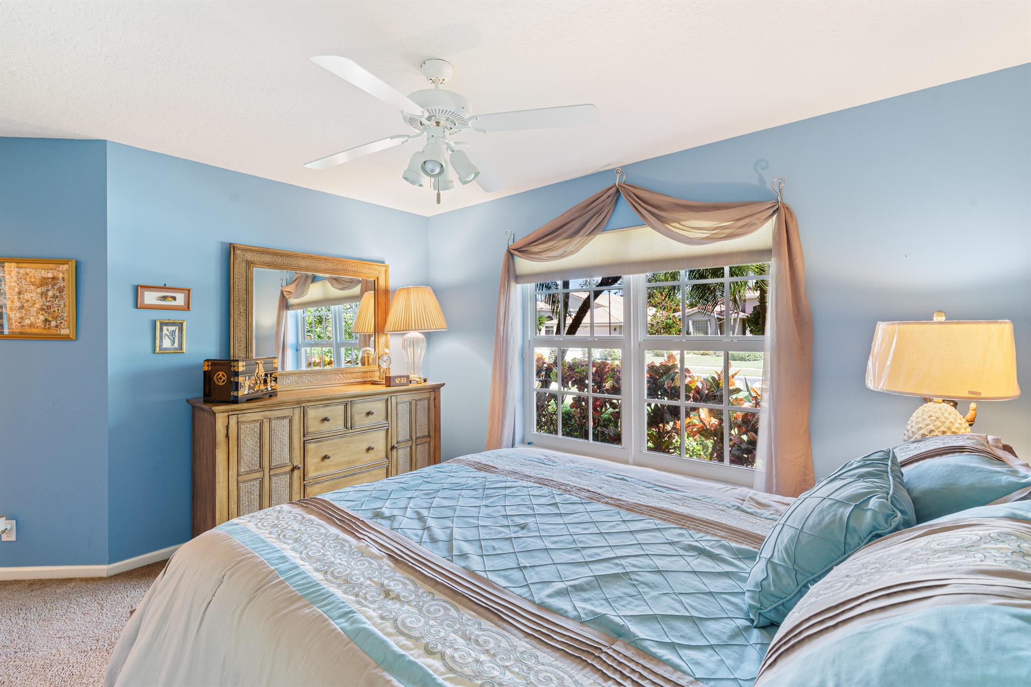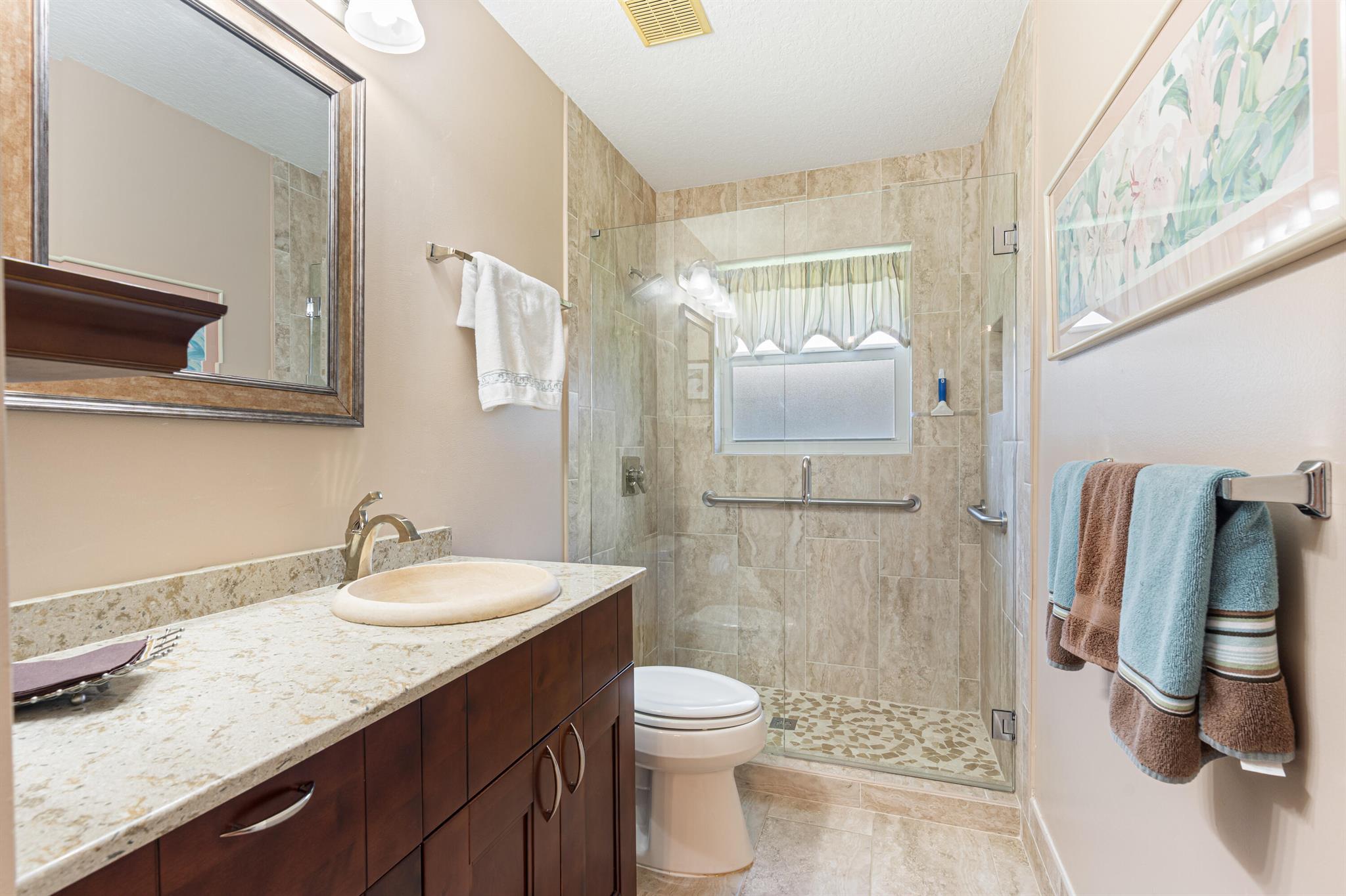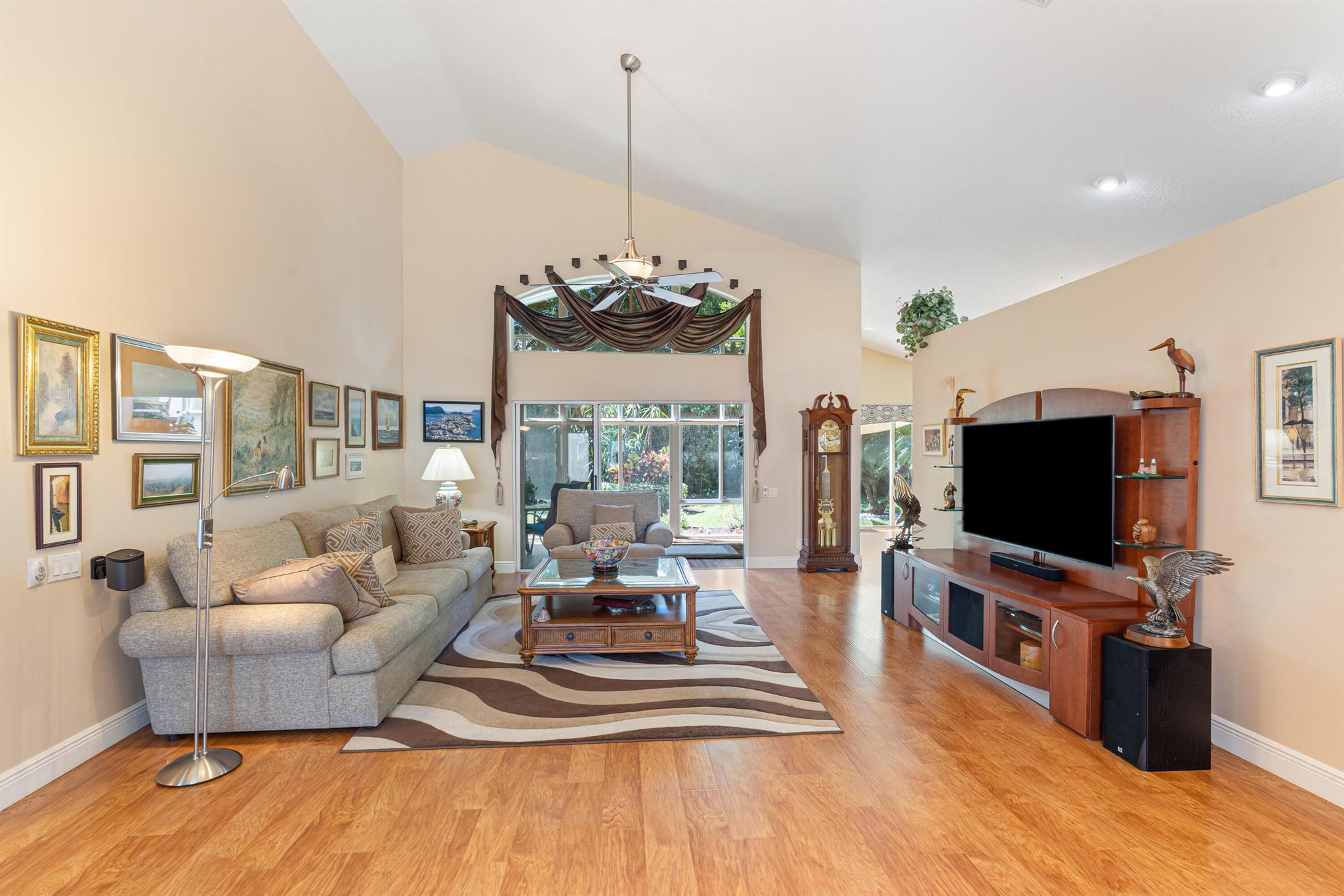 Welcome to this stunning well maintained 3 bedrooms, 2 bath home located in the desirable 55+ community of Lakeridge Falls. This updated residence features stylish wood laminate flooring throughout living area, full impact windows for peace of mind, and a brand-new AC and water heater (2023). The kitchen includes a new stove, and the laundry area offers a recently replaced washer. Exterior of home recently freshly painted Lakeridge Falls is unlike any other adult community. Its residents can boast maintenance-free living with a reasonable monthly fee that includes premium cable television and Internet; landscaping, tree trimming and irrigation; roof and exterior power washing; and house painting. All within the look and feel of a country club community without the huge costs
