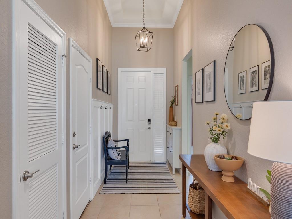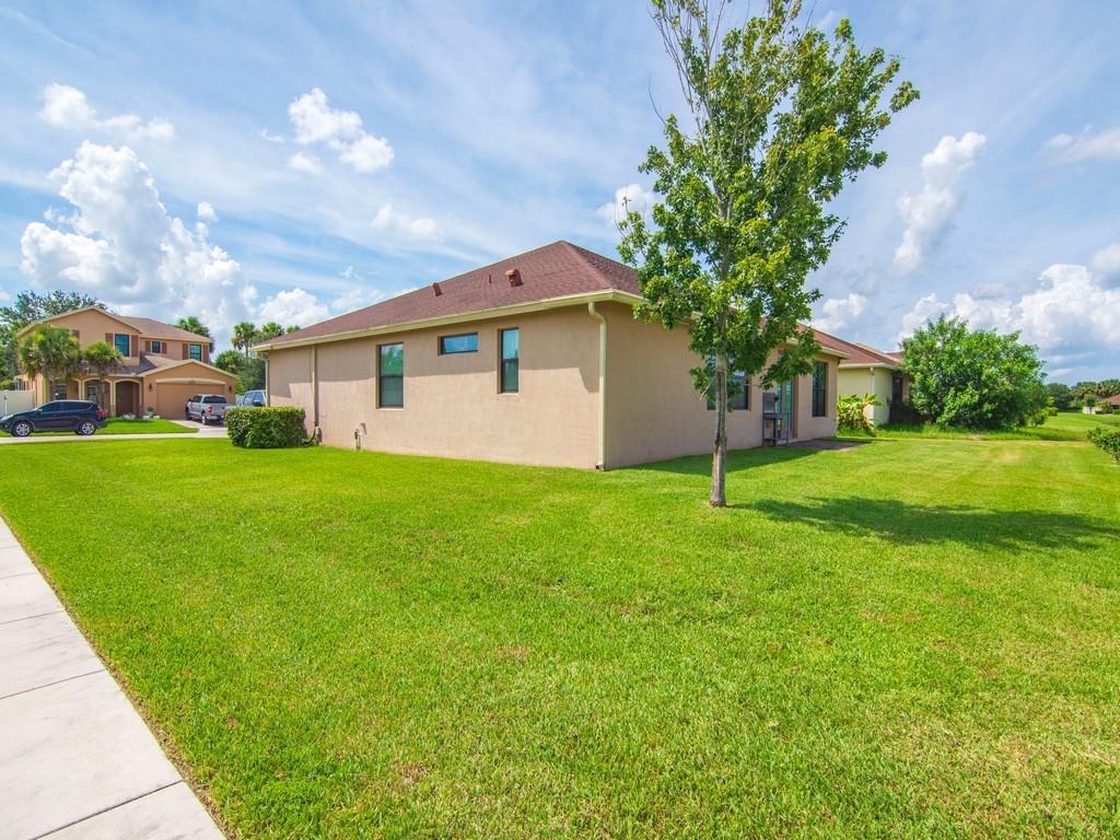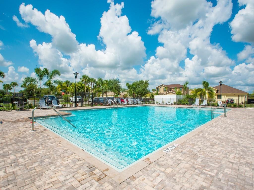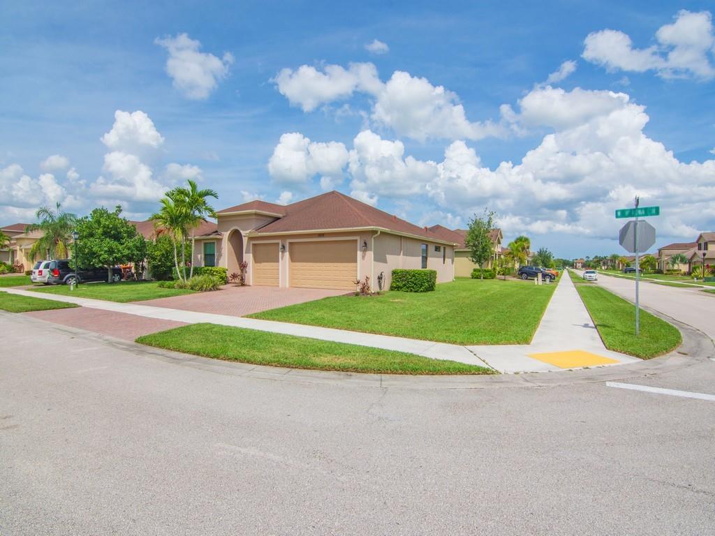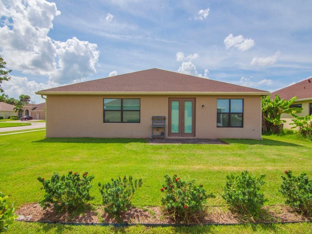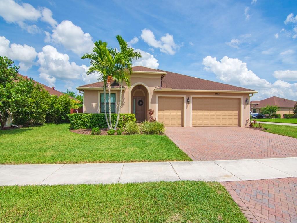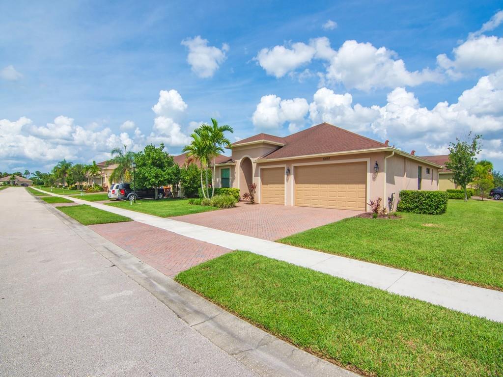Welcome to this beautifully maintained lakefront home with 3-Car Garage. This picture perfect home has 3-bedroom and 3-full bathroom on a desirable corner lot with peaceful lake views. The open floor plan features spacious living and dining areas, a modern kitchen with granite countertops, and a private primary suite with walk-in closet and en-suite bath. Enjoy outdoor living on the covered patio overlooking the lake. The 3-car garage provides ample storage, and the split-bedroom layout offers flexibility for family, guests, or a home office. Community amenities include a clubhouse, heated pool, spa, fitness center, basketball court, and playground—all with a low monthly HOA! Conveniently located near shopping, dining, Vero outlets, I-95 and the beaches of Vero Beach.