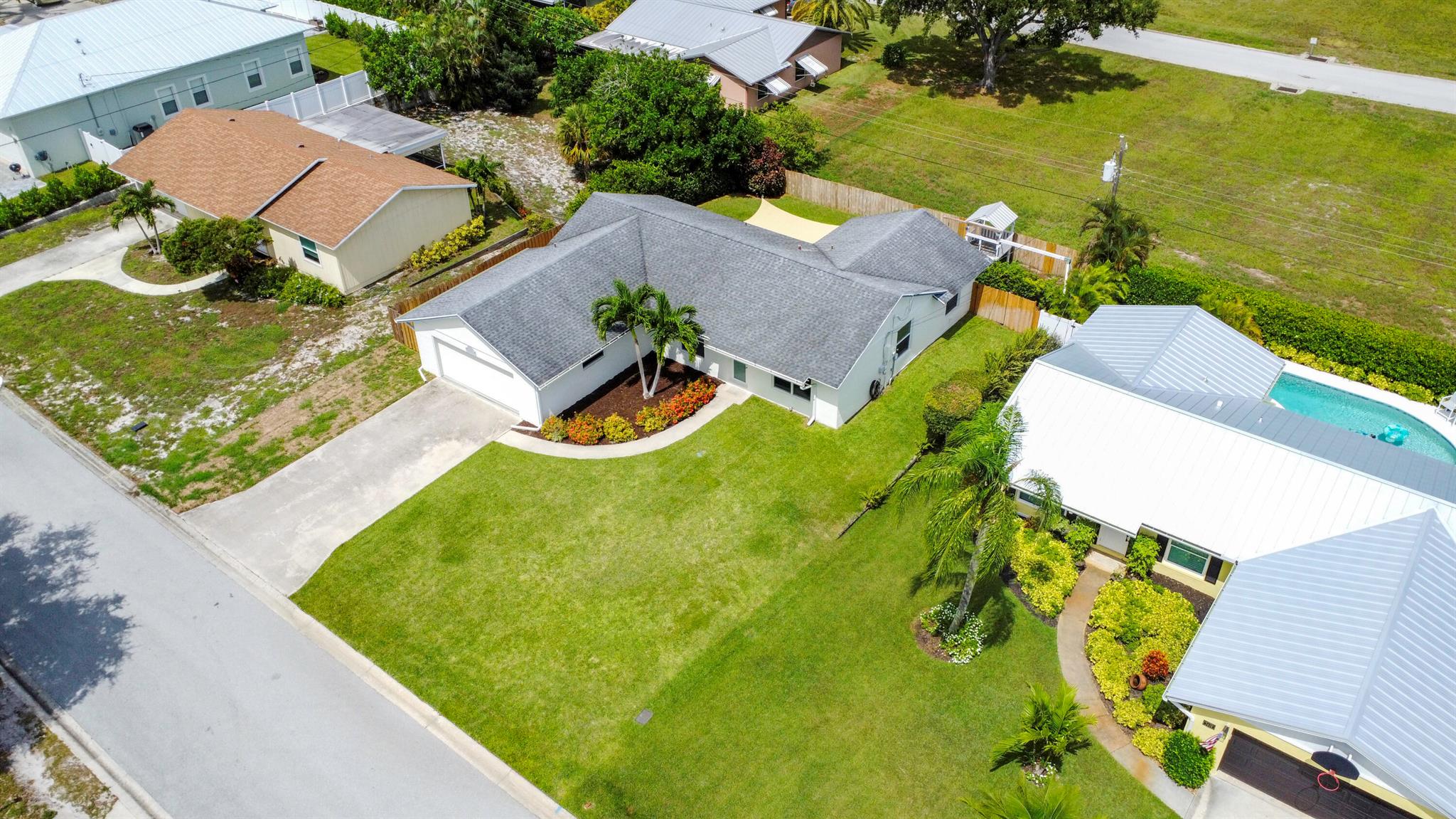 Back on the Market with a BRAND NEW ROOF & Fully Refreshed! Welcome to this beautifully updated single-story home in the heart of Hobe Sound's sought-after Hobe Heights neighborhood. No HOA, just classic Florida living with modern touches.This 3-bedroom, 2-bath gem offers ~1,592 SF of beautifully appointed living space on an 8,250 SF lot. The recent updates are impressive: new roof, fresh interior paint, all new flooring, impact windows/ doors throughout, stylish light fixtures, and new appliances. The bathrooms have been upgraded to reflect a clean, contemporary aesthetic. Walking in you'll enjoy an open layout with central air and smart flow between living, dining, and kitchen areas. A 2-car attached garage and in-garage laundry add everyday convenience. The location is a standout as