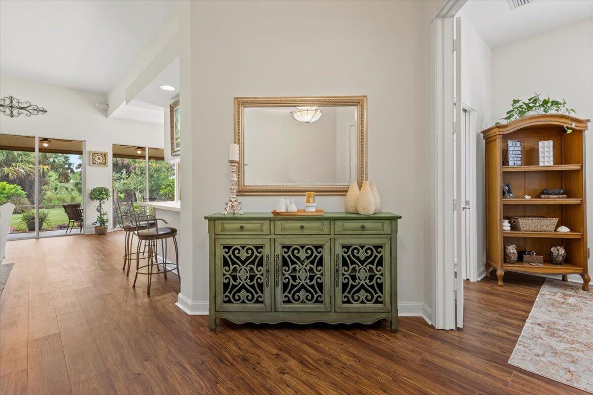 EXCELLENT LOCATION, CBS 3/2.5/2 SFH - 3 large bedrooms plus a den, 2.5 bathrooms- luxury his & hers bathrooms in the ensuite, Recent home inspection reports about 7 years remaining on roof, everything checks out good and we will share report. Beautiful vinyl plank flooring, plantation shutters & more. This desirable Divosta built Oakmont model provides an open concept split floor plan, volume ceilings. Large yard, room for pool.The Retreat offers pool, clubhouse, pickleball, planned activities, fitness center, activities & more.This home backs up to 4886 acres of natural beauty in Atlantic Ridge state park. Enjoy the beauty of wildlife like Bald eagles, herons, egrets & deer from your screened lanai. Schedule your private showing today. Sconces and staging decor do not convey