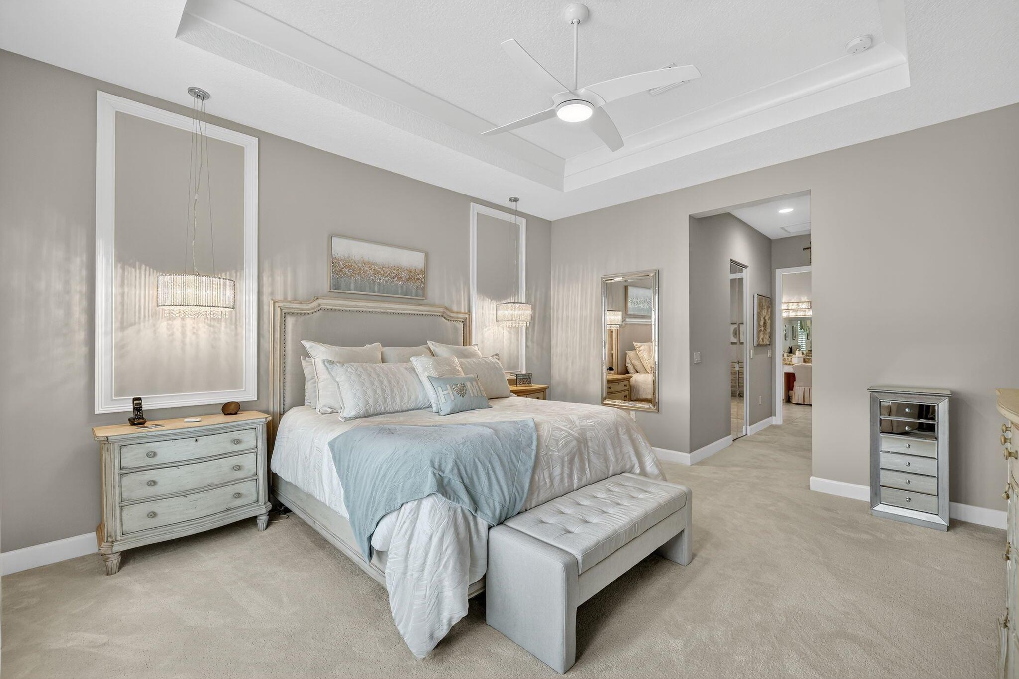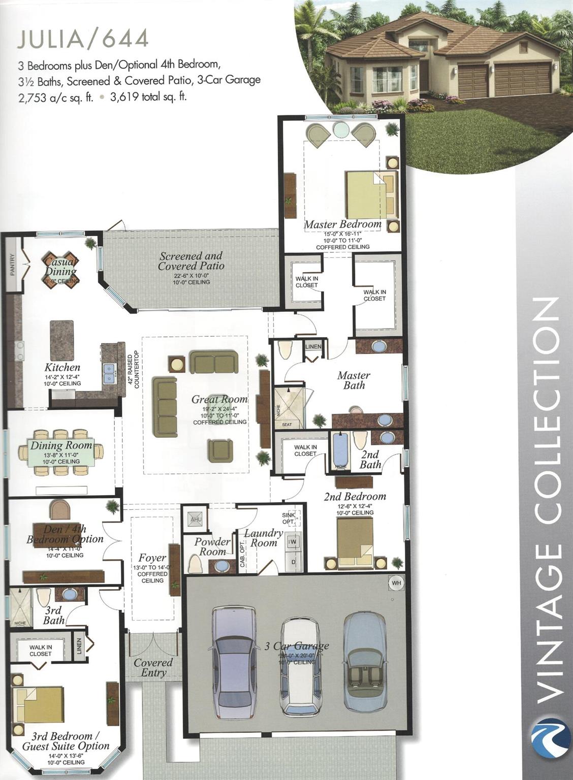 Experience Luxury Living at its finest, in a lakefront Julia Model at Valencia Cay in Riverland. A spectacular grand entrance features a custom glass double door entrance into a large foyer with a coffered ceiling and designer lighting. This home features 3 Bedrooms, Plus Den, 3.5 baths, with a 3-car garage. Elegant and thoughtfully designed, you will not be disappointed. This stunning residence combines modern comfort, sophisticated style and resort-style living, making it the perfect retreat for those seeking an active and luxurious lifestyle here in Florida. The Julia Model boasts spacious interiors, open concept living and high-end finishes throughout. An expansive great room with custom millwork and a coffered ceiling is ideal for formal and relaxed entertainment.