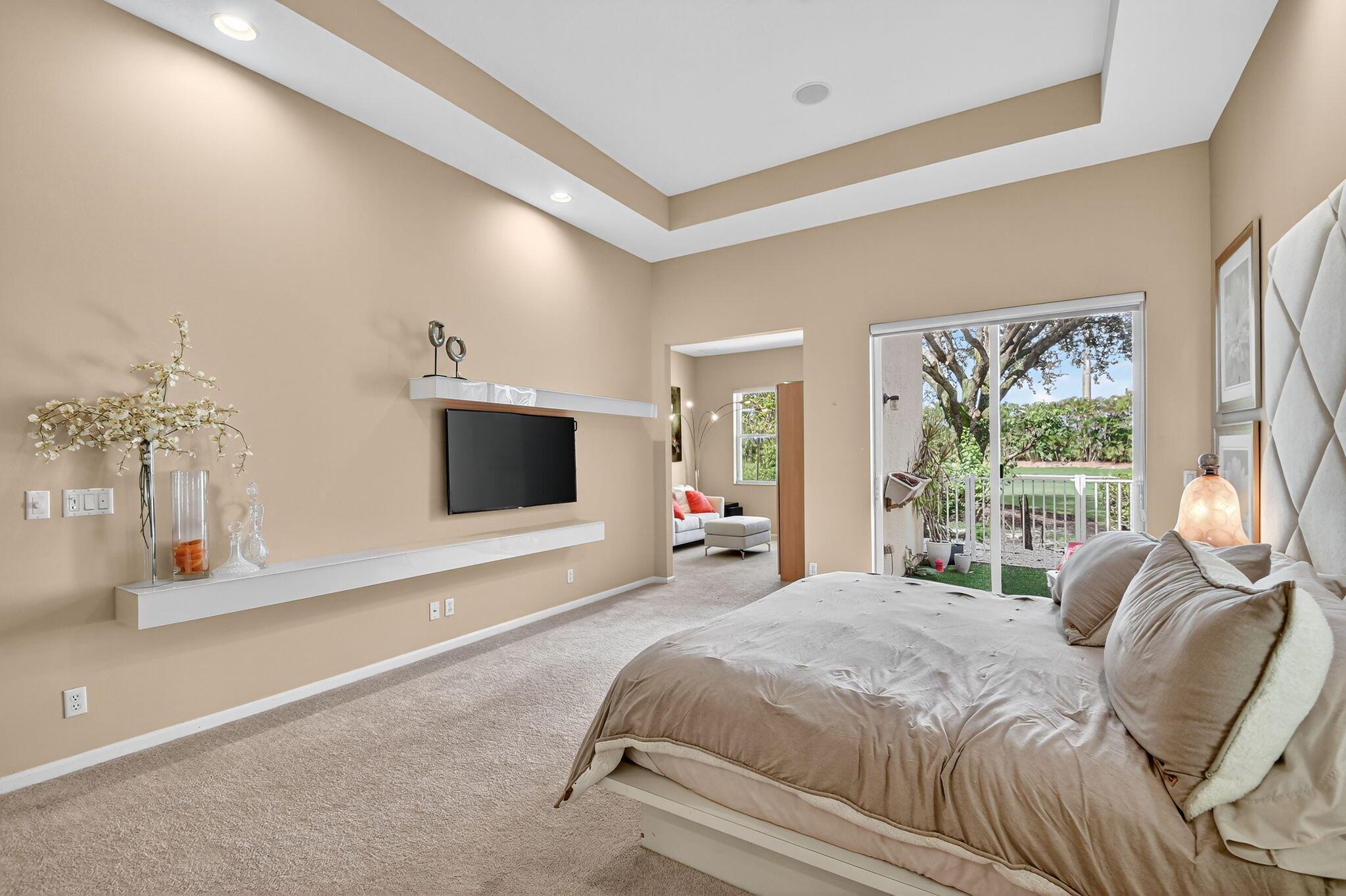 Rarely available and beautifully maintained 4BD/3BA home in Wycliffe Golf & Country Club with western exposure overlooking the golf course. Perfect for enjoying breathtaking sunsets from your expanded, covered patio. This custom great room floor plan features a spacious country kitchen. 2022 roof & 2022 A/C for peace of mind. The primary suite currently has a large sitting room with closet. Enjoy a huge primary bath with jacuzzi tub and oversized shower with seat. The great room features custom built-in with bar, under-mount lighting, plus sliding panel to conceal the TV, if desired. The 4th bedroom used as an office with recessed lighting and a built-in desk. Offering a rare combination of comfort, style, and stunning views, this home is ideal for both entertaining and everyday living.