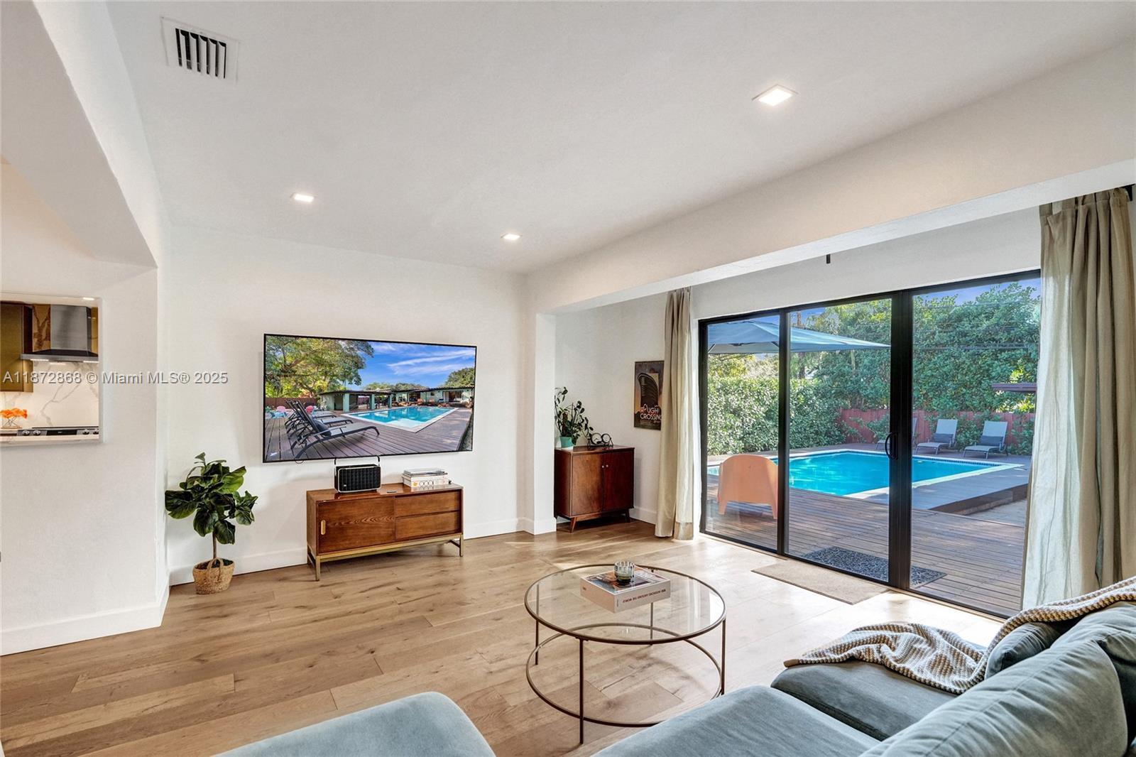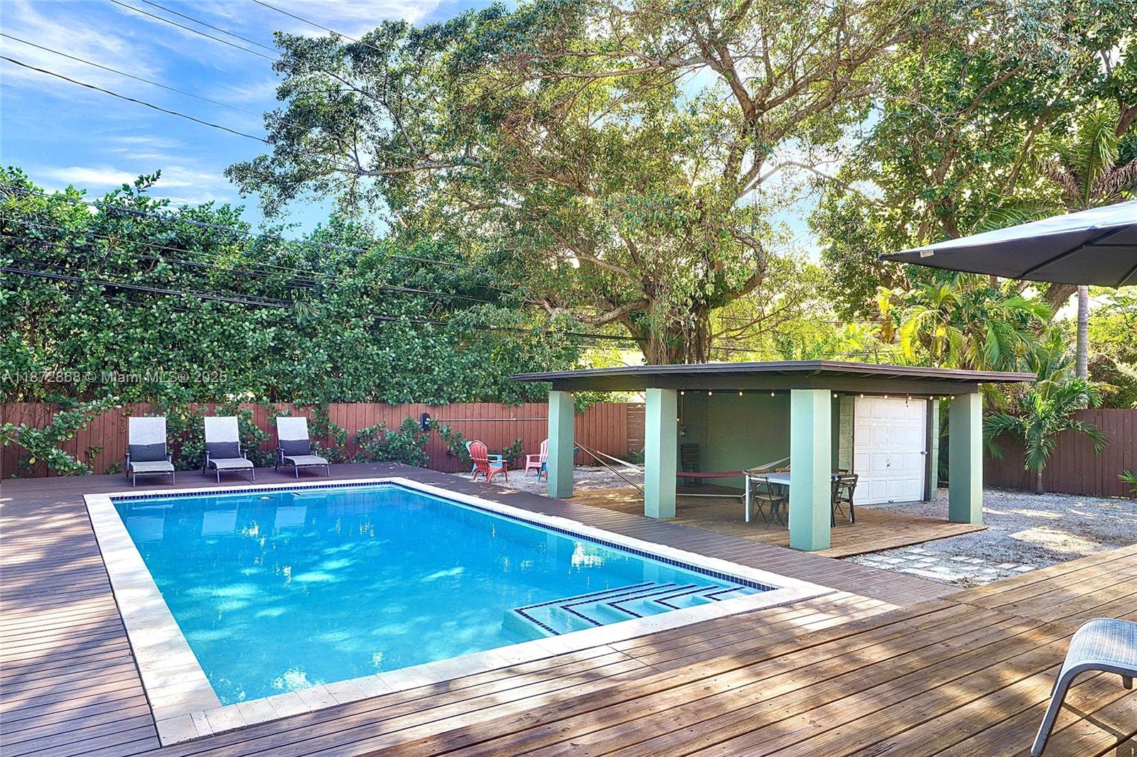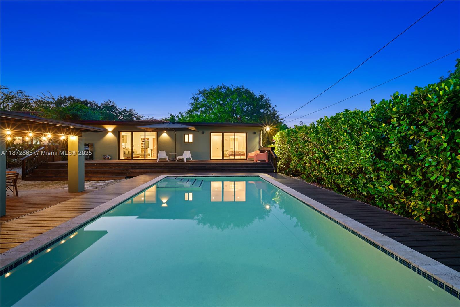 Privacy and tranquility await you in the heart of El Portal - a small community nestled between the City of Miami and Miami Shores. This spacious contemporary 3-beds, 2-baths and an office home sits in the middle of a quiet street and offers plenty of light, space and air. Wide-plank oak flooring, open kitchen, separate living and family rooms, single-car garage and an oversized heated salt-water pool in the privacy of your own spacious back-yard complete this residence. The property is outside of the flood-zone, which is a great long-term feature.