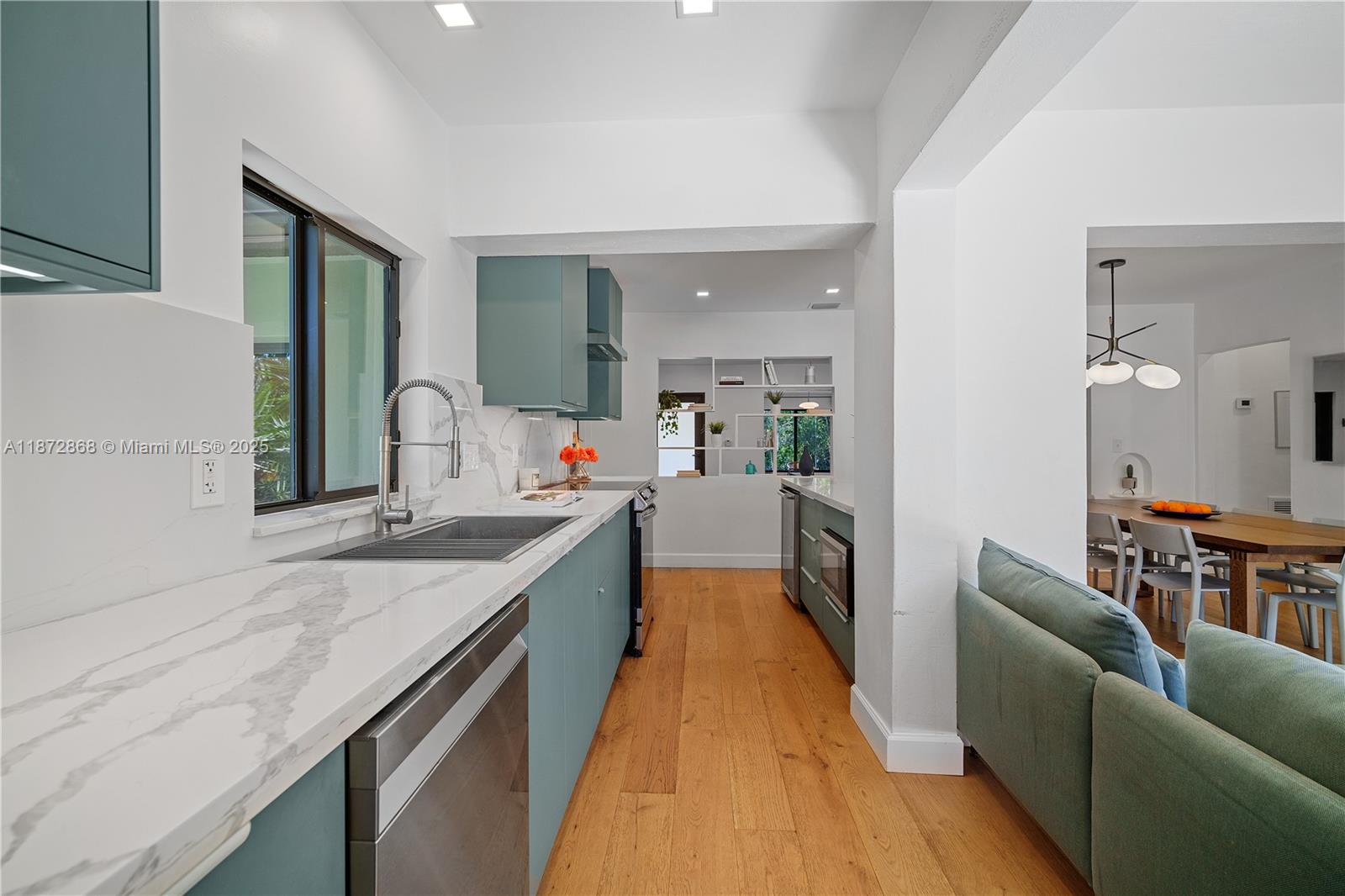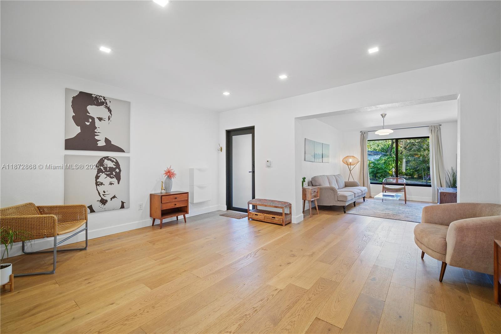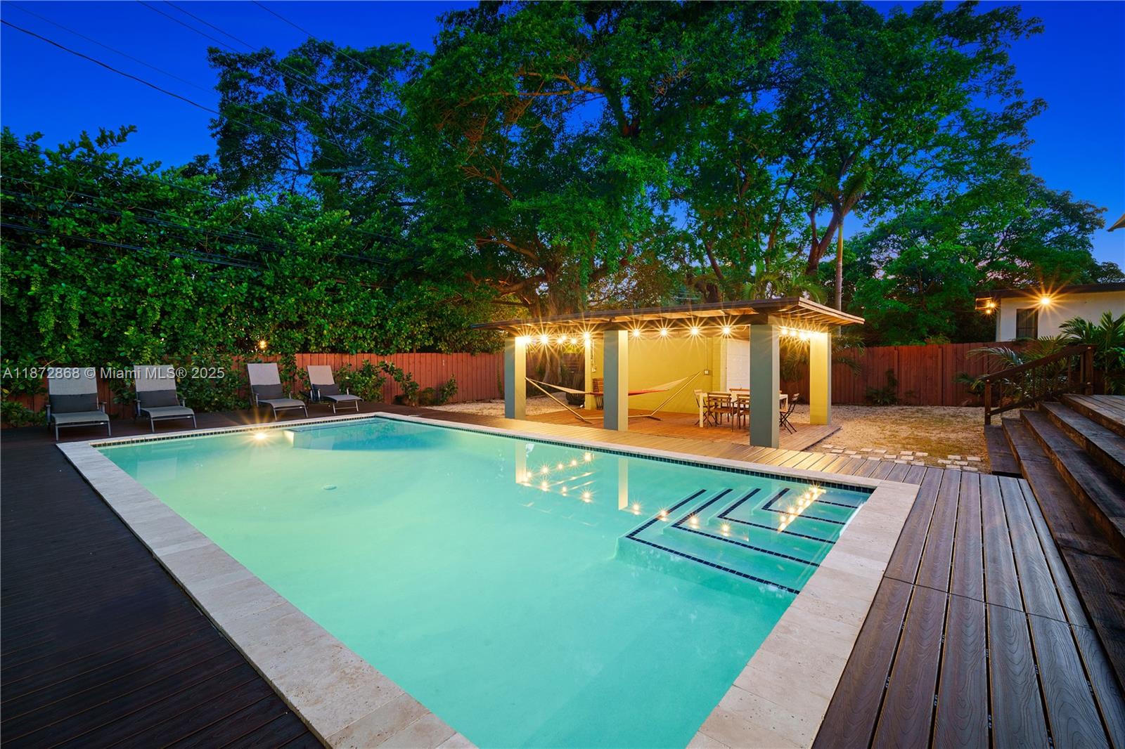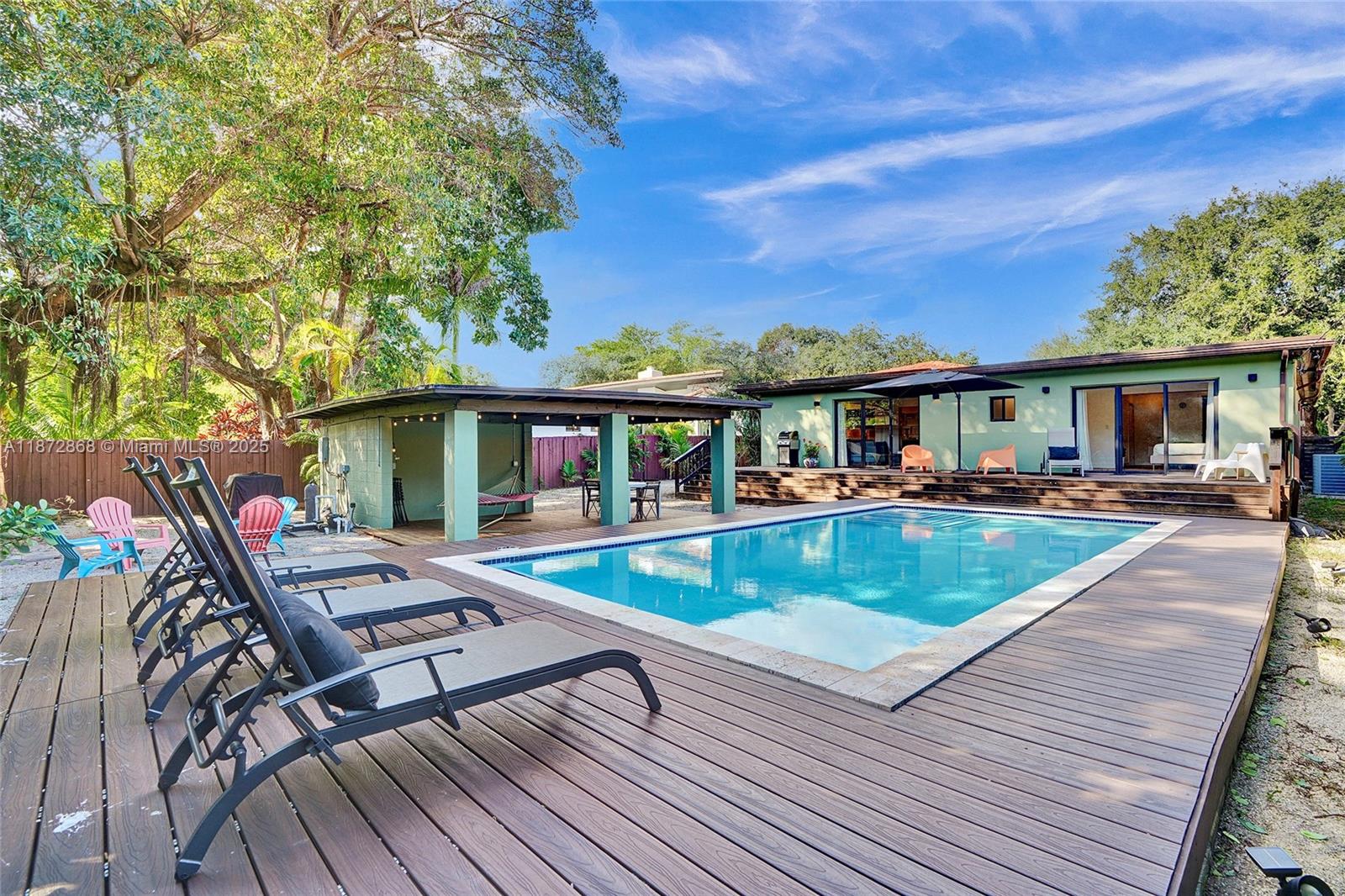 Privacy and tranquility await you in the heart of El Portal - a small community nestled between the City of Miami and Miami Shores. This spacious contemporary 3-beds, 2-baths and an office home sits in the middle of a quiet street and offers plenty of light, space and air. Wide-plank oak flooring, open kitchen, separate living and family rooms, single-car garage and an oversized heated salt-water pool in the privacy of your own spacious back-yard complete this residence. The property is outside of the flood-zone, which is a great long-term feature.