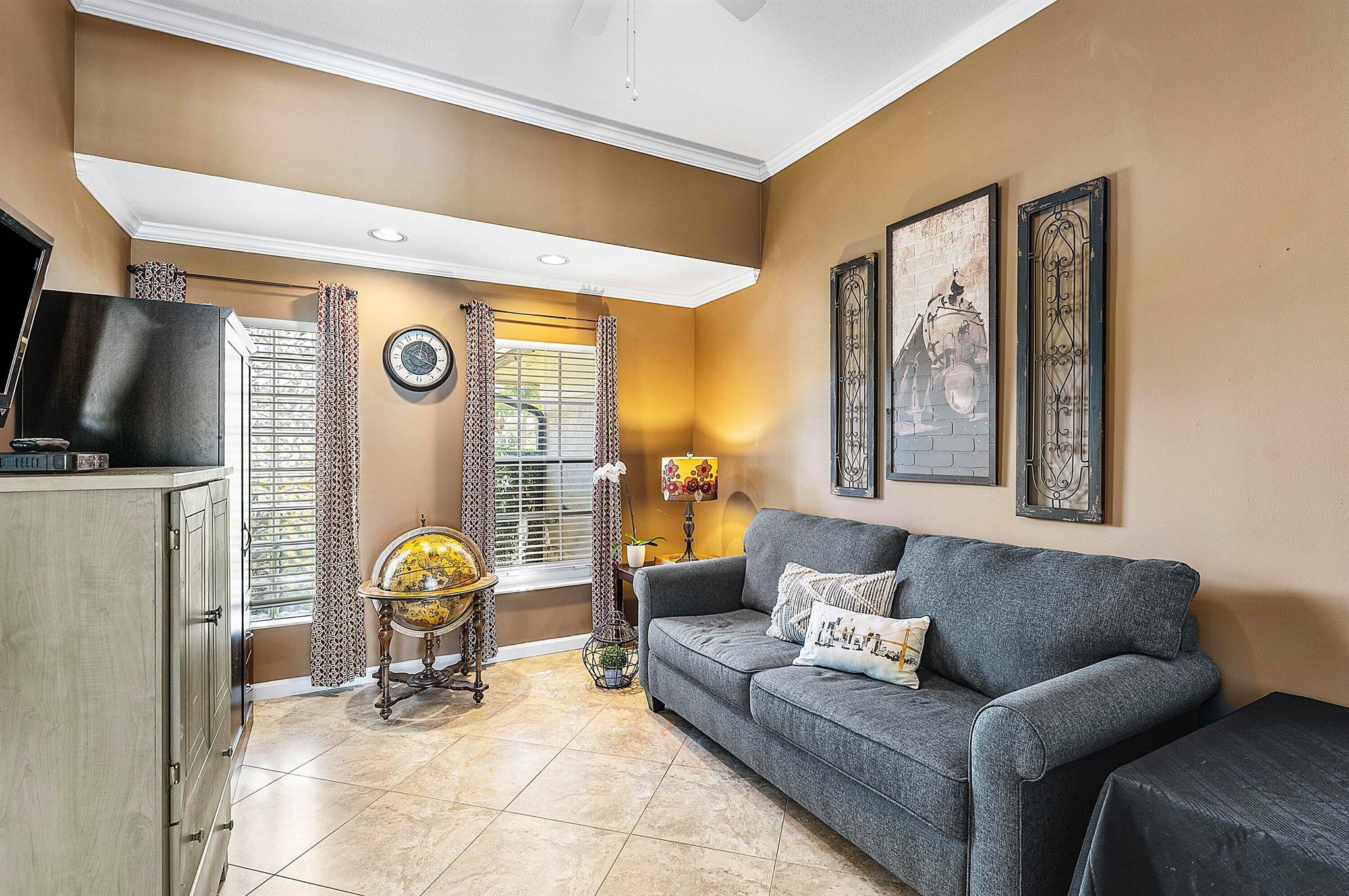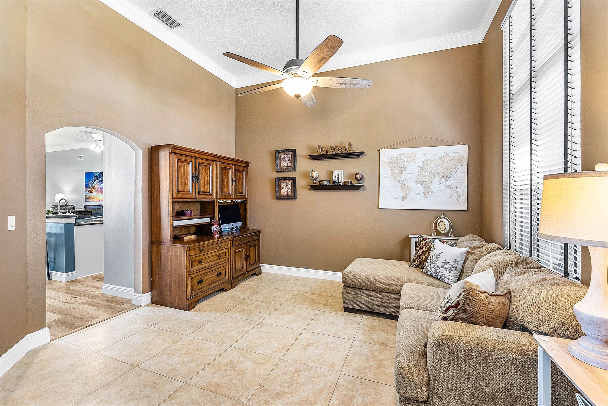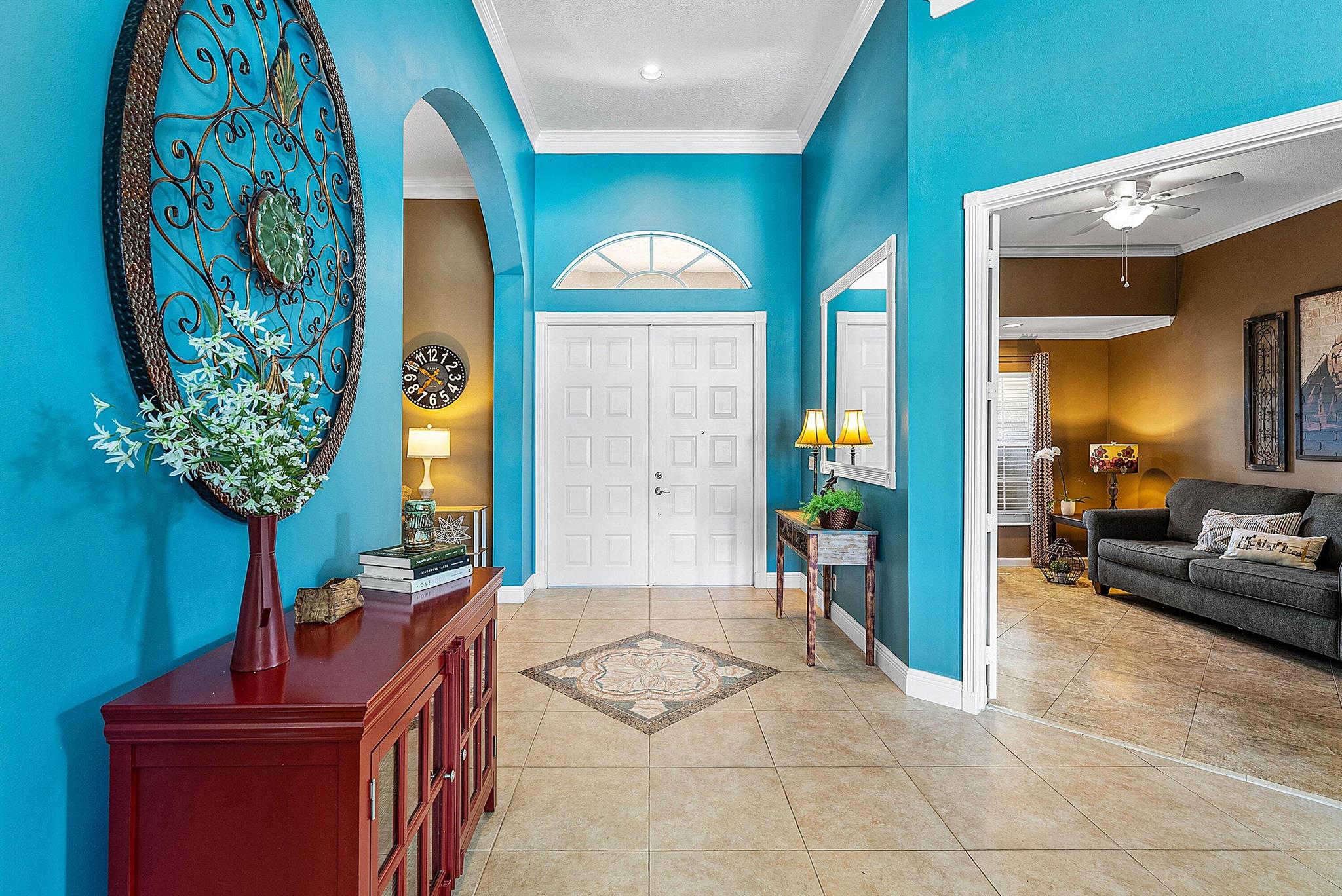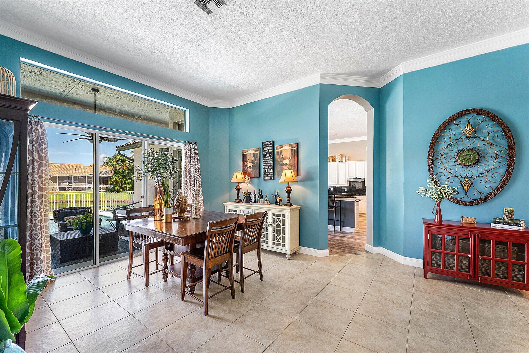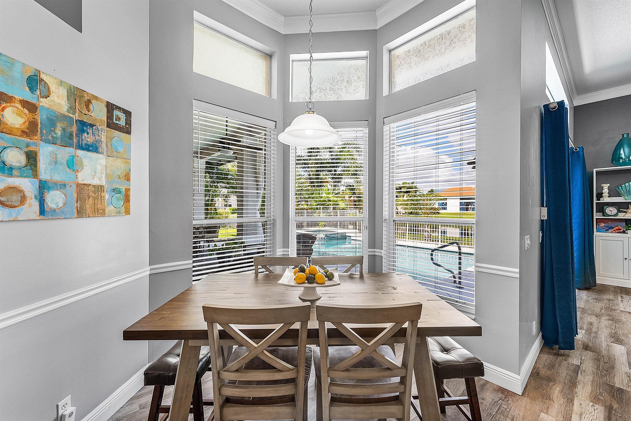 Opportunity to own this popular Cayman V model on highly sought-after oversized, pie-shaped cul-de-sac lakefront lot in gated community. Welcoming double door entry. Volume ceilings, and many updated features throughout the home, roof 2022 - come see! Spacious primary suite opening to upgraded pool and spa, adjacent bedroom can serve as study w/three more bedrooms on the other side. Generously-sized kitchen overlooks spacious family room with breakfast nook - great view of the pool! Expansive covered patio, perfect for relaxing while enjoying the stunning views of the lakefront. Convenient cabana bath. This gated community offers many amenities, including clubhouse with many activities: fitness center, resort-style pool and spa, playground, tennis and basketball courts.