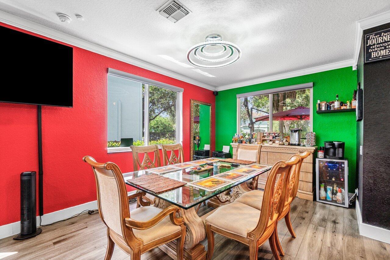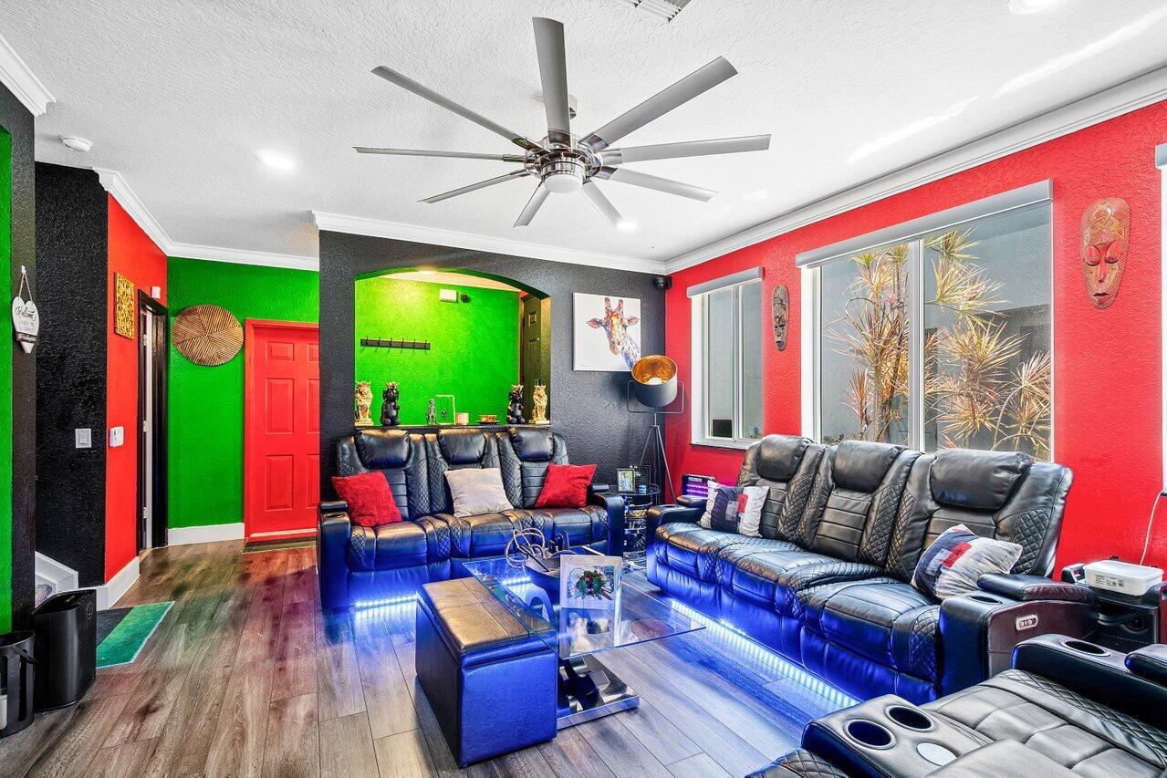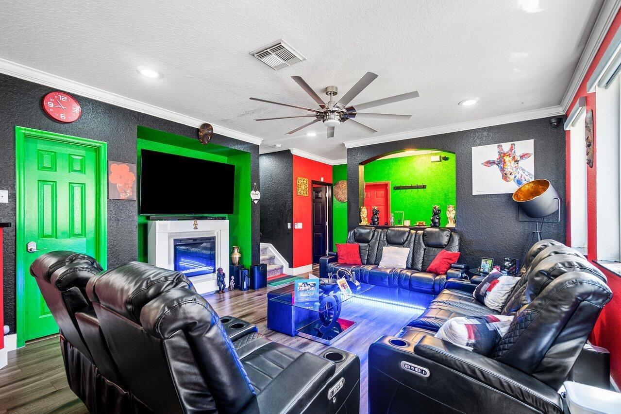 The seller is offering a credit to the buyer for painting the home in the color of their choice.Welcome to this completely updated and immaculately kept 3 bedroom, 2.5 bathroom corner townhome in the desirable Thousand Oaks community. The home features smart-home technology, luxury hardwood floors, custom lighting, crown molding, and hurricane impact windows. The kitchen and living areas flow seamlessly, with thoughtful details like custom blinds, smart ceiling fans, and a Nest thermostat. Additional highlights include a tankless water heater, Ring camera system, WiFi garage door, 1 car garage with a 2 car driveway, and a private outdoor patio with a fire pit, perfect for relaxing or entertaining. The AC was replaced in 2019 for peace of mind. Residents of Thousand Oaks