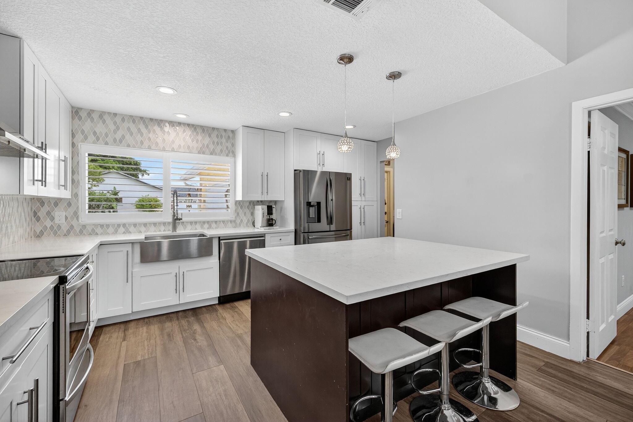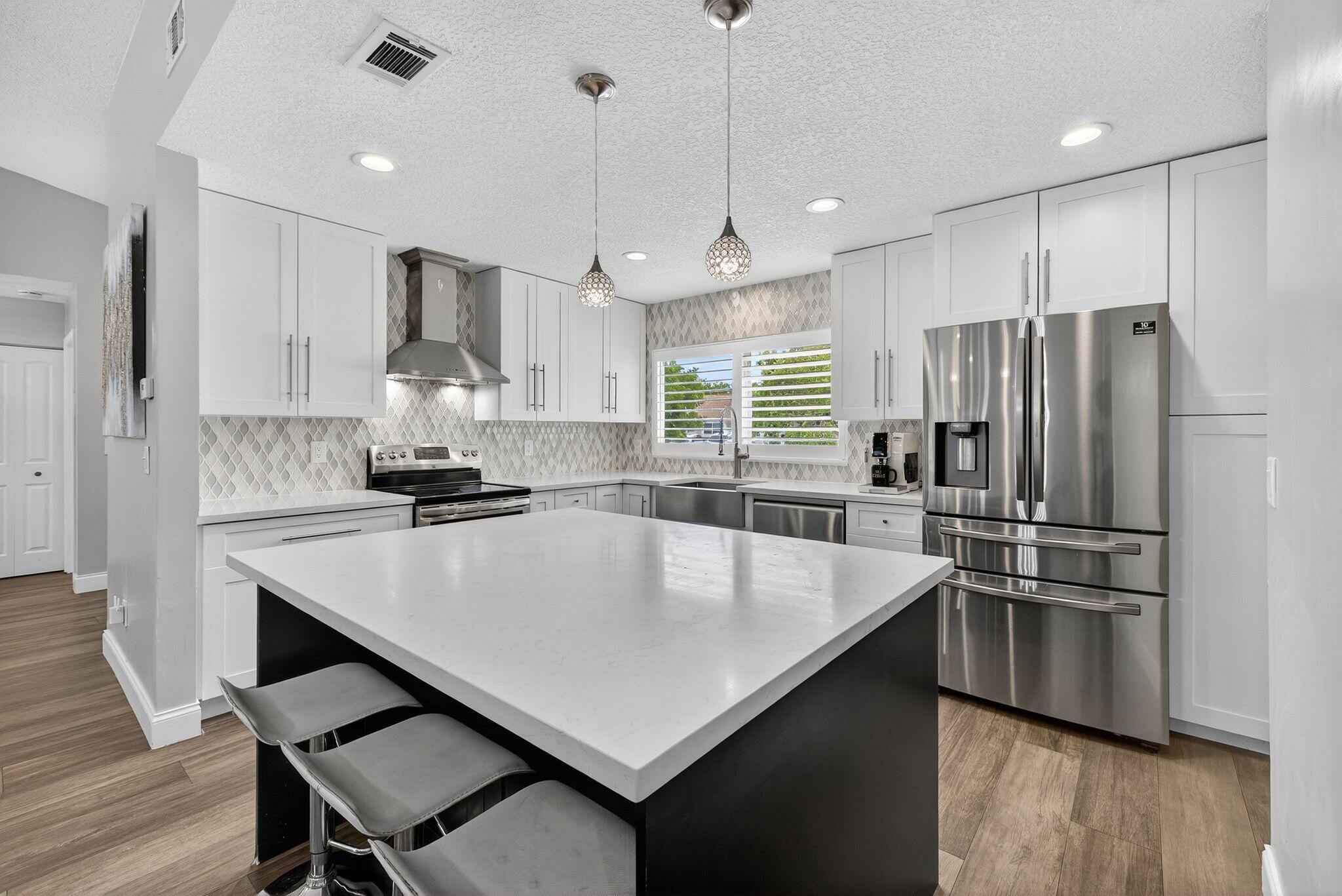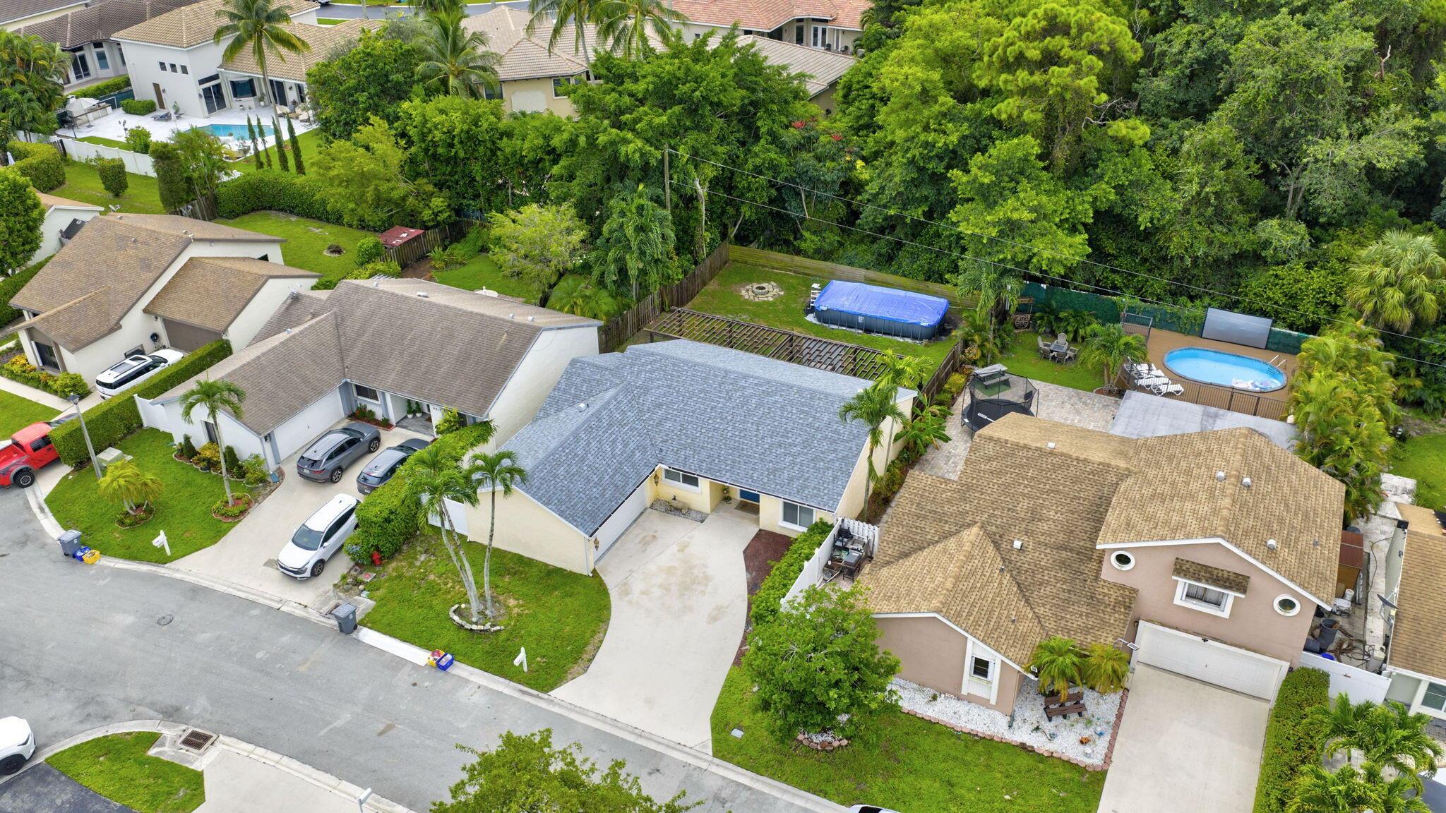 Beautifully updated 3 bedroom, 2 bath, 2 car garage, single-family home in Rainberry Park, West Boca! Brand NEW ROOF 2025, impact windows, and fenced yard backing to a nature preserve. Bright open kitchen with large island & stainless appliances, tile in main living, laminate in bedrooms. Main suite features dual walk-in closets, with one converted into a cozy office/flex space. Updated 2nd bath with soaking tub. Enjoy a huge backyard with newly paved patio & above-ground pool ready for backyard BBQs. Community offers pool, tennis, basketball, racquetball & volleyball. A/C & WH 2018. Near shopping, dining, hospital, worship & A-rated schools.