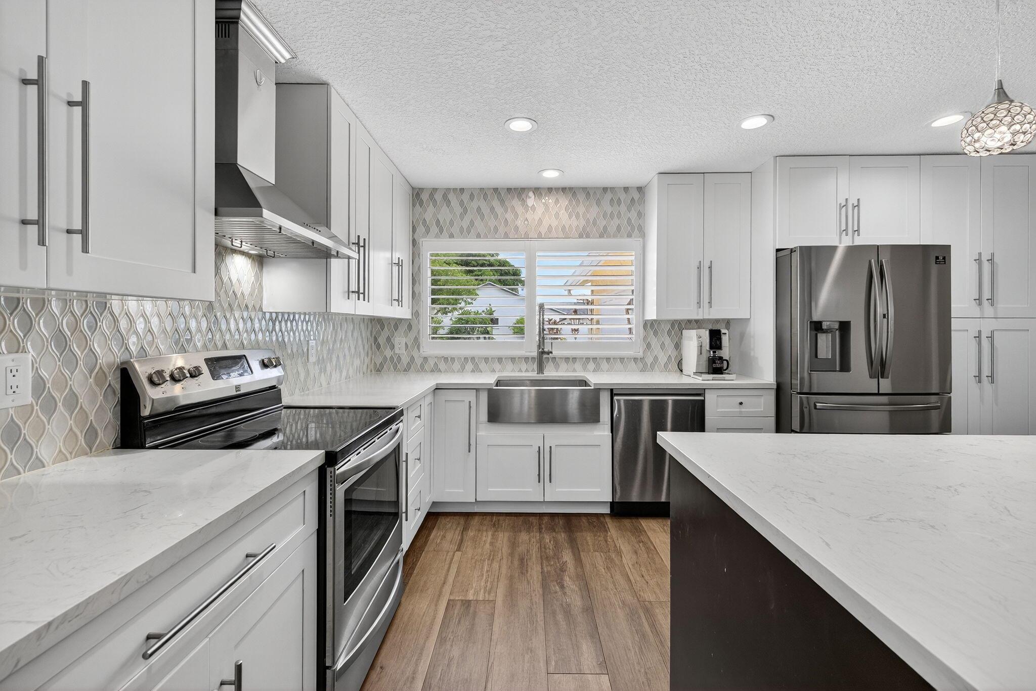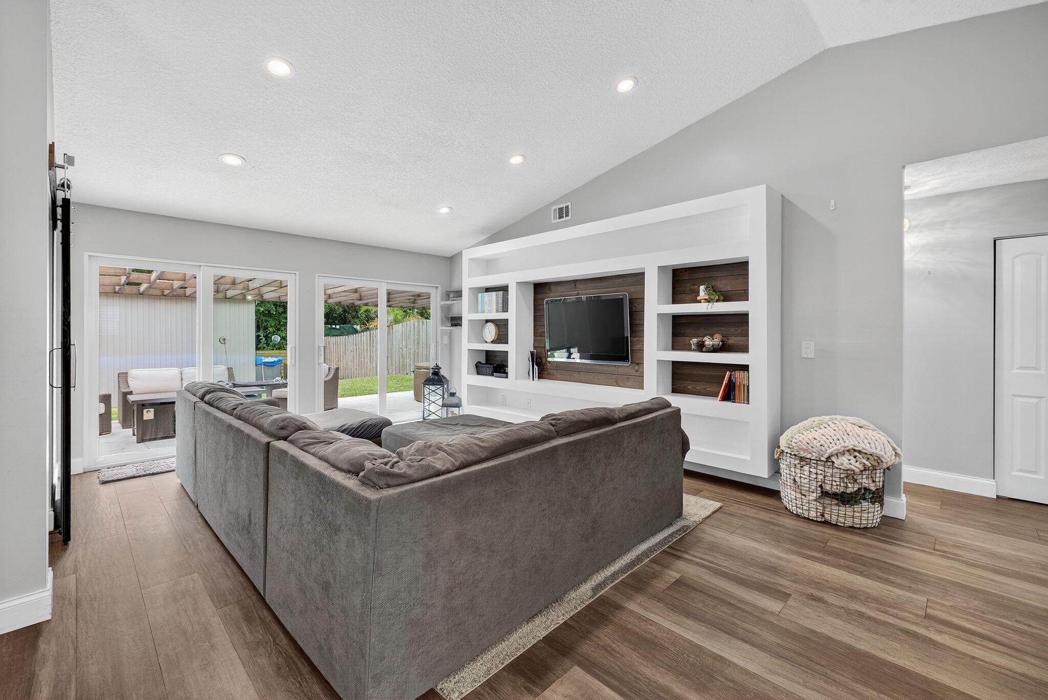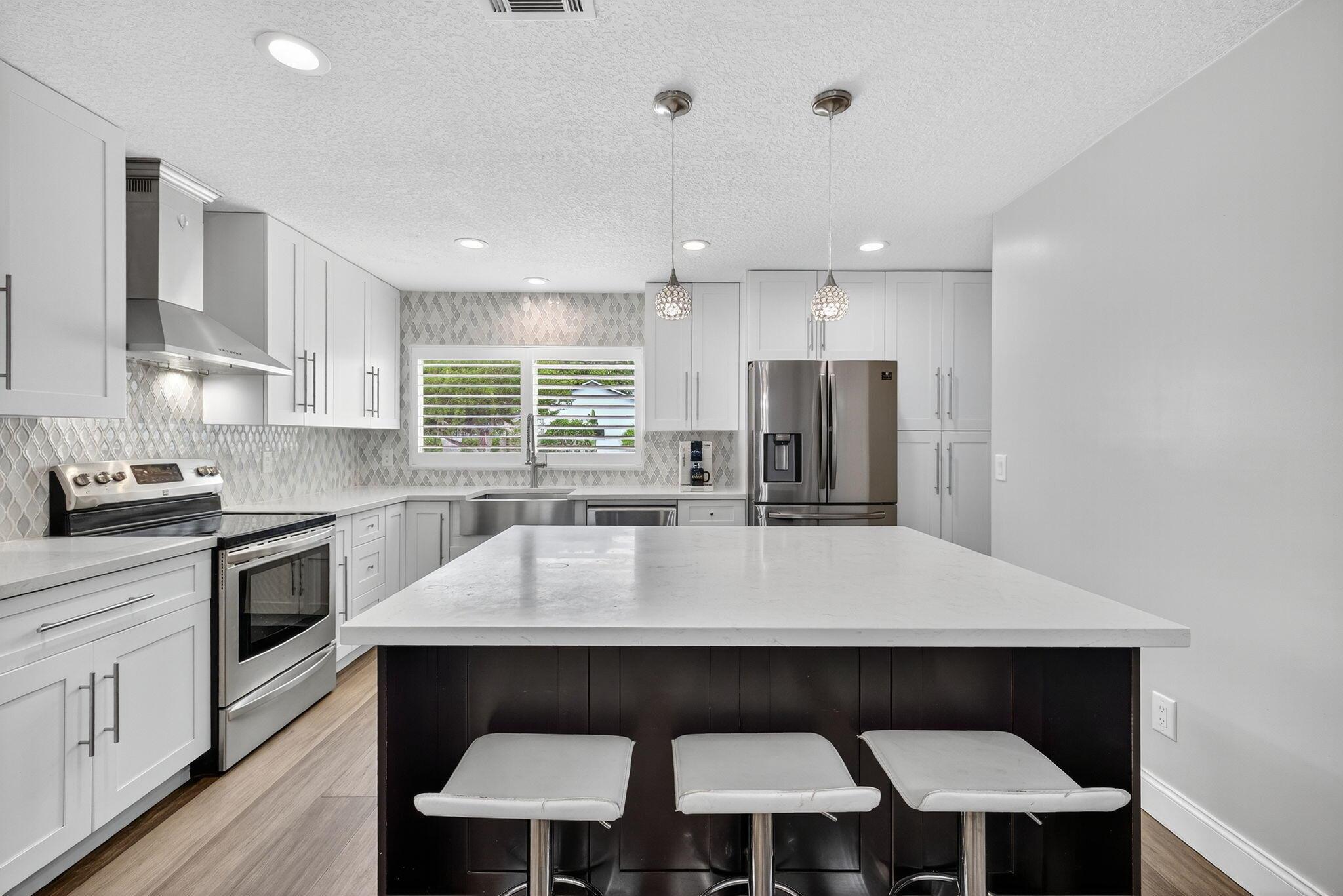 Beautifully updated 3 bedroom, 2 bath, 2 car garage, single-family home in Rainberry Park, West Boca! Brand NEW ROOF 2025, impact windows, and fenced yard backing to a nature preserve. Bright open kitchen with large island & stainless appliances, tile in main living, laminate in bedrooms. Main suite features dual walk-in closets, with one converted into a cozy office/flex space. Updated 2nd bath with soaking tub. Enjoy a huge backyard with newly paved patio & above-ground pool ready for backyard BBQs. Community offers pool, tennis, basketball, racquetball & volleyball. A/C & WH 2018. Near shopping, dining, hospital, worship & A-rated schools.