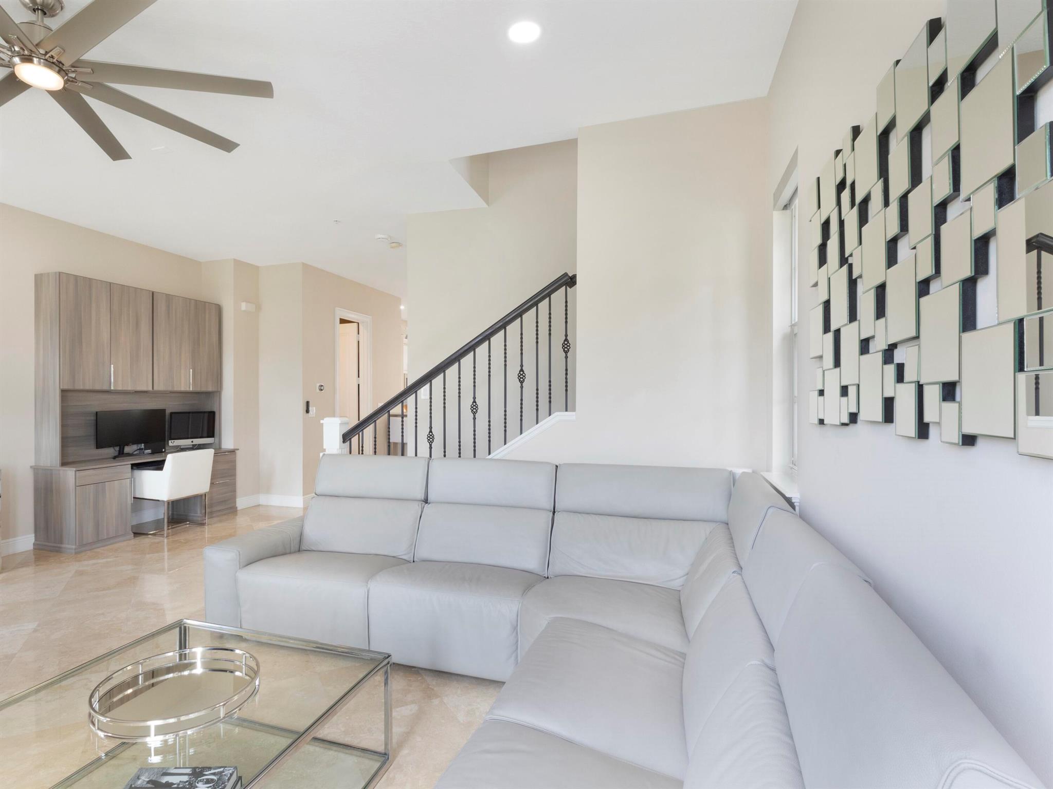 Highly Upgraded Luxurious corner townhome in the lush gated community of Royal Poinciana in East Boca Raton. One mile from the ocean. This 3-bedroom 3.5 bath corner townhome features lots of natural light,12ft high ceilings, upgrader high hat lighting throughout the home, marble & hardwood flooring thru-ought entire home. Large newly remodeled open kitchen w/ stainless steel appliances & quartz countertops, and full home reverse osmosis system, dining/living area with Juliet balcony, private elevator. Master boasts large bathroom w/ jacuzzi, his & her built out closets. All bathrooms have been remodeled and upgraded. Hurricane impact glass on entire home, 2 car garage, & community pool. Extremely convenient location! Minutes to beach, downtown Boca Raton & Delray Beach
