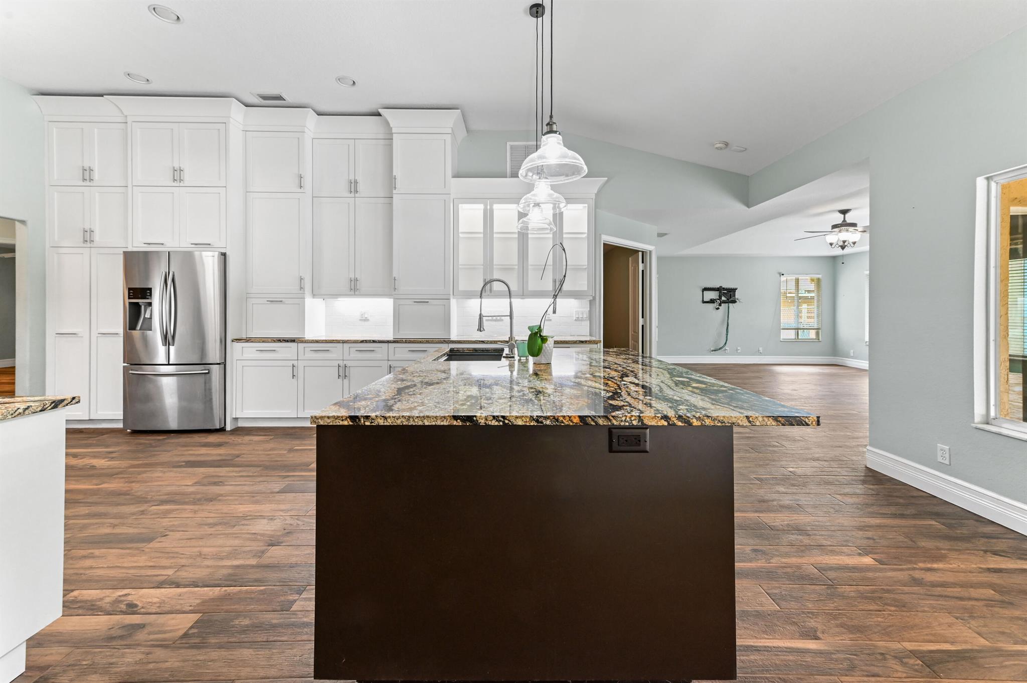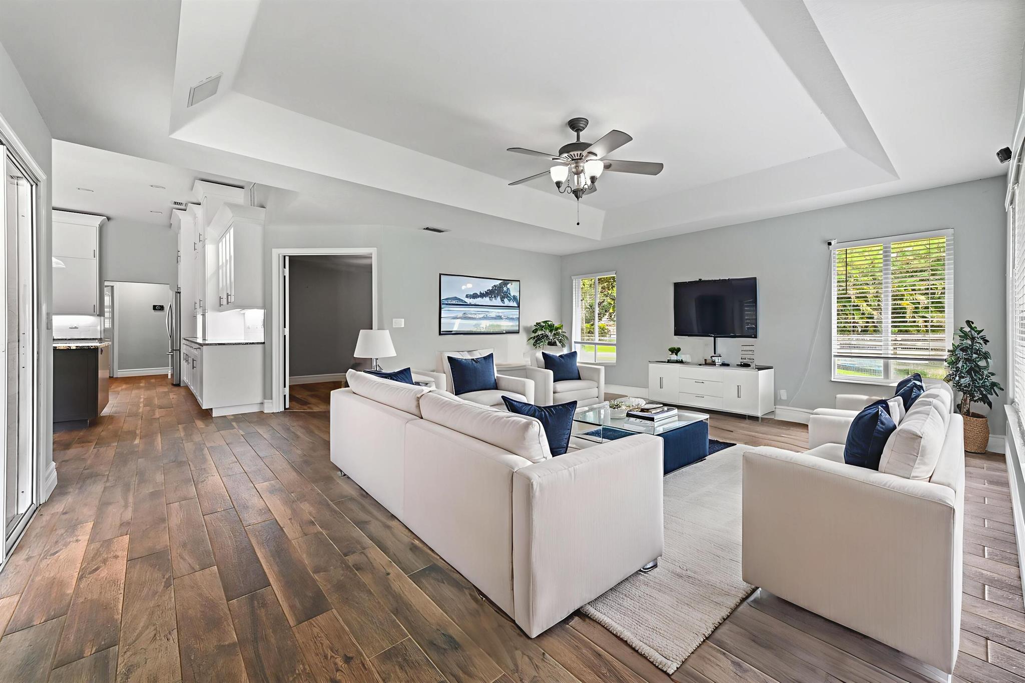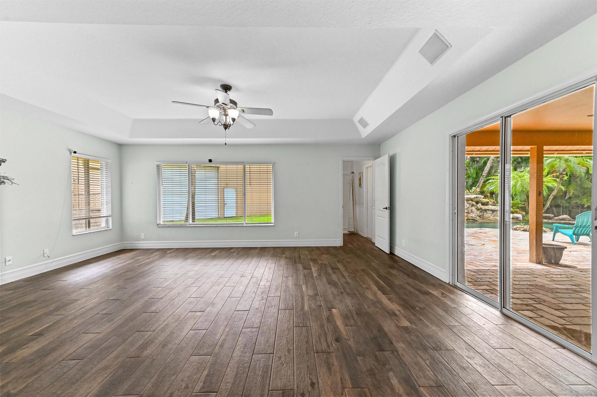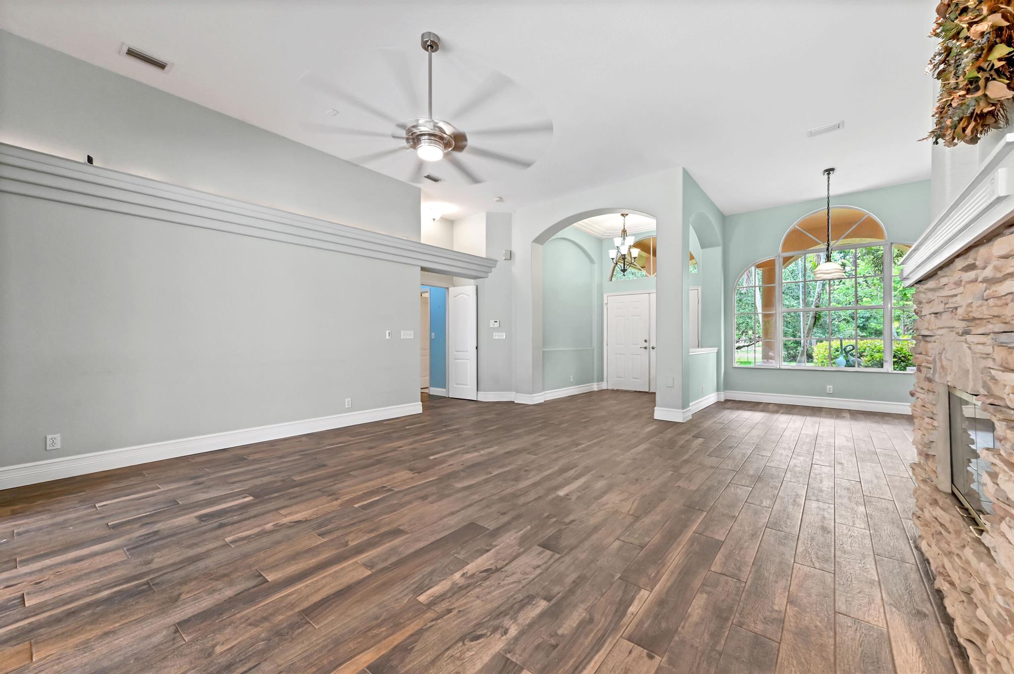 Welcome to this incredible single-family pool home with an oversized attached garage & a huge detached 5,000 sq ft garage/workshop, a true masterpiece of space and serenity, perfectly situated on a prime corner lot spanning 1.75 acres in The Acreage. With a new roof (2023) and no HOA to contend with, you'll enjoy peace of mind along with unparalleled freedom and privacy. This residence features 4 bedrooms and 3 full bathrooms, meticulously designed to offer both comfort and elegance. The spacious and open living area serves as the heart of the home, complete with a cozy fireplace and a sliding door that provides seamless access to the patio.