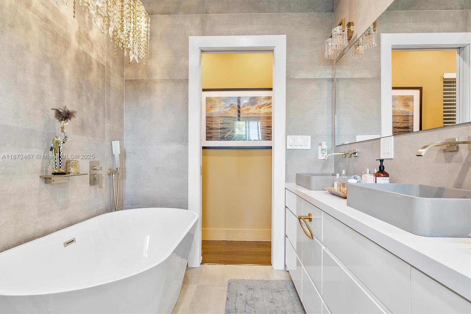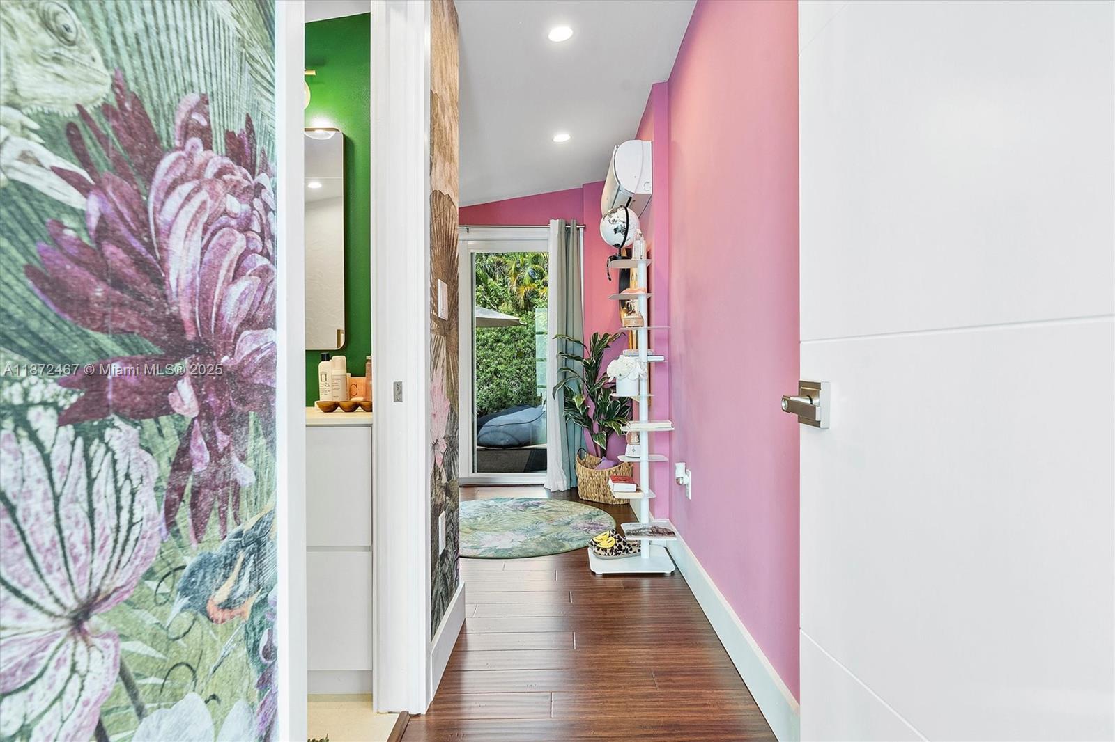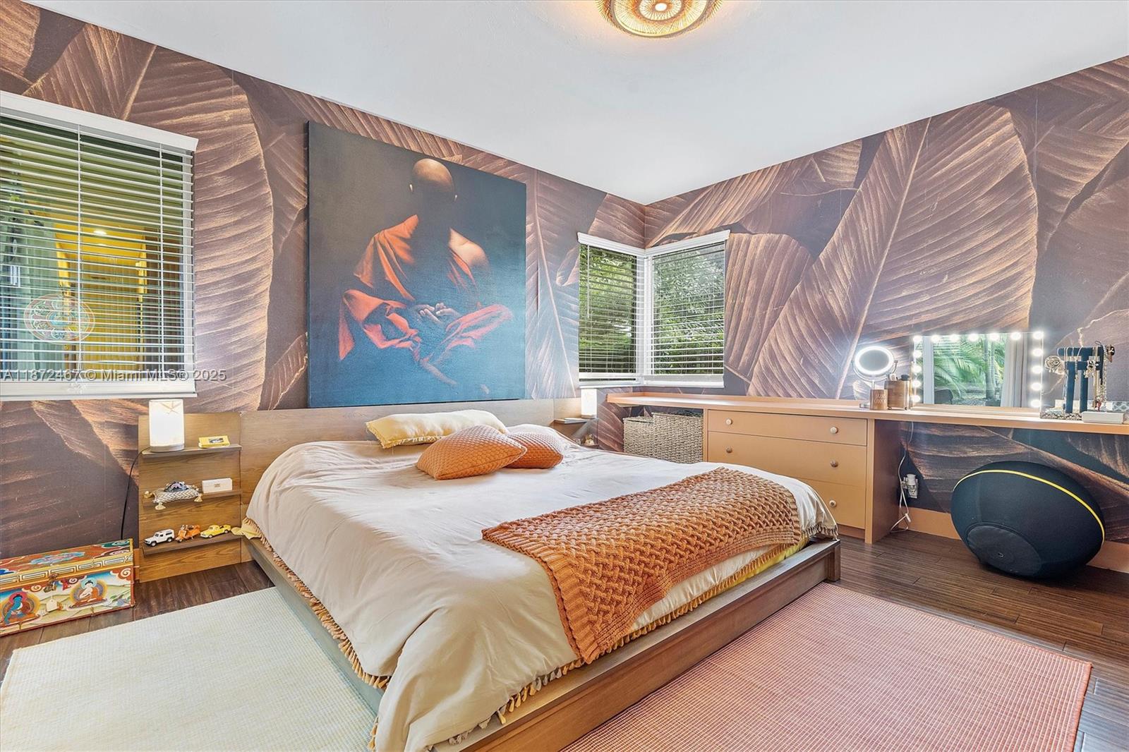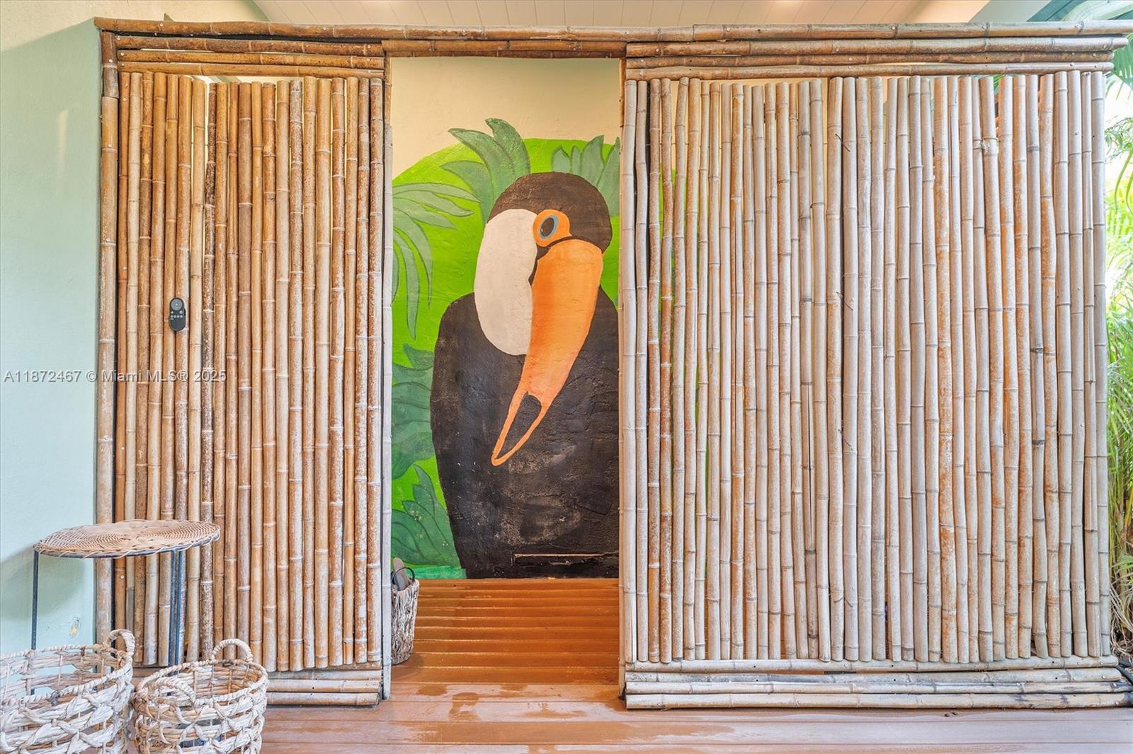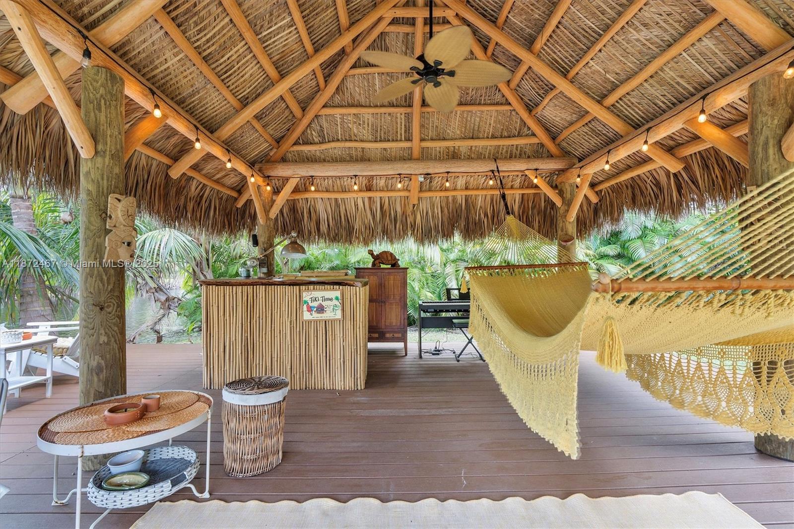 Step into a tropical waterfront sanctuary where every detail inspires serenity and connection with nature. This fully renovated property offers 4 bedrooms and 4.5 bathrooms total — 3 bedrooms and 3.5 baths in the main house, including 2 primary suites, plus a private guest studio with a full bath. An open living/dining area and designer kitchen create an inviting interior, while the detached studio provides flexible space for guests, work, or creativity. Outdoor living shines with a covered porch and tiki hut, complete with soaring ceilings, fans, and a bar. Lush landscaping attracts local birds, with room to add a pool. The property is fully fenced, with ample parking and two gated entrances for added privacy and ease. Just steps from MCDS.