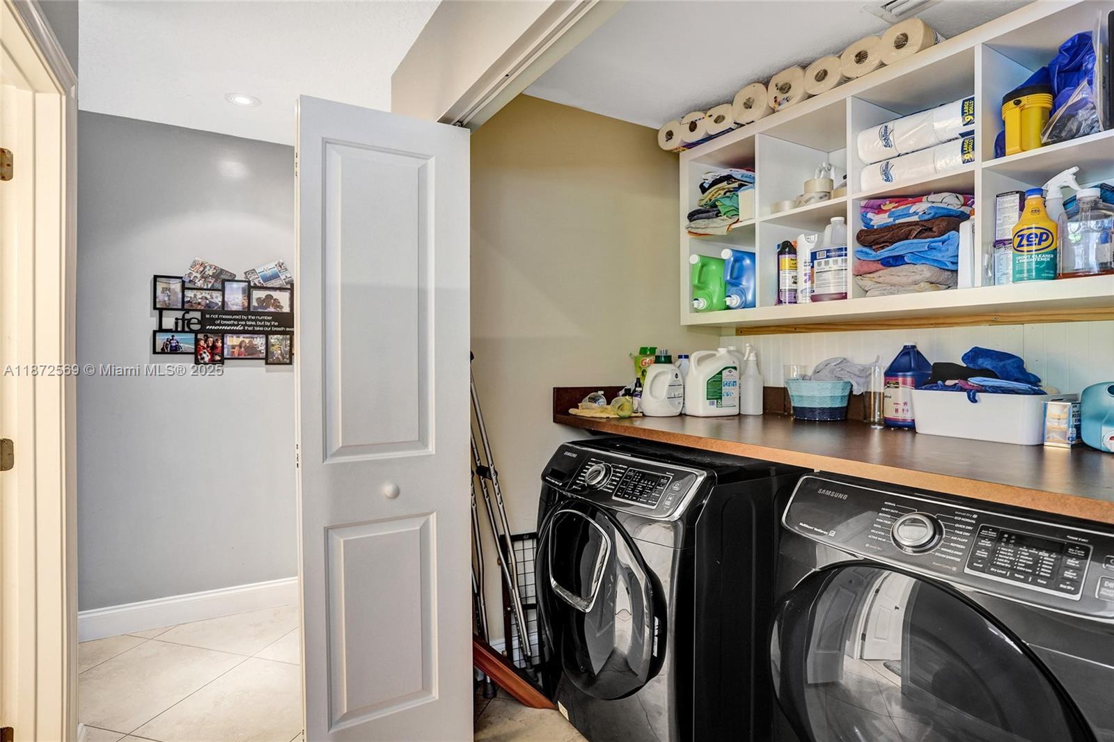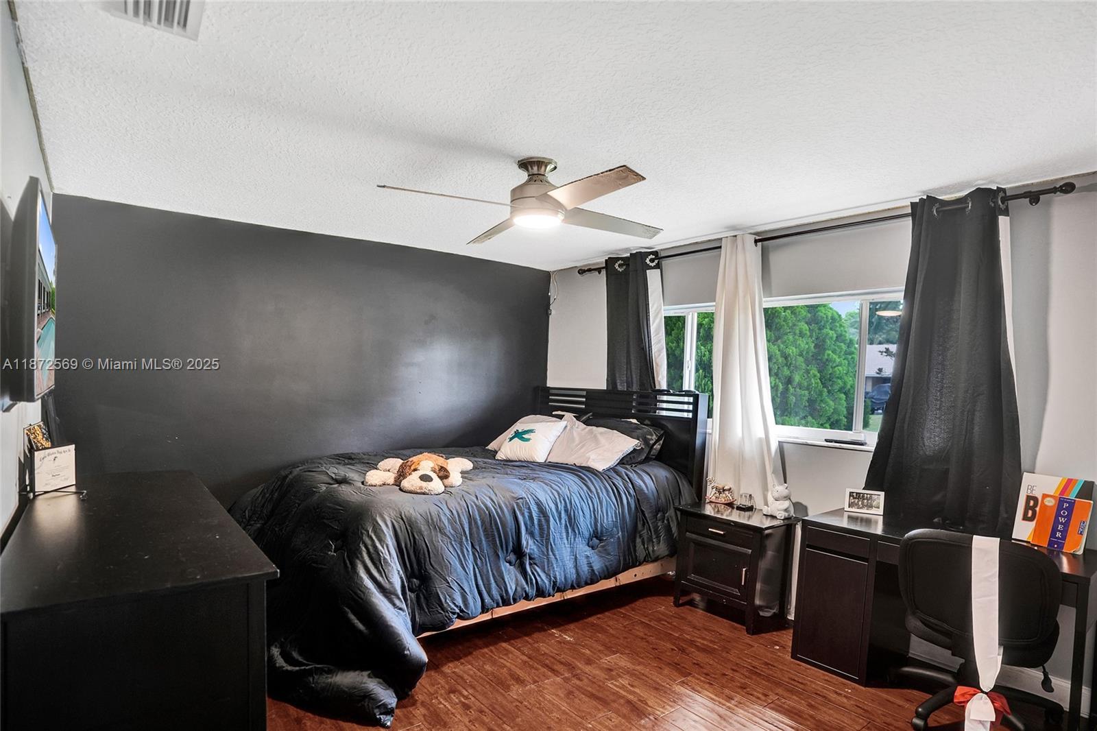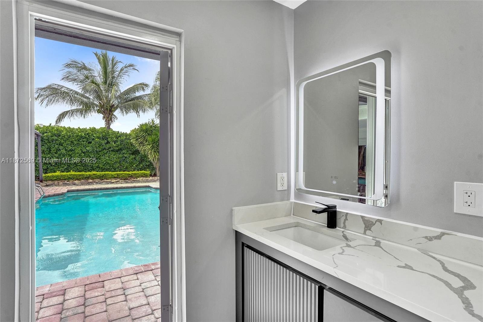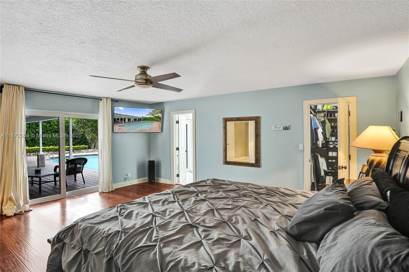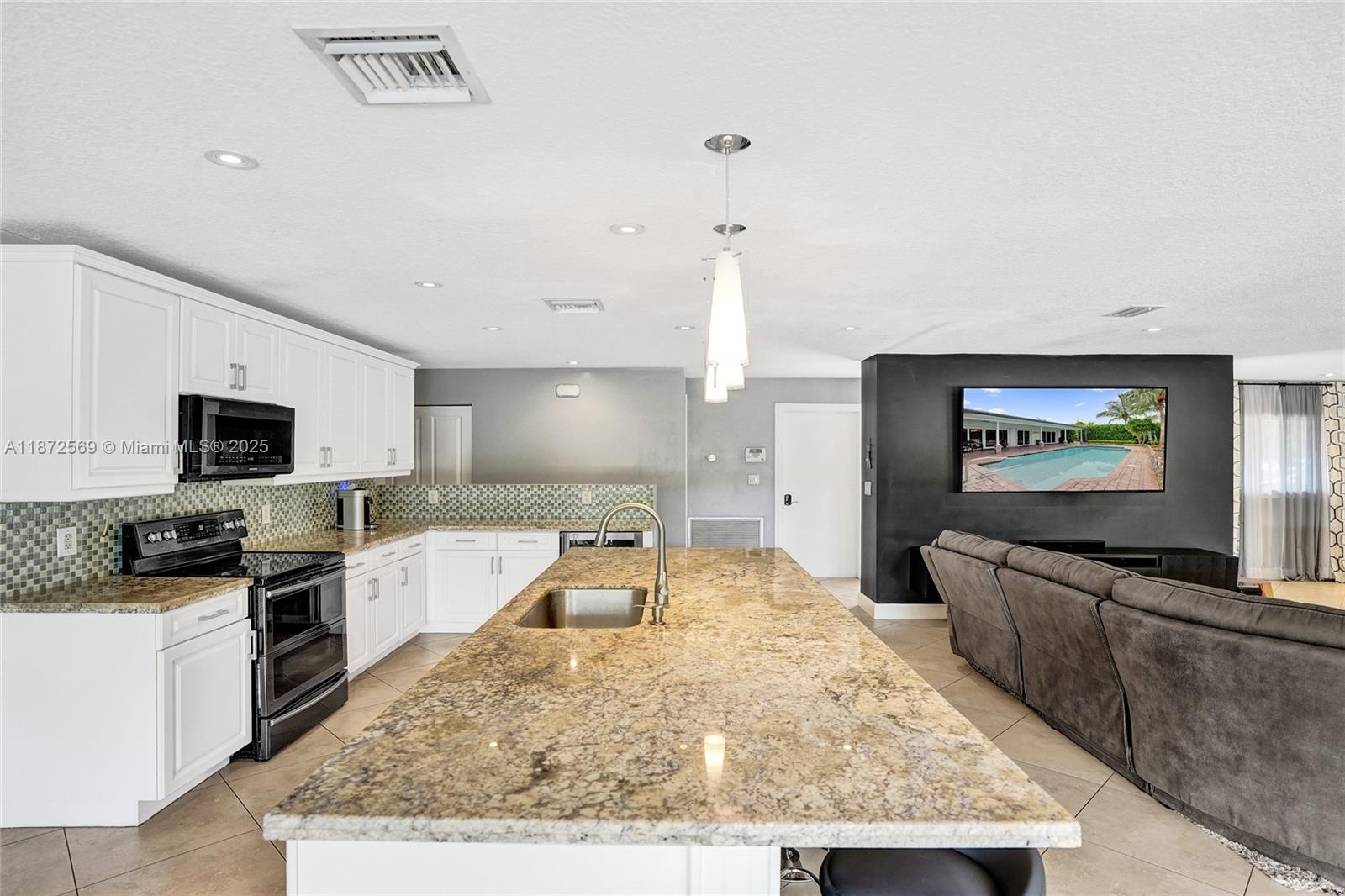 Welcome to your private oasis! This stunning 5 bedroom, 2.5 bath home features an updated open-concept kitchen, expansive living area, perfect for entertaining or relaxing. The huge primary bedroom boasts a walk-in closet and serene pool views, while both bathrooms are upgraded. Main areas shine w/tile flooring & bedrooms feature high quality laminate. Step outside to a backyard paradise w/a large covered patio, sparkling pool & lush greenery. A concrete slab is ideal for a tiki bar or shed in the back as well. Accordion shutters throughout, AC 2021, washer & dryer 2020, water heater 2022 & electrical panel 2024. This home combines beauty, comfort & peace of mind. Centrally located near top schools, restaurants, shops & highways. Solar panels may stay or go! Truly a must see!