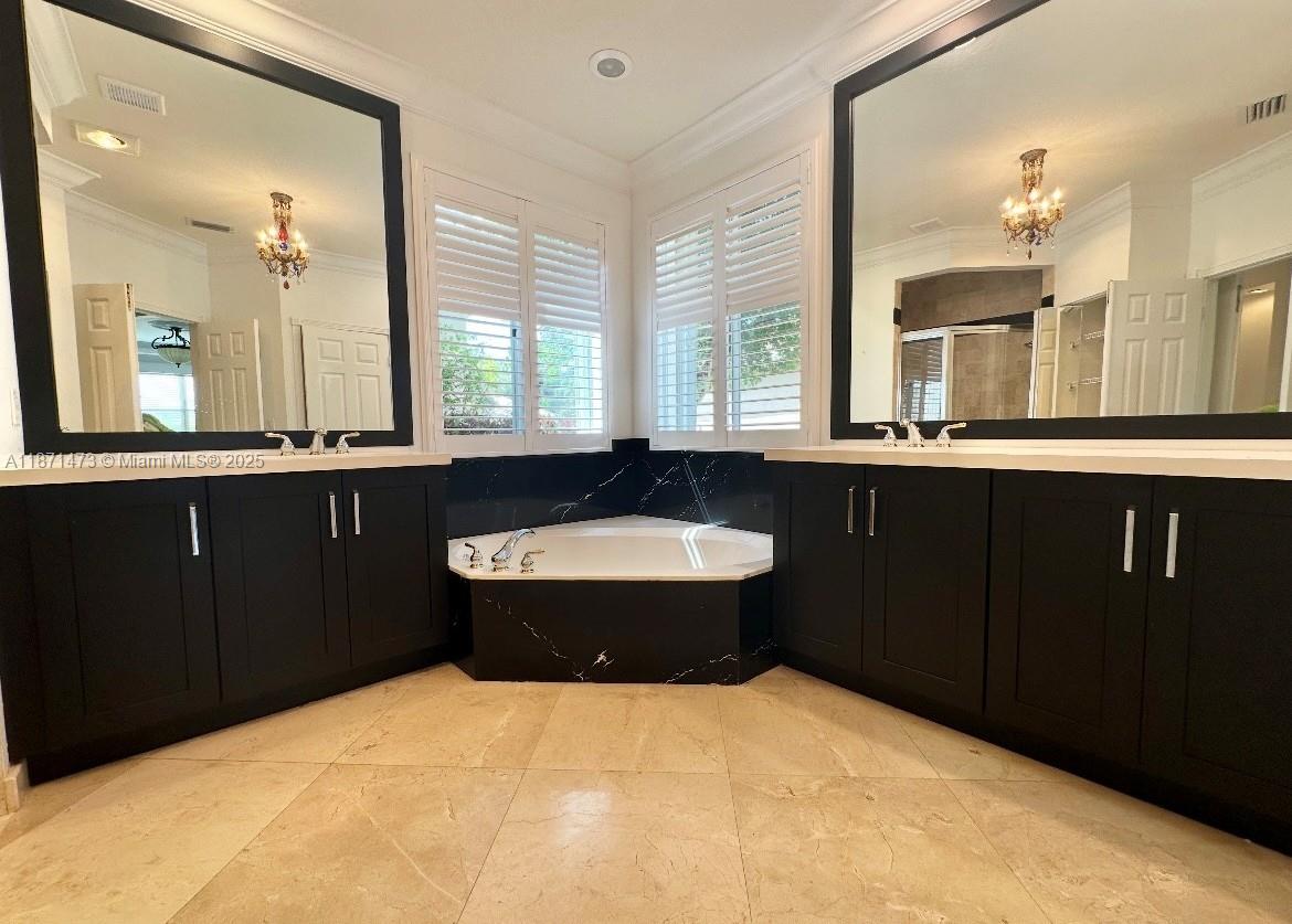 NEW LISTING with serene Lake View from relaxing pool & garden. This home is filled with so many enjoyable amenities like High Ceilings w/crown moldings, numerous windows, newly painted interior, large eat-in kitchen w/granite counters, wood cabinets & SS appliances. Fun casual snack bar & eat-in breakfast area flowing into large Family room w/TV Wall unit. Separate chic Living & Dining room. Huge Primary suite w/luxurious primary bath w/dual sinks, spa-tub & shower. 3 additional bedrooms-no carpeting! Beautiful marble flooring, plus sophisticated rich wood flooring in bedrooms. Window treatments & hurricane shutters. Come enjoy this active lifestyle at Villaggio, including Clubhouses, Cafe, shows, pools w/social & exercise programs. Tennis, Pickle Ball, Bocce, Racquet Ball & more!