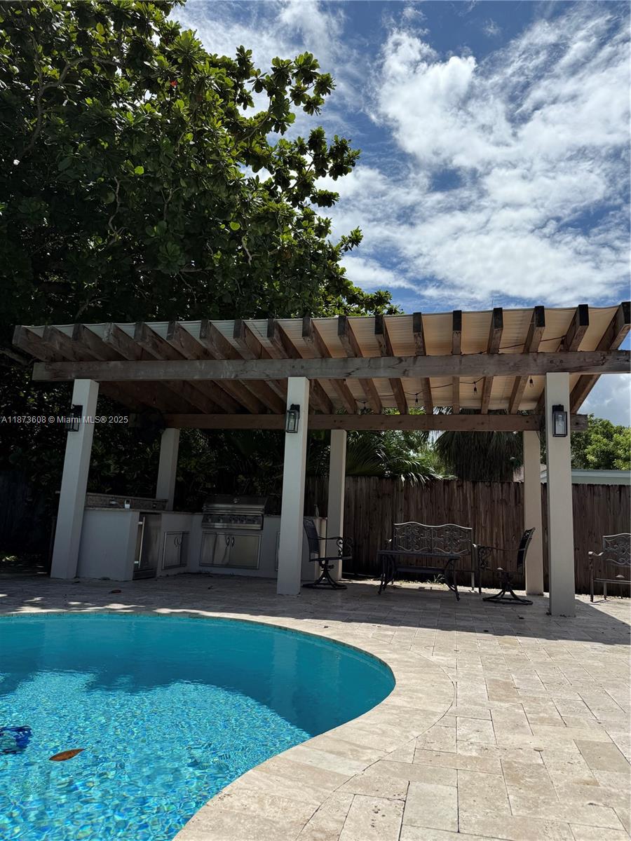 Beautifully maintained 4-bedroom, 2.5-bath pool home with double garage in Palmetto Bay on an oversized lot (15,372 sq. ft./1/3 acre) with lush landscaping. Features new roof (2019), all plumbing replaced (2019), impact windows & doors, saltwater pool with newer pump (2020), summer kitchen & gazebo. Kitchen includes island, stainless steel appliances & wine cooler. One bedroom comes with custom office furniture (included). Additional highlights: oversized tiles, white shutter blinds, dual updated A/C systems, and smart-home features including security cameras, Ring doorbell, smart lighting, and app-controlled irrigation. Near top schools, parks & Biscayne Bay—move-in ready!