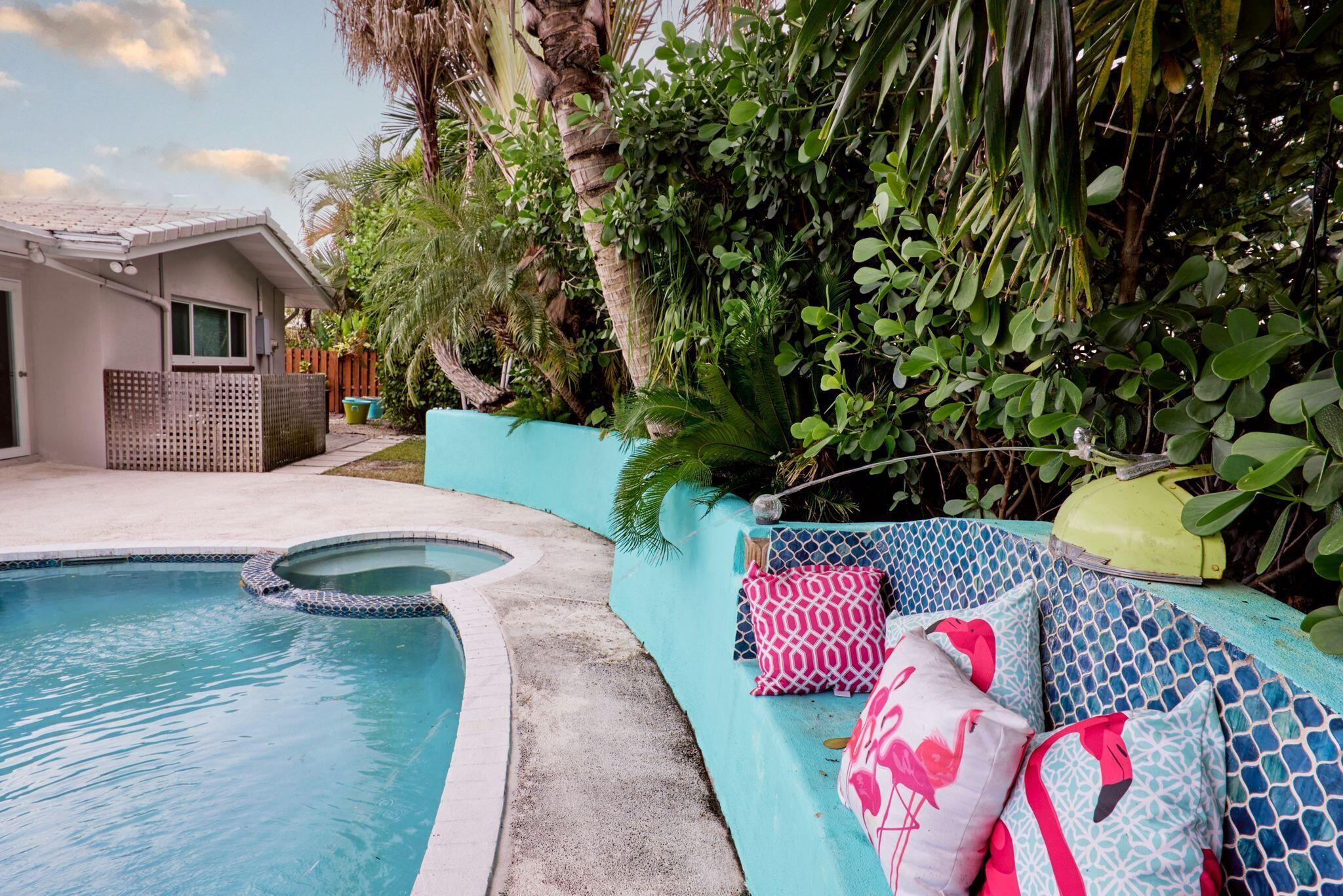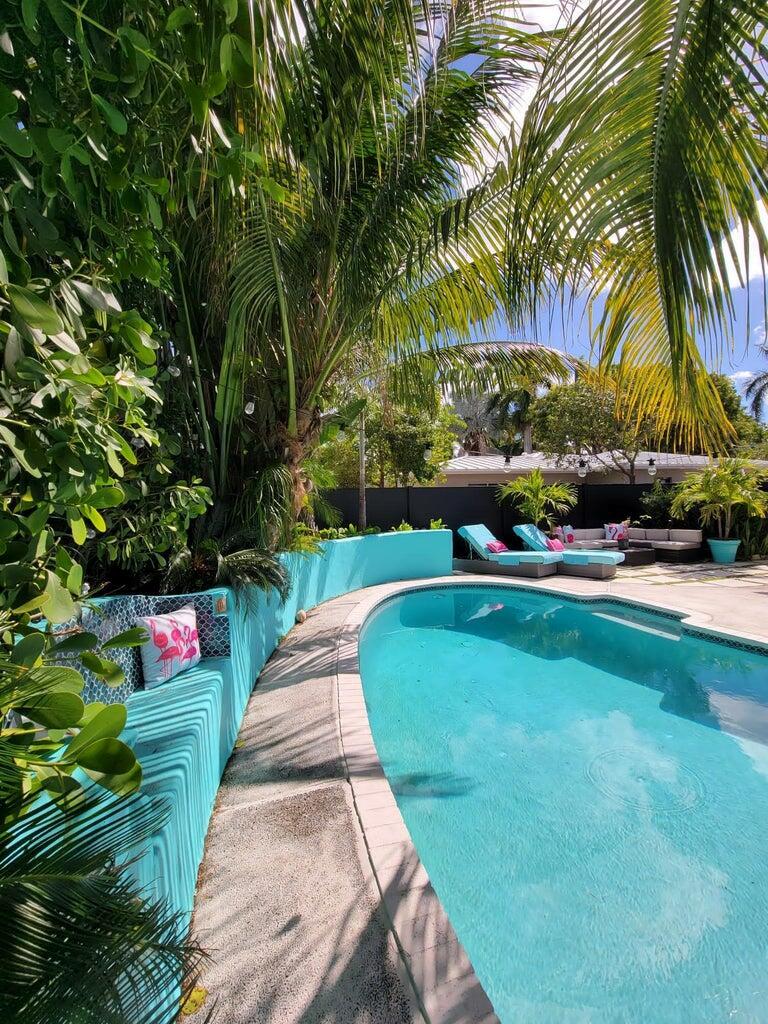 Beautifully updated 3BR/2BA mid-century pool home located in the desirable waterfront community of Hypoluxo Shores, just steps away from the intracoastal. Also listed for annual rent at $5,000 per month. This single-story residence features a split floor plan, open living areas, and a versatile Florida room overlooking a private tropical backyard retreat.Recent major updates include impact windows and doors (2022), roof (2023), and HVAC (2024) for worry-free living. The upgraded kitchen offers granite countertops, stainless steel appliances, and ample storage. Wood-look flooring flows throughout the living spaces, creating a warm and inviting feel.