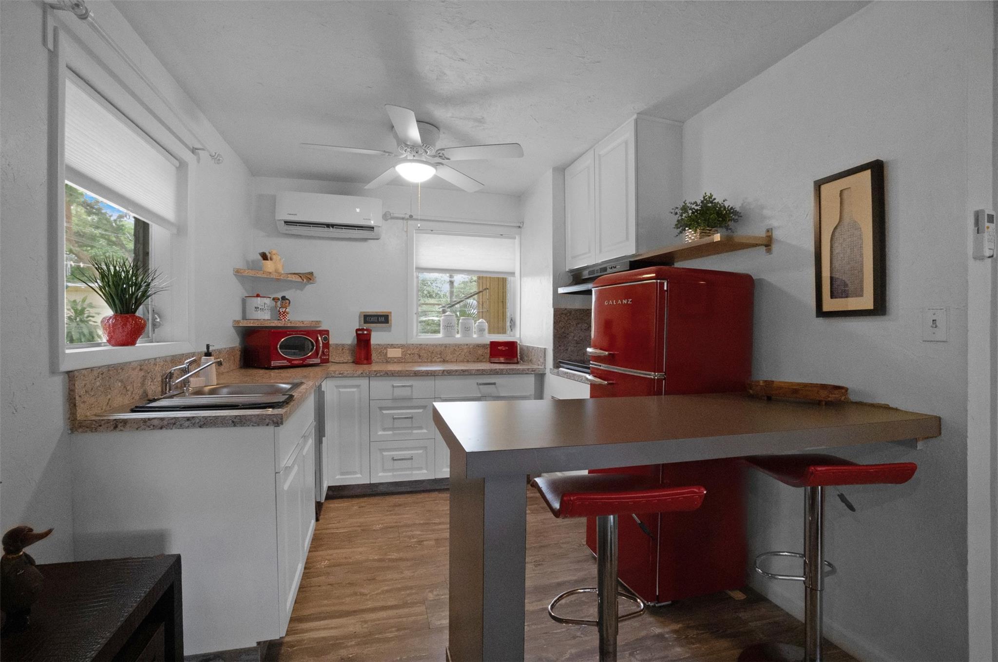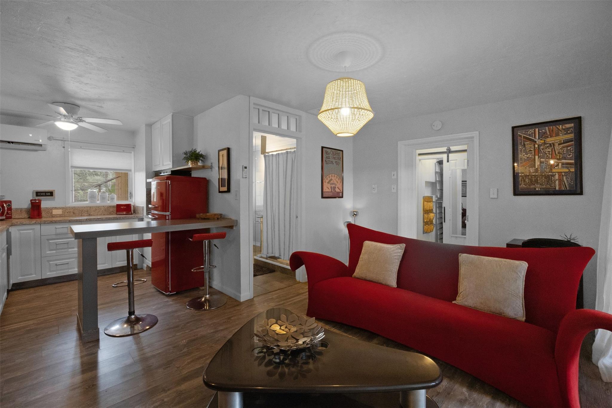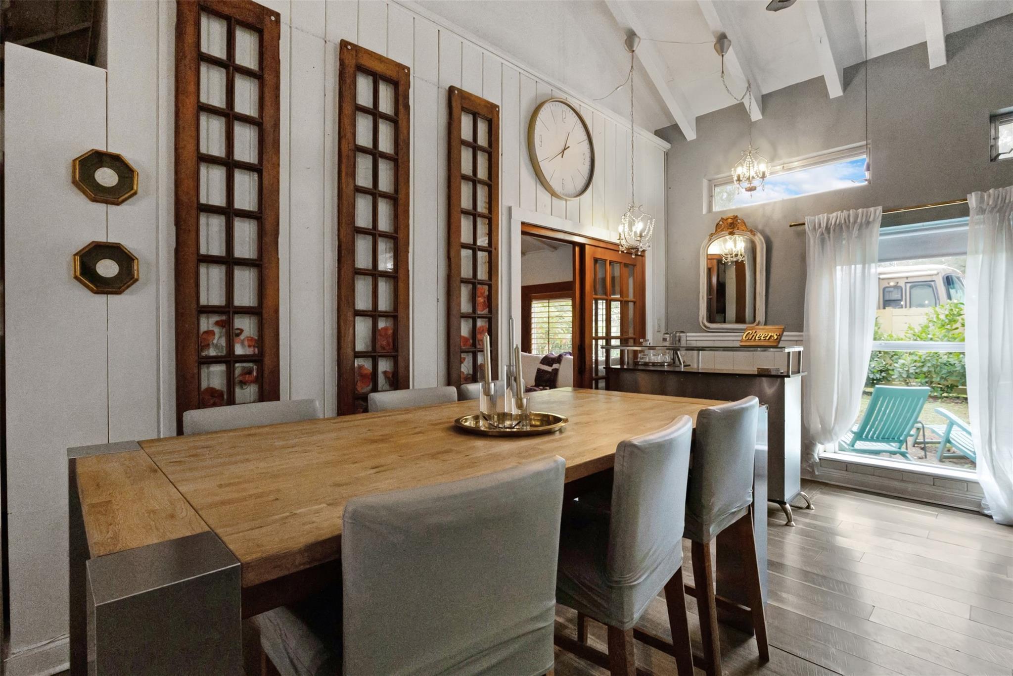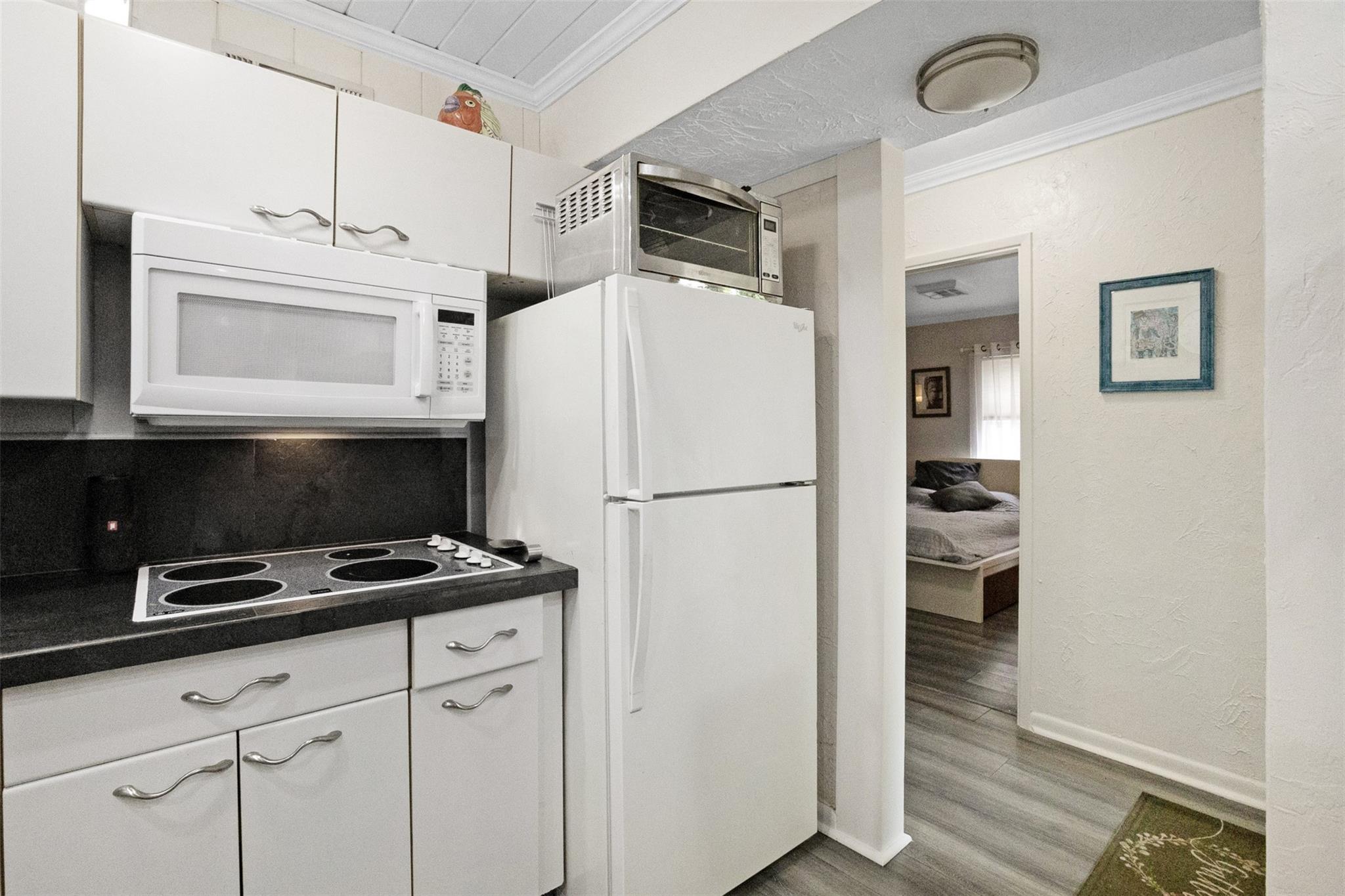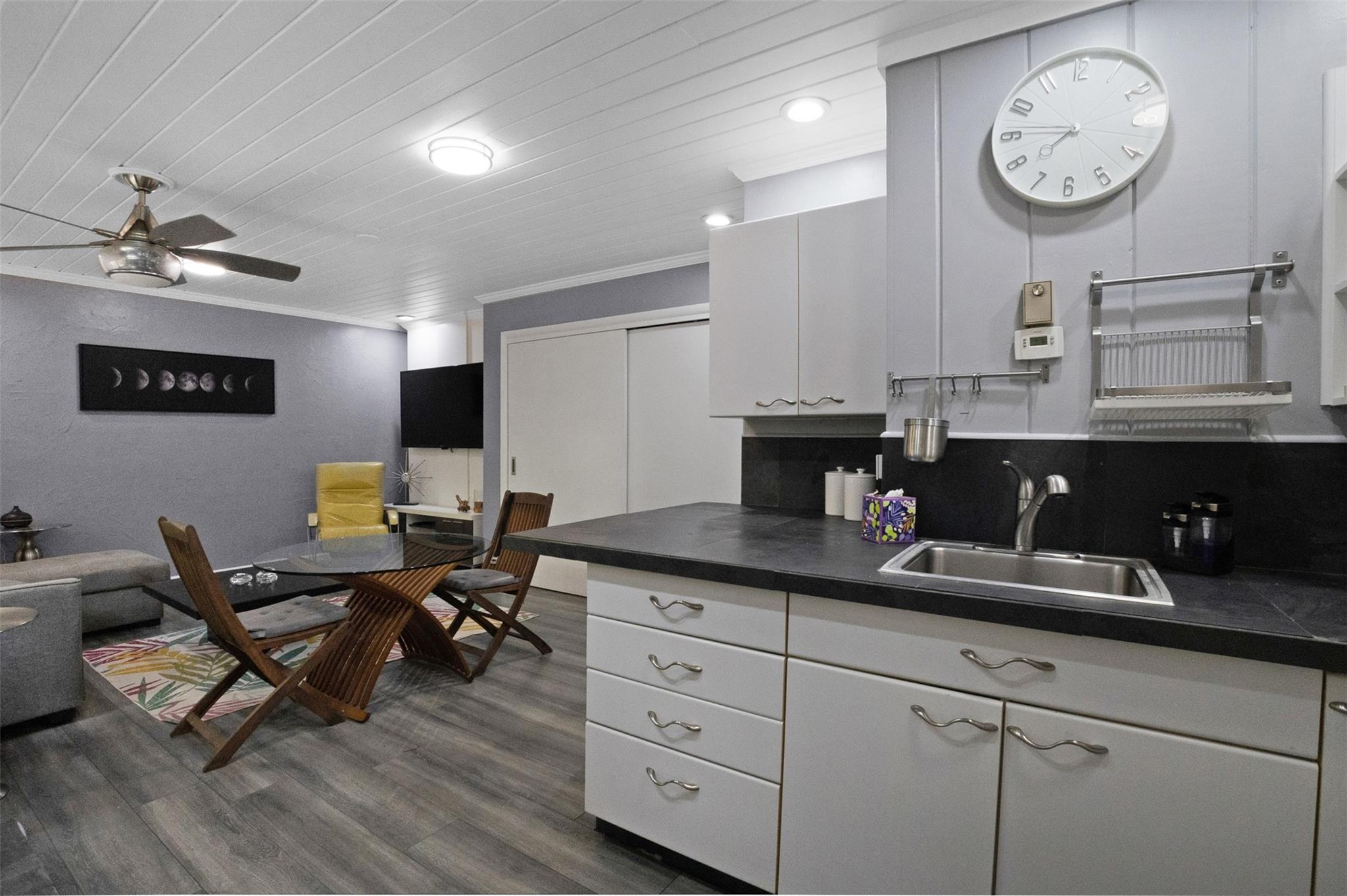 Endless Possibilities. Unique family home provides multiple living scenarios. Main residence has open remodeled white kitchen with countertops and back splash. Newer stainless steel appliances. Romantic fireplace. Island bar & countertop. Very high vaulted ceilings lead to large loft master bedroom with spacious closet remodeled master bedroom. Outdoor second story private patio off master. In-laws one bedroom suite (easily becomes 2 BDR) completely remodeled bath and kitchen. Large outdoor patio with seating. Rear Quarters has completely remodeled kitchen area& bathroom. Private screened patio & yard. Central Quarters has remodeled kitchen & bathrooms. Two Laundry's. Newer W/D. Use for large family living, investment or short/long terms rentals. NO HOA.