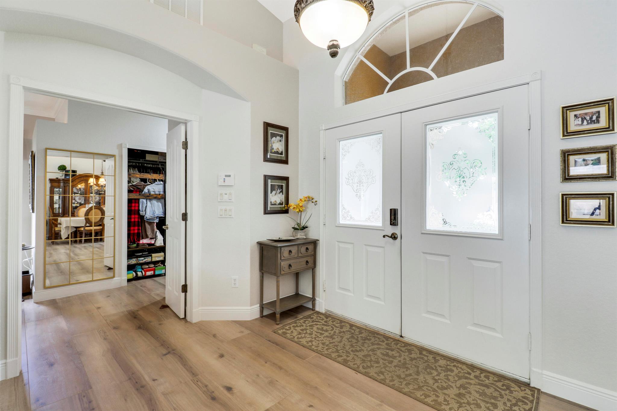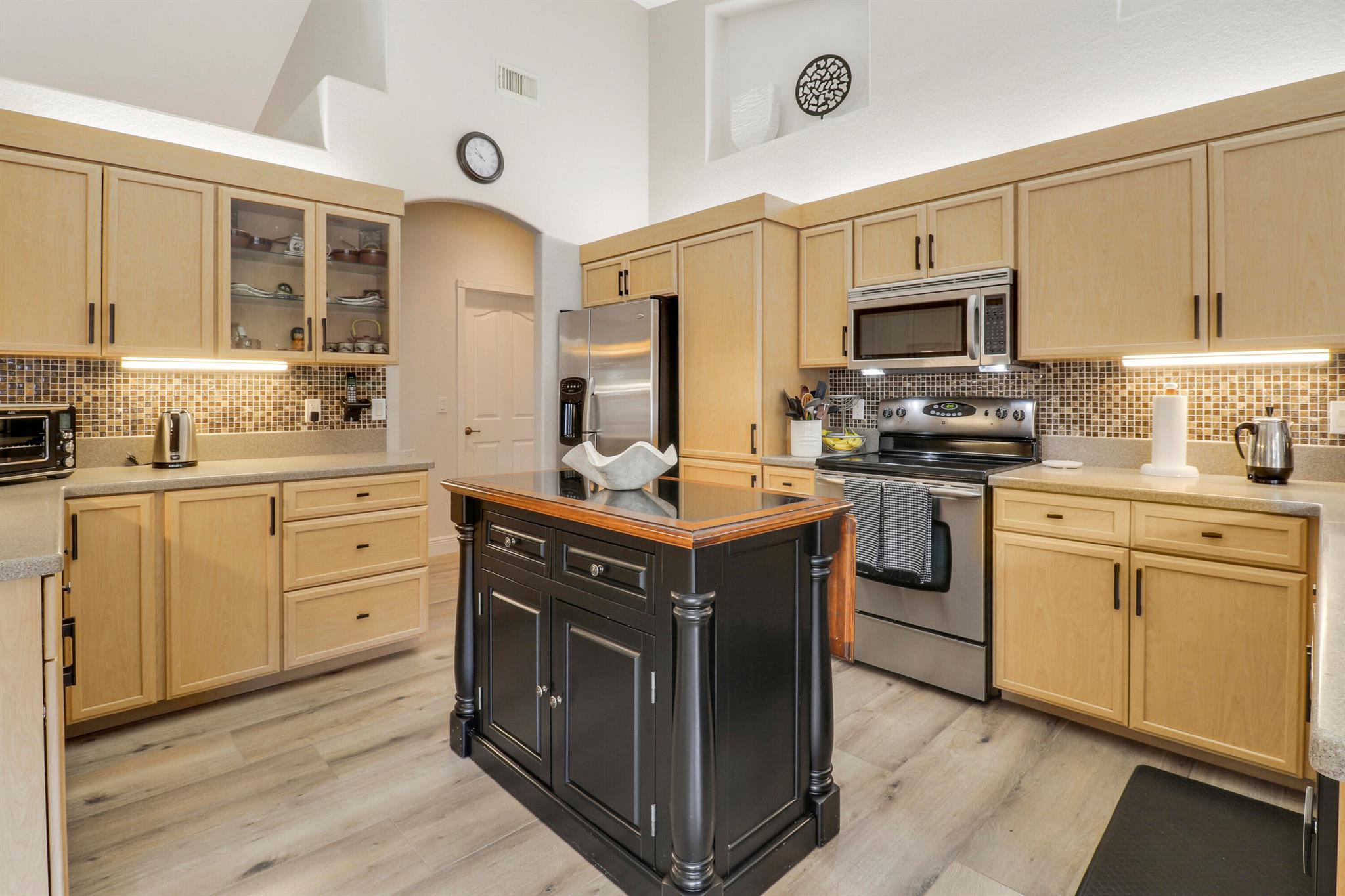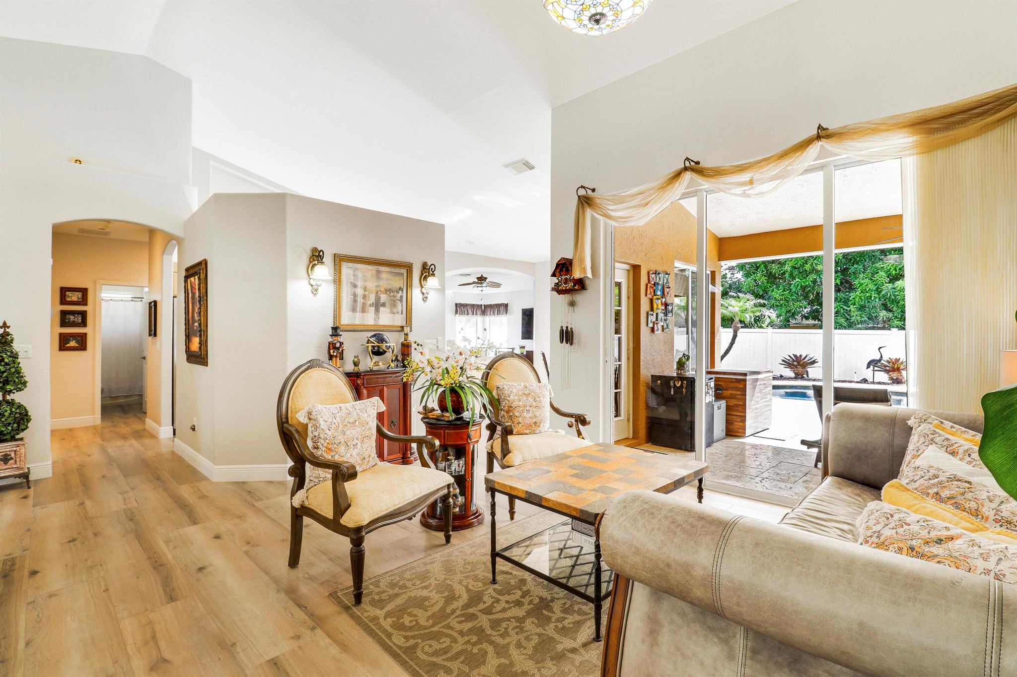 A beautiful home at a great value! Original owner. Split bedrooms, formal dining and an eat in kitchen. Perfect mix of open concept, but not ''too open'' Great sightlines from the kitchen to the family room and the pool with enough room to have a quiet place.Spotless and very well maintained, truly turnkey.Vinyl fence for privacy and keeps the kids and pets in your sight and safe.Newer metal roof, new wood-look tile flooring except 3rd bedroom, plenty of tile in the garage to do it, or keep the new high traffic carpet. Primary has dual sinks and vanities, whole house water filtration, full storm protection, generator hook up, New Smart heat pump WH, built in storage in garage, epoxy flooring in garage and driveway! East of 95 tween Becker and Gatlin. NO HOA. What's not to love?