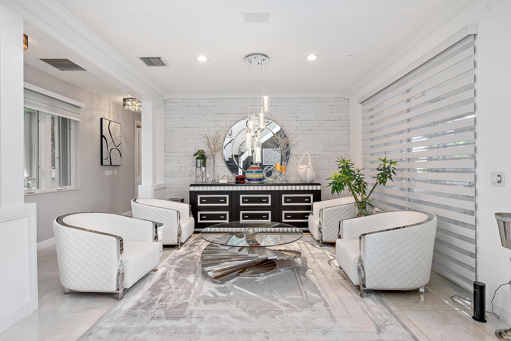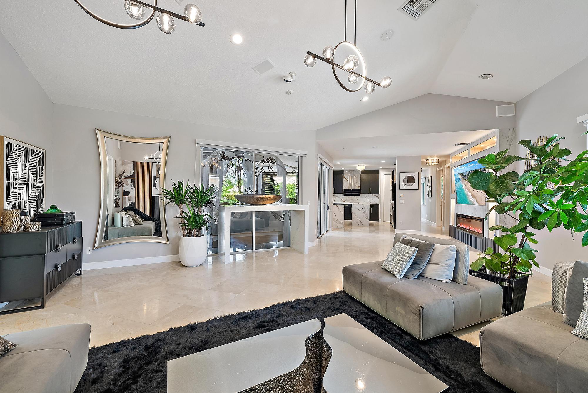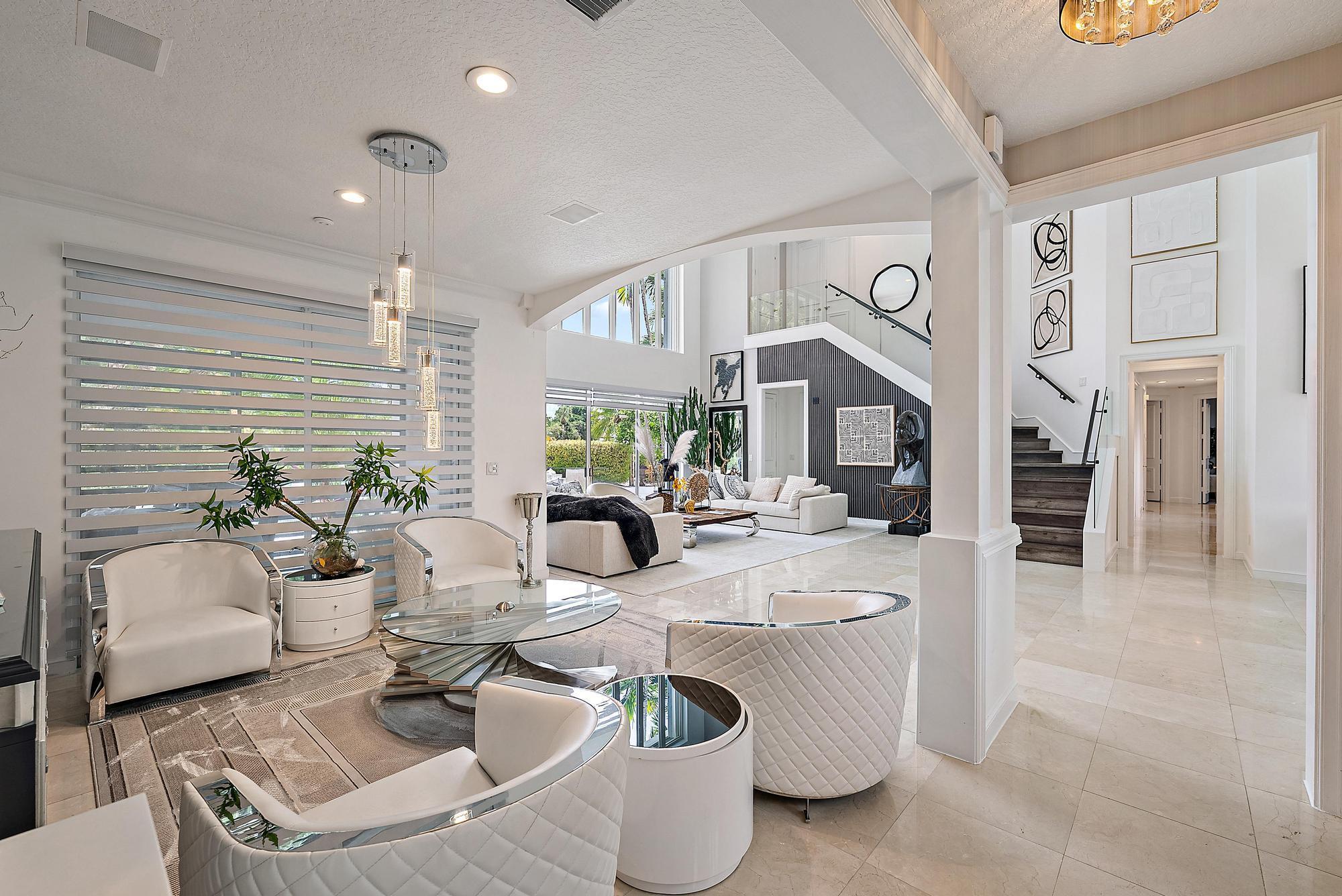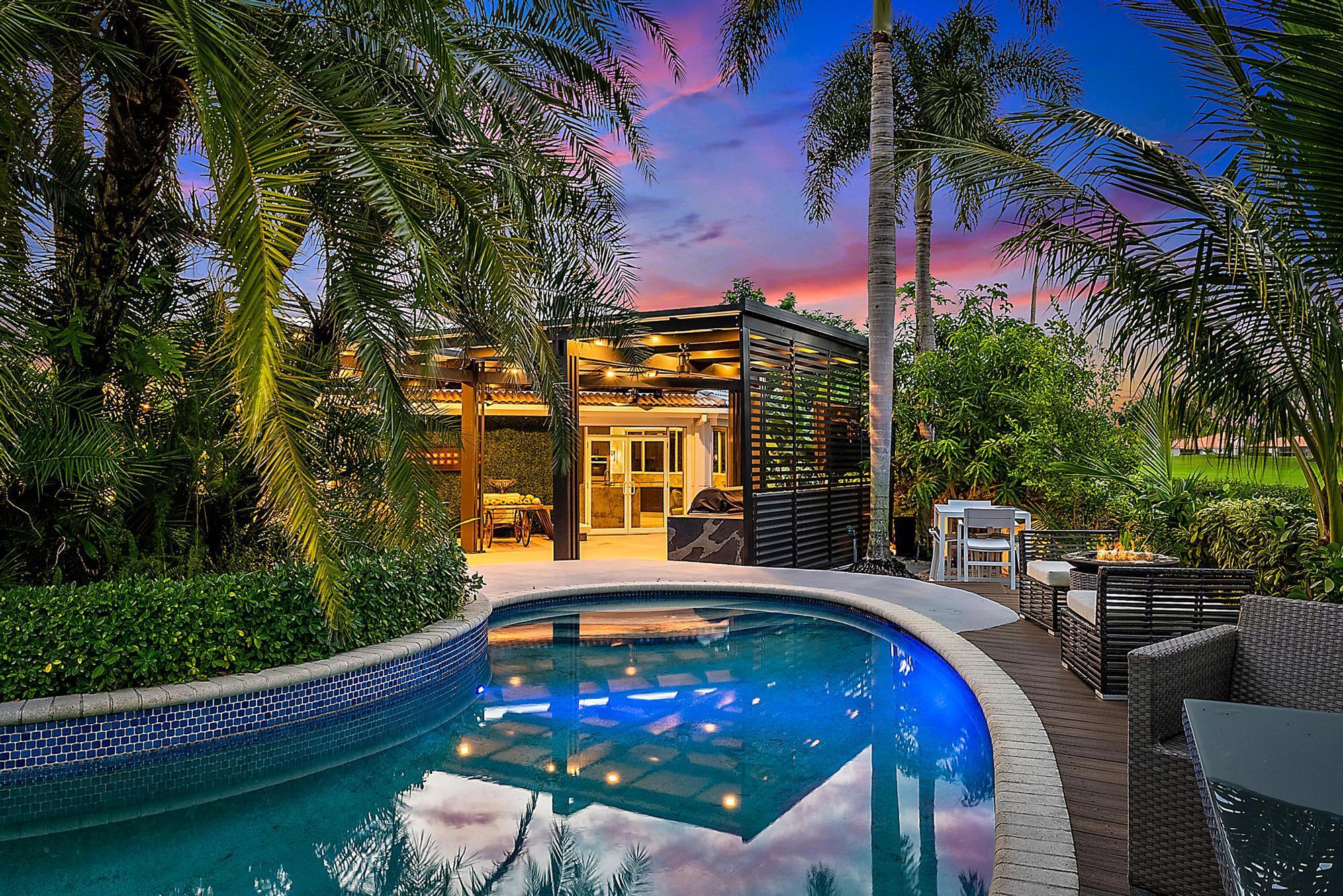 A One-of-a-Kind Estate with 350 Feet of Waterfrontage on one of Ibis's most valuable lots. Set on a rare .70-ACRE, pie-shaped cul-de-sac lot with 350 FEET OF WATER FRONTAGE, this majestic estate offers sweeping panoramic views of lakes and the Jack Nicklaus-designed Legend Course, holes 5, 6, and 7. Designed to impress yet created for everyday comfort, the property has been fully reimagined with a modern, zen-inspired aesthetic that emphasizes harmony, openness, and connection to its extraordinary surroundings. Inside, expansive windows flood the interiors with natural light and frame the resort-style pool and grounds. The flow between formal and casual spaces makes the home ideal for both intimate living and grand entertaining.