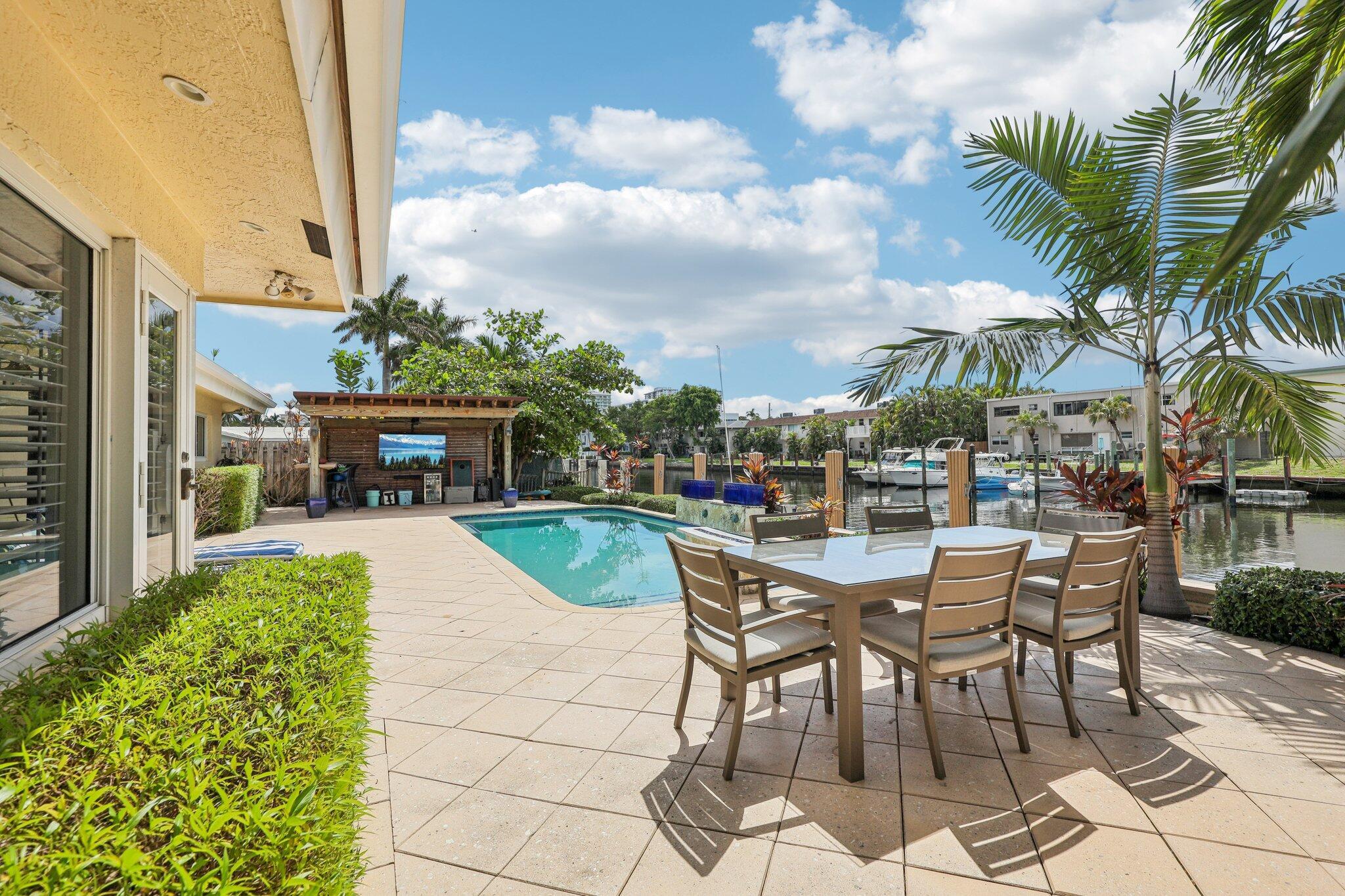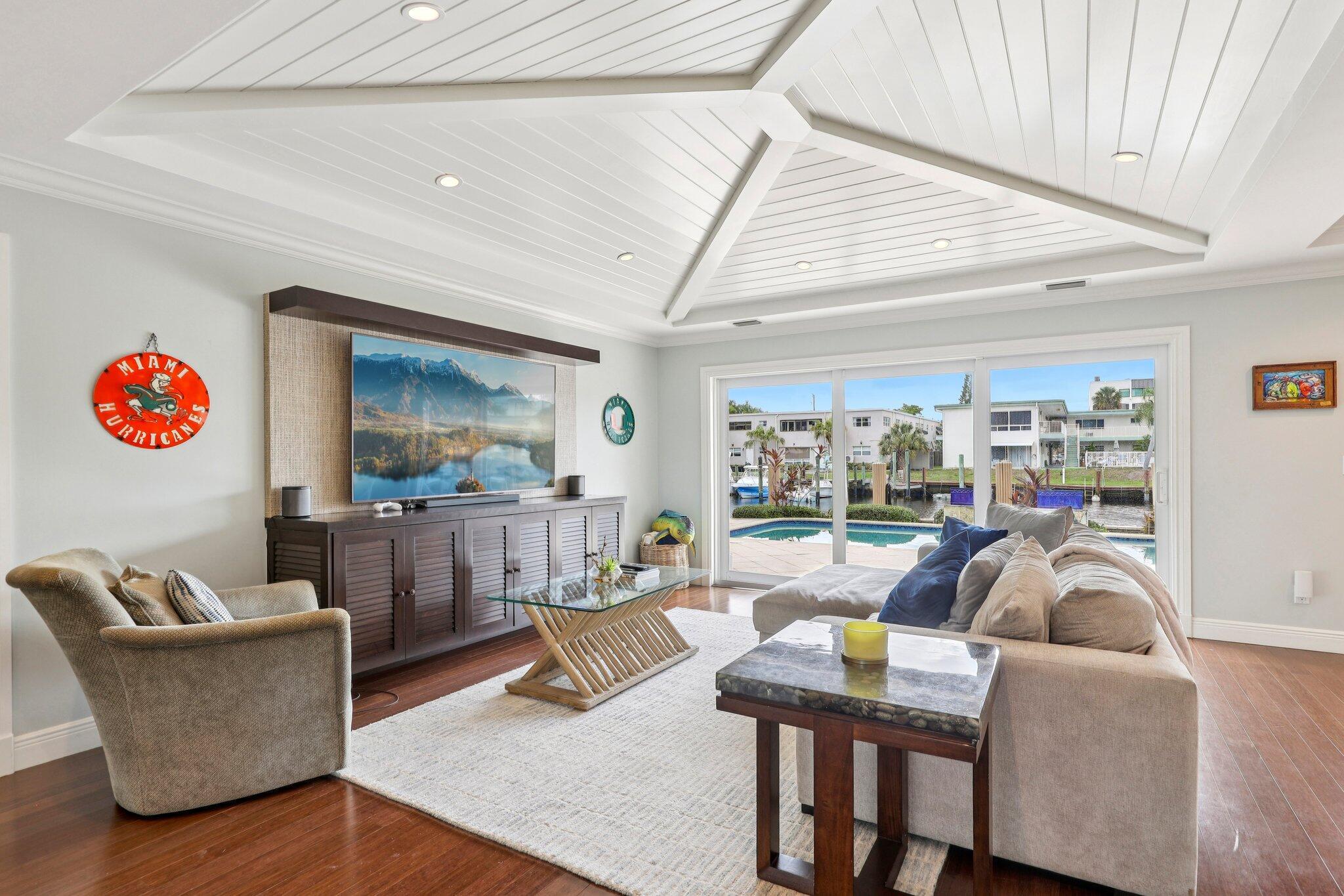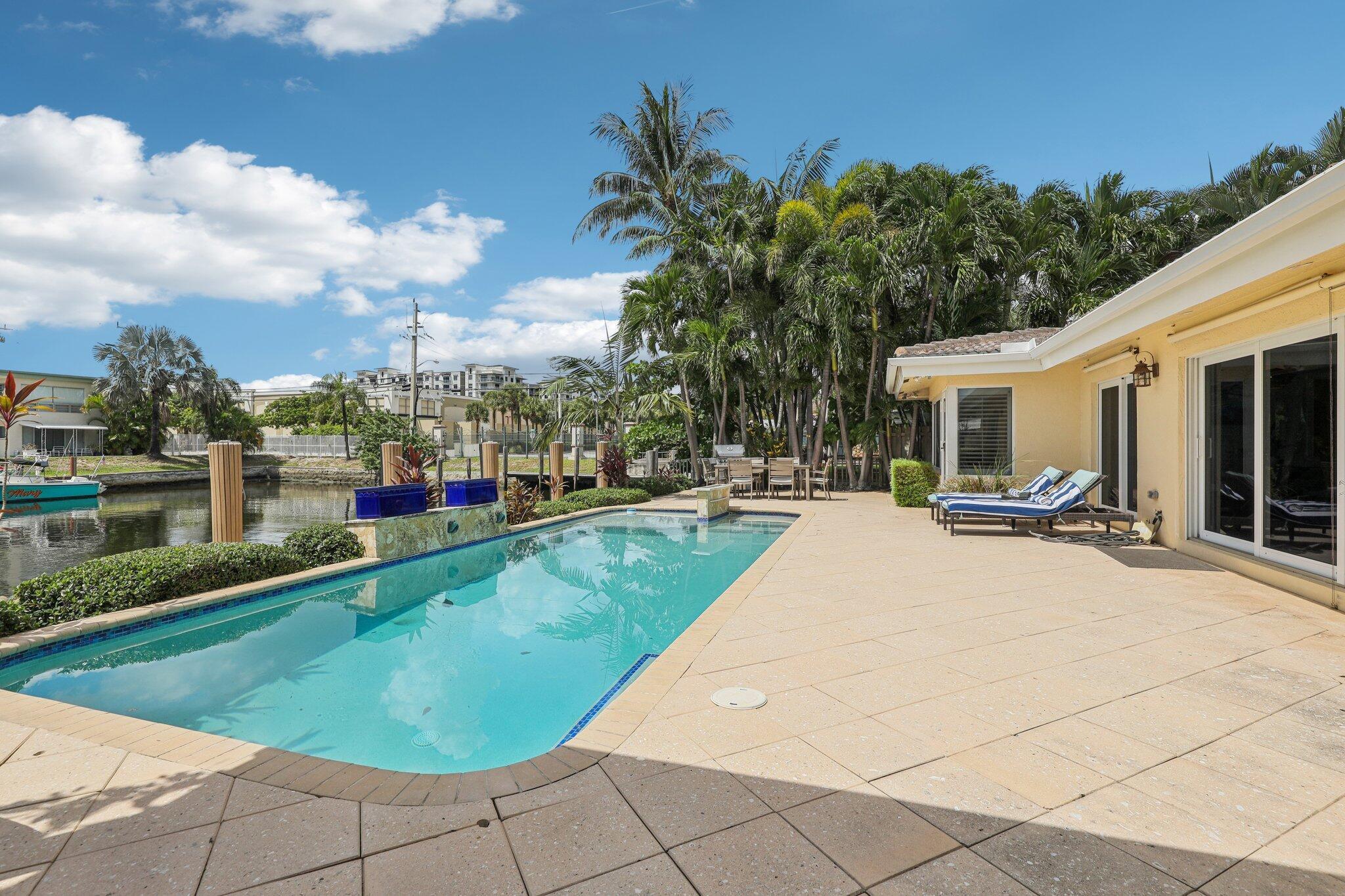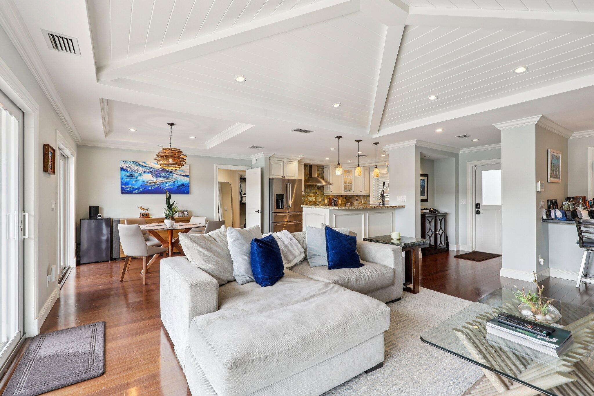 Experience the ultimate in coastal living on a 120' wide southern exposure canal with 75' of premier no fixed bridge waterfront. The closest block to dining & the beach. This private retreat blends elegance and ease. Professionally designed interior showcases vaulted ceilings w/custom woodwork, custom bar, & an open chef's kitchen with breakfast bar, gas cooking, and new stainless appliances (2023). The split floor plan creates seamless flow for living and entertaining. Outdoors, lush landscaping frames a heated saltwater pool, covered bar, and 2021-65' composite dock. Upgrades include AC (2020), Roof, tankless water heater, PVC plumbing, LED lighting, electrical, smart thermostat, and a full-home renovation(2013). Finished with a coral stone drive, incredible landscaping & polished feel.