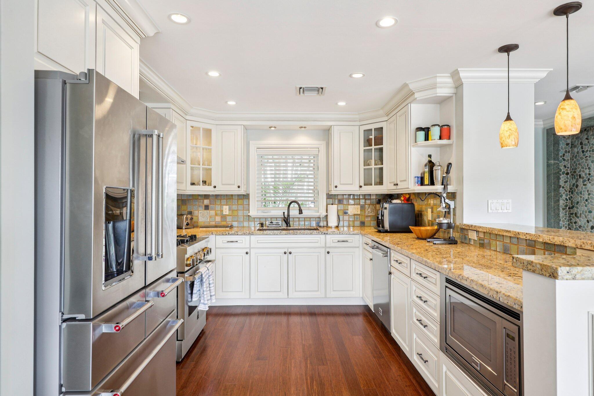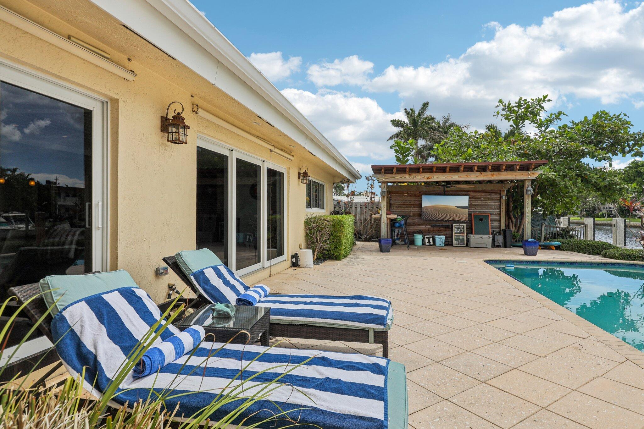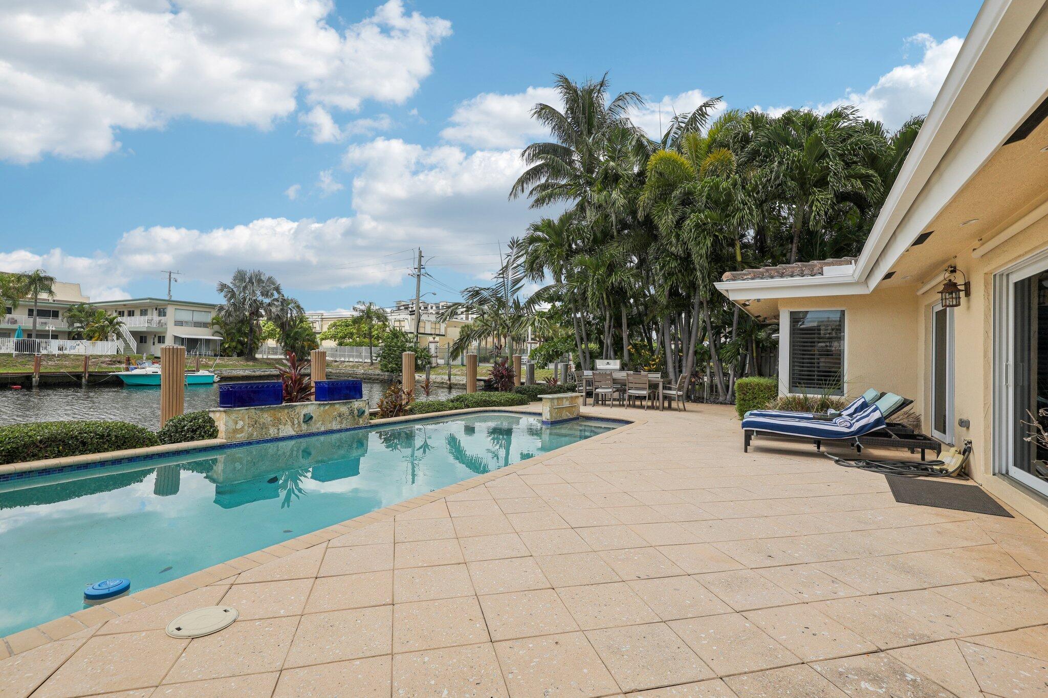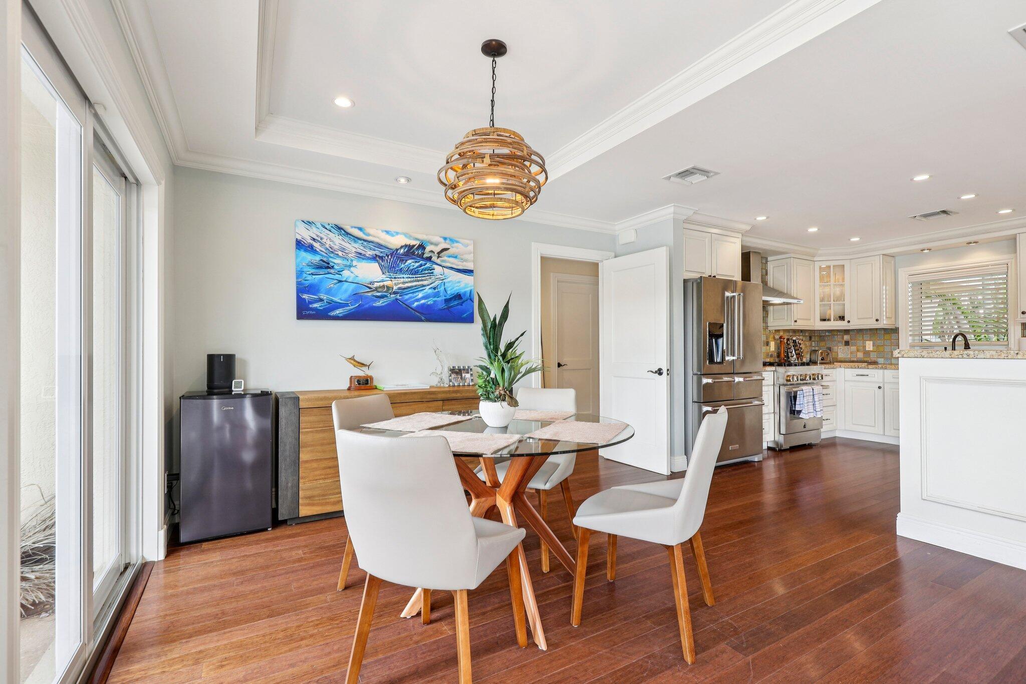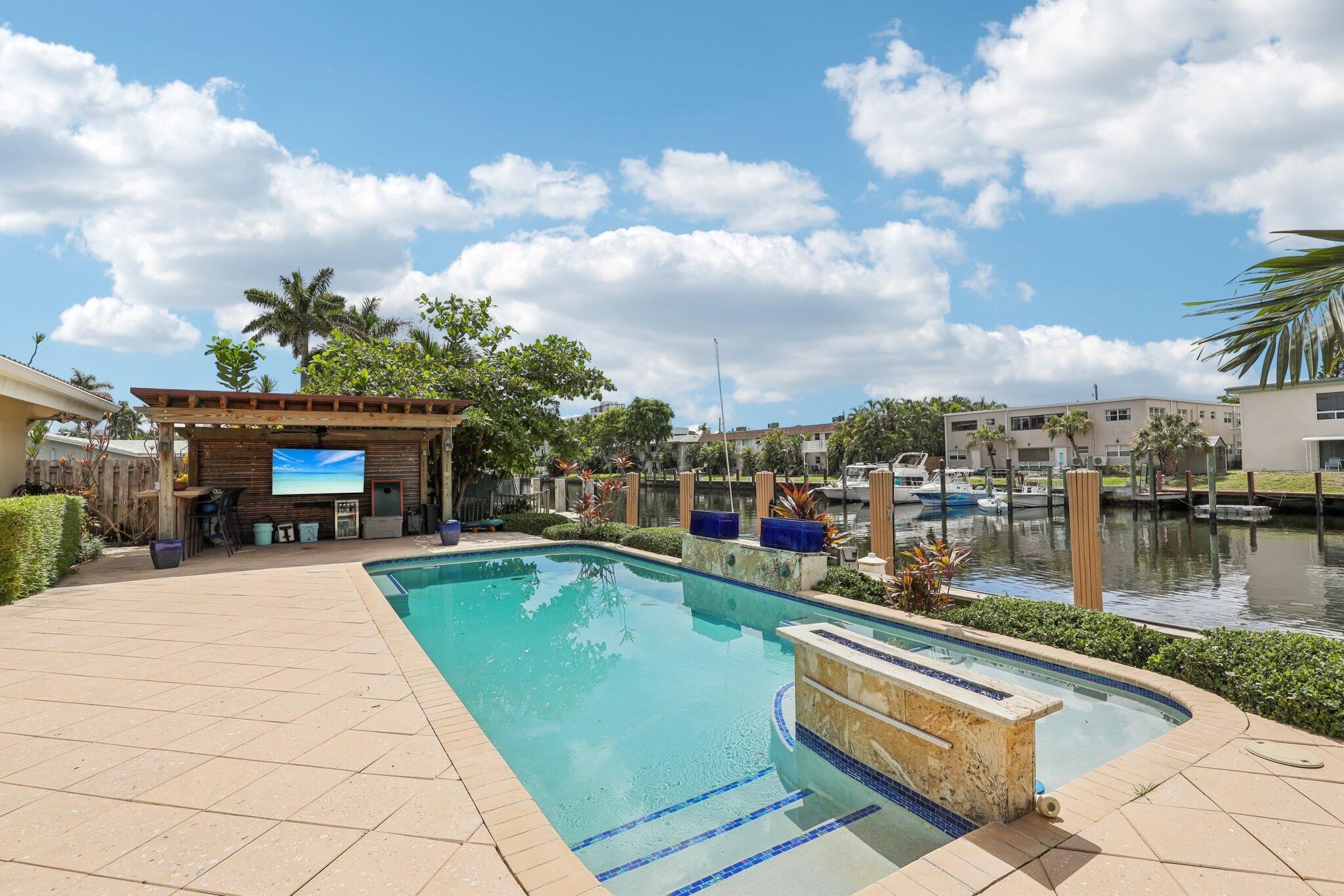 Experience the ultimate in coastal living on a 120' wide southern exposure canal with 75' of premier no fixed bridge waterfront. The closest block to dining & the beach. This private retreat blends elegance and ease. Professionally designed interior showcases vaulted ceilings w/custom woodwork, custom bar, & an open chef's kitchen with breakfast bar, gas cooking, and new stainless appliances (2023). The split floor plan creates seamless flow for living and entertaining. Outdoors, lush landscaping frames a heated saltwater pool, covered bar, and 2021-65' composite dock. Upgrades include AC (2020), Roof, tankless water heater, PVC plumbing, LED lighting, electrical, smart thermostat, and a full-home renovation(2013). Finished with a coral stone drive, incredible landscaping & polished feel.