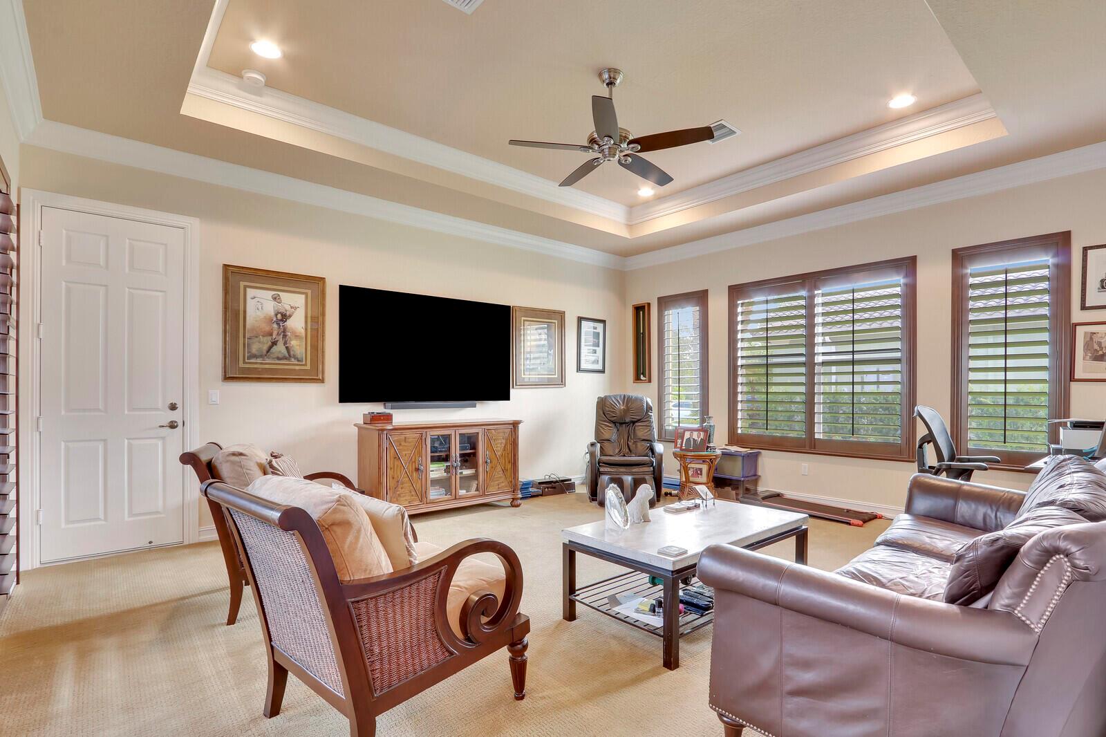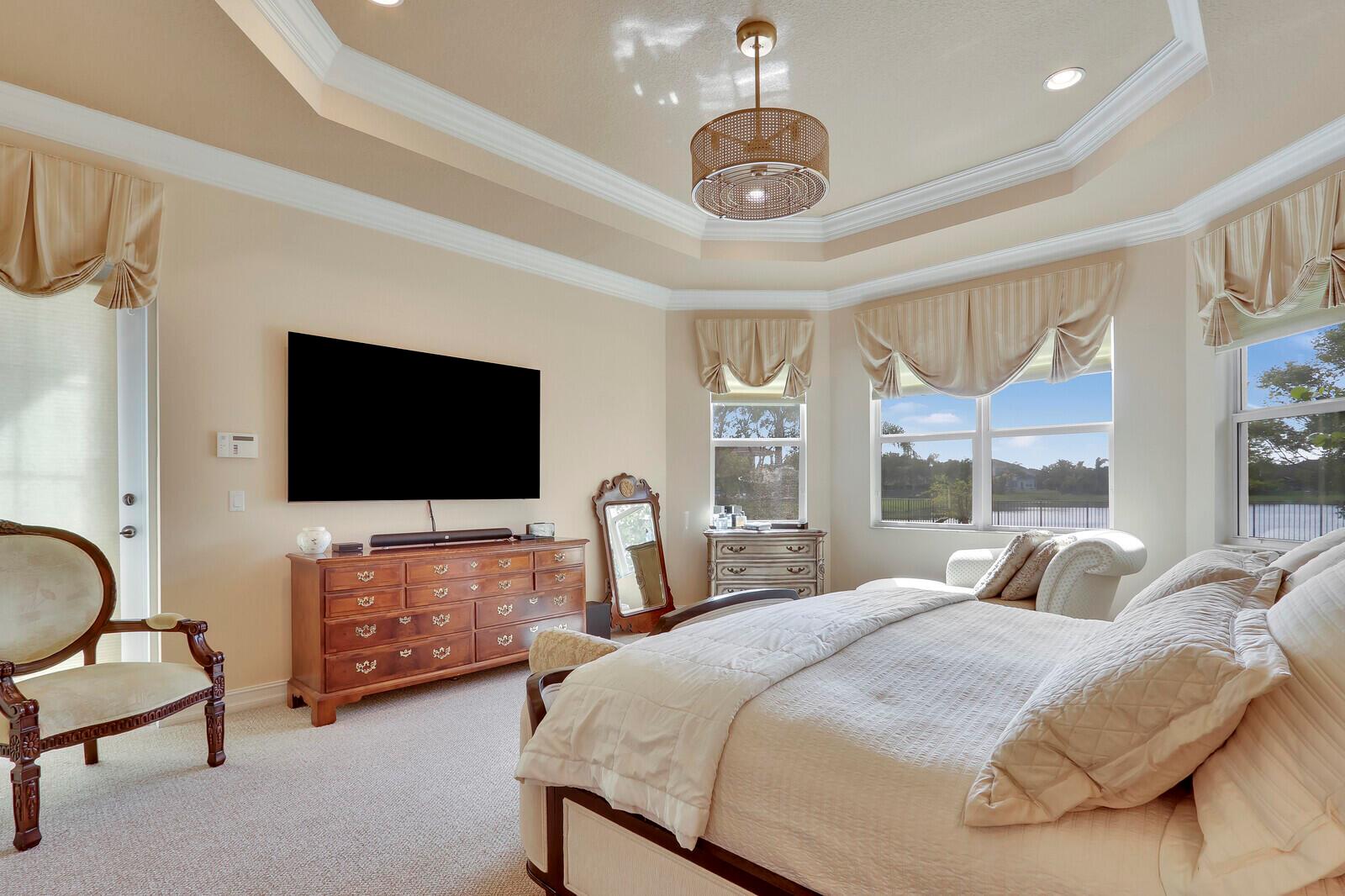 Privacy! Privacy! Privacy! Nestled in The Preserve at Bay Hill Estates, a uniquely private subdivision with a manned gatehouse, this elegant 3BR, 3.5 Baths, is situated on a fully fenced 1/2 acre water view lot. Featuring a large circular driveway with lush exterior landscaping, outside lighting and a split 3 car garage. As you enter the courtyard entrance you encounter frosted double glass doors leading into a grand foyer with 20' vaulted ceilings. Outside is a 15x30 foot heated salt water pool with spa. Kitchen cabinets are upgraded with soft close doors and featured overhead and undermount lighting. All original appliances have been replaced and upgraded. The primary bedroom has very generous his and her closets. Primary bathroom includes a car wash shower. Large 20x20 clubroom.