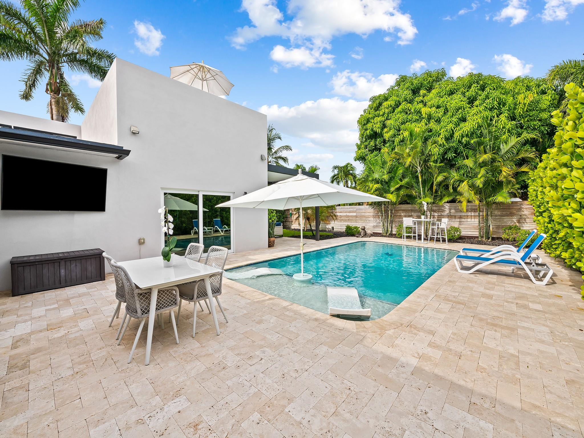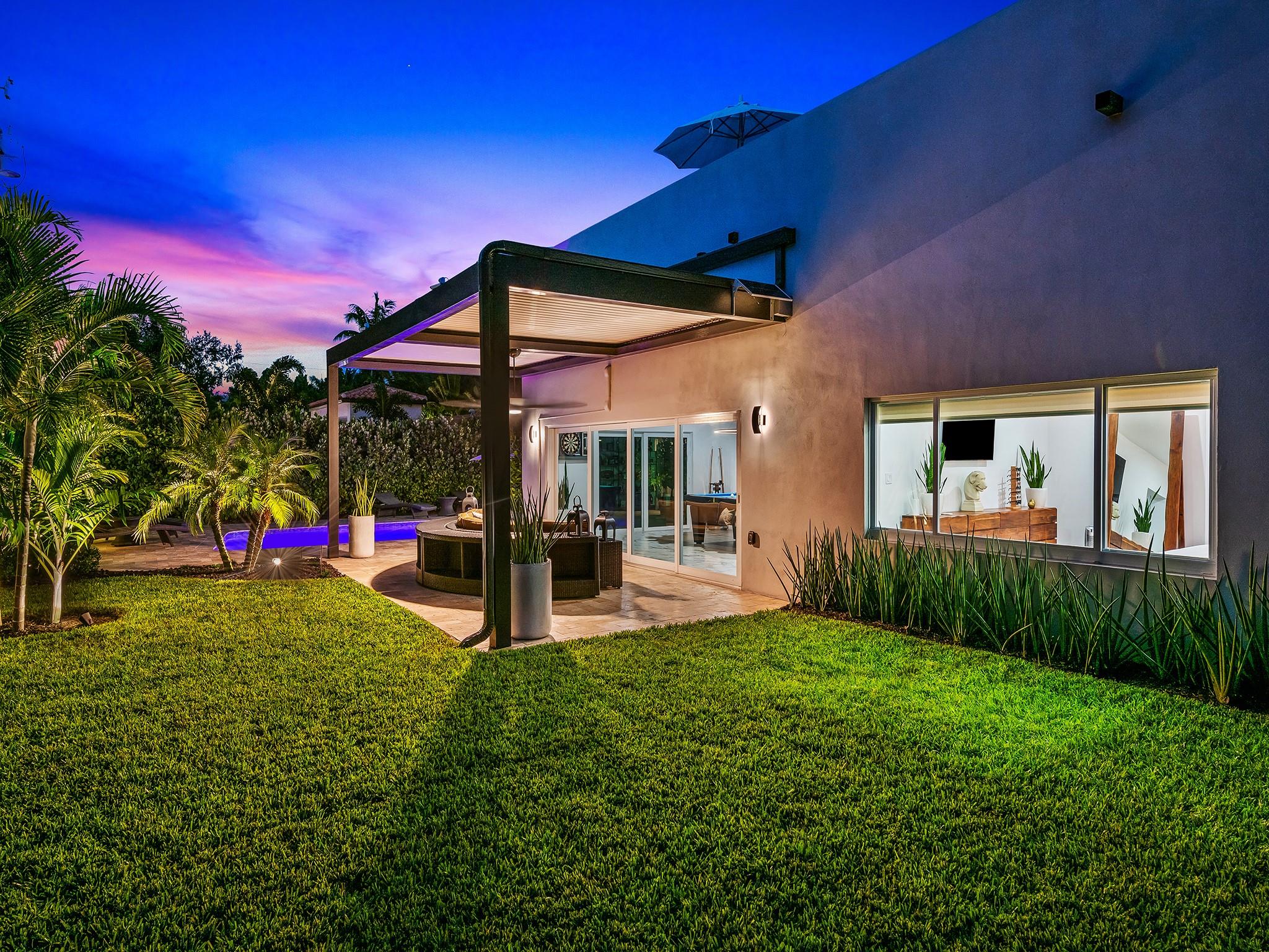 Magnificently reimagined, this home combines modern sophistication with timeless luxury, with the feel of brand-new construction. Sun-drenched interiors flow through an open-concept design, glass stacking doors dissolve the boundary between indoor and outdoor living. Entertain beneath the covered terrace with its louvered electric ceiling, swim in the sparkling saltwater pool—heated or chilled for year-round enjoyment—or retreat to the rooftop terrace for panoramic views of waterfront yachts. The chef’s kitchen is beautifully appointed with top-tier appliances while the serene primary suite offers dual custom closets and tranquil bath. Thoughtful enhancements, including a mosquito misting system, water filtration, and solar panels, elevate everyday living with effortless elegance.