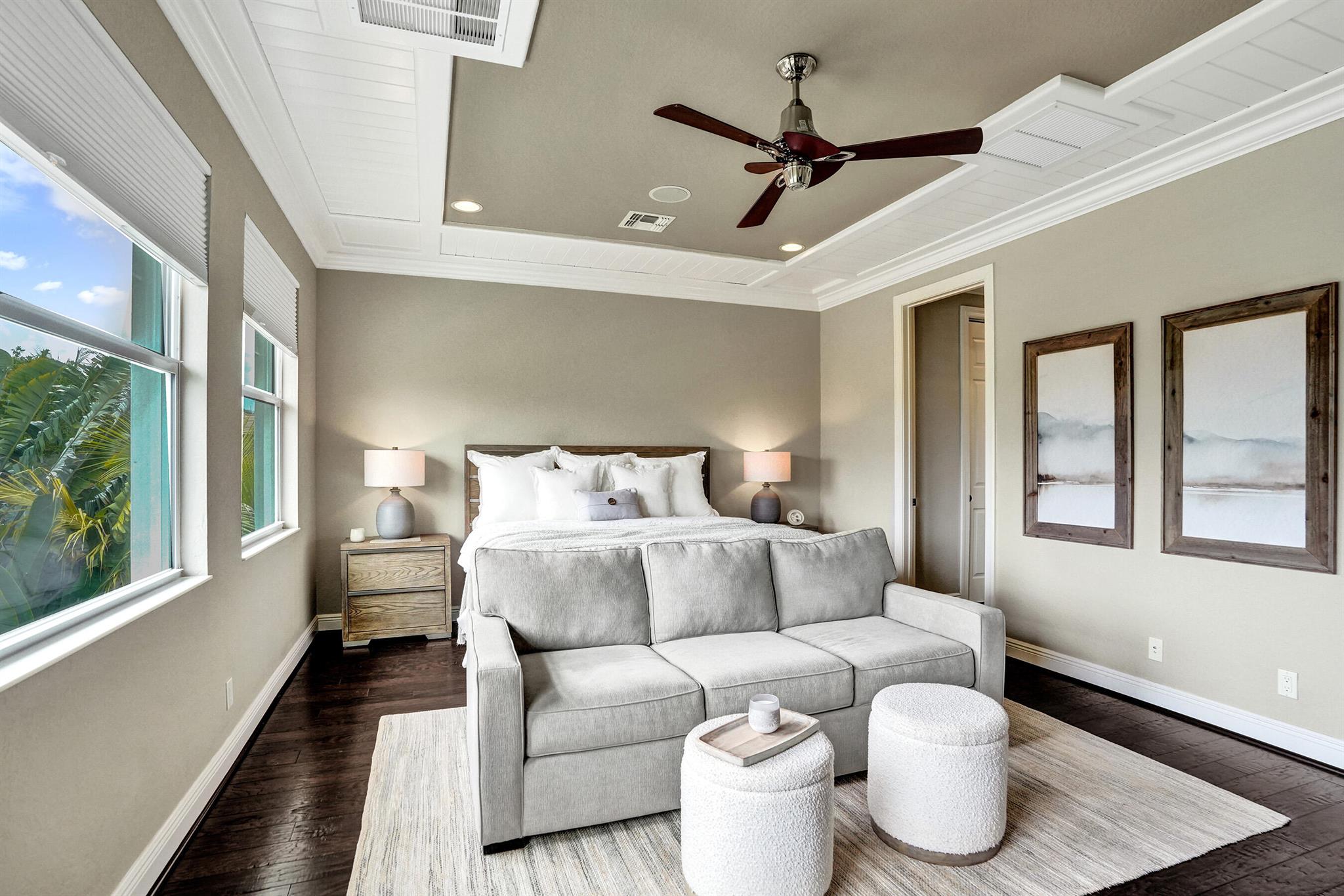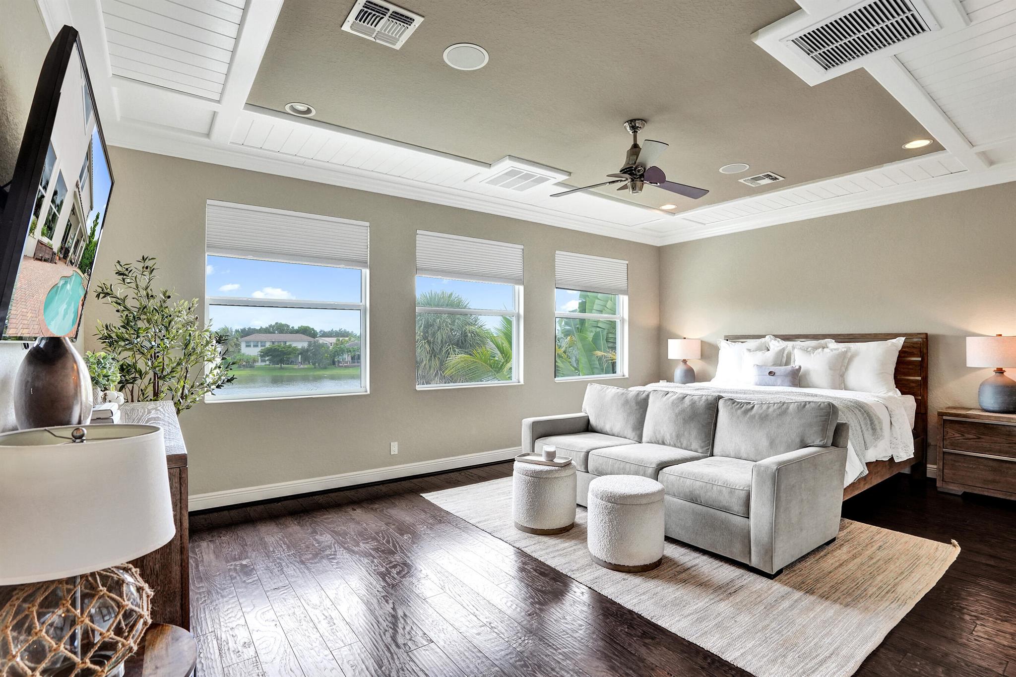 Step into elegance with this 5BR, 4.5BA former model home in the sought-after gated community of Heron Bay, offering 4,124 sq ft of bright, open living. A soaring 22-ft ceiling, wood floors, and lake views from most spaces set the tone. Entertain in the chef's kitchen with a natural gas stove, stainless appliances, and butler's pantry, or enjoy movie nights in the family room with built-in speakers. Outside, relax in the remodeled backyard with a heated saltwater pool/spa. The master retreat features lake views, double shower, and soaking tub. Enjoy peace of mind with impact windows/doors, smart home systems, 2 recently replaced ACs, fresh exterior paint and new garage door openers. With A+ schools and resort-style amenities, this home is move-in ready and ideal for family living.