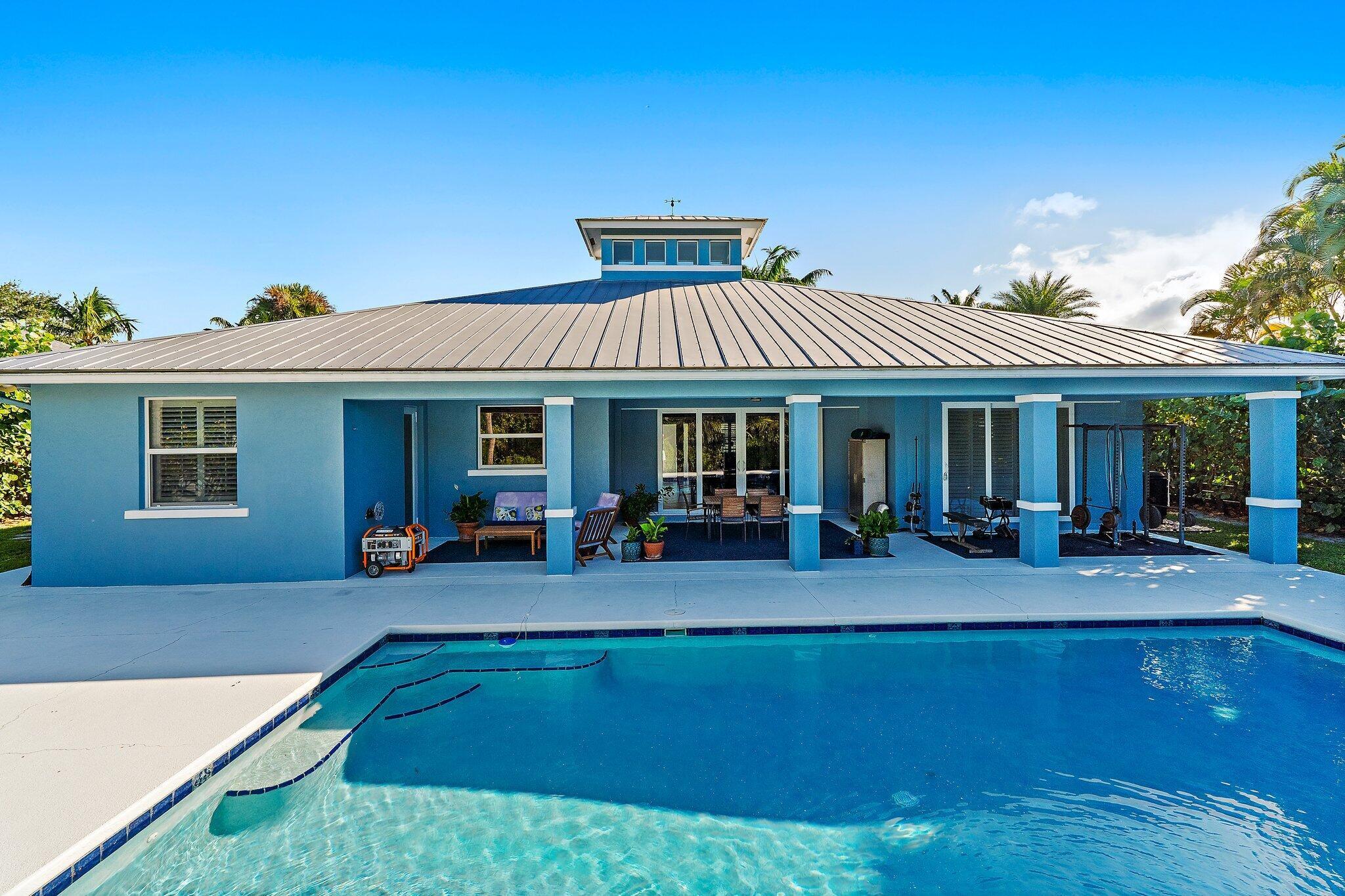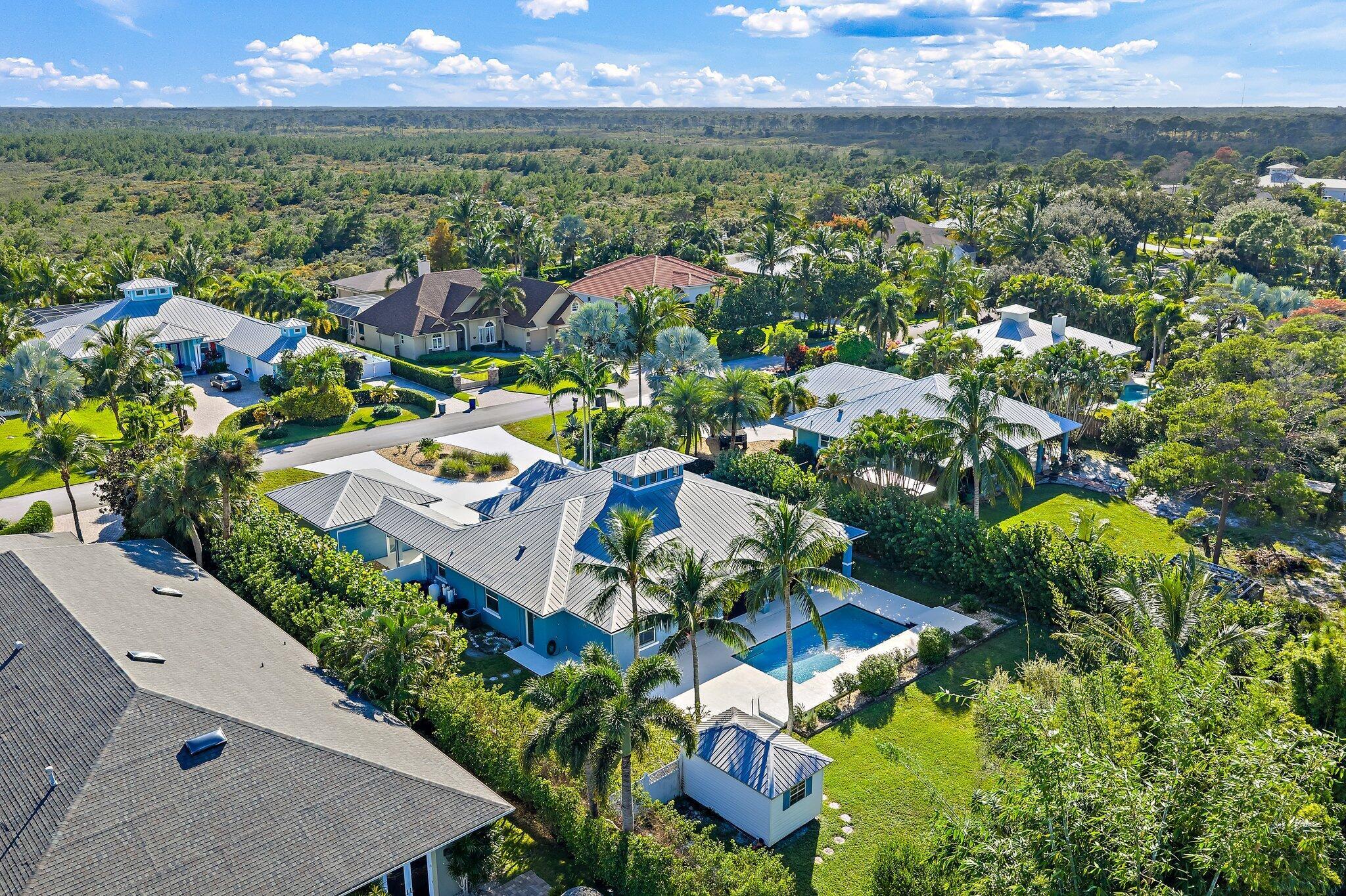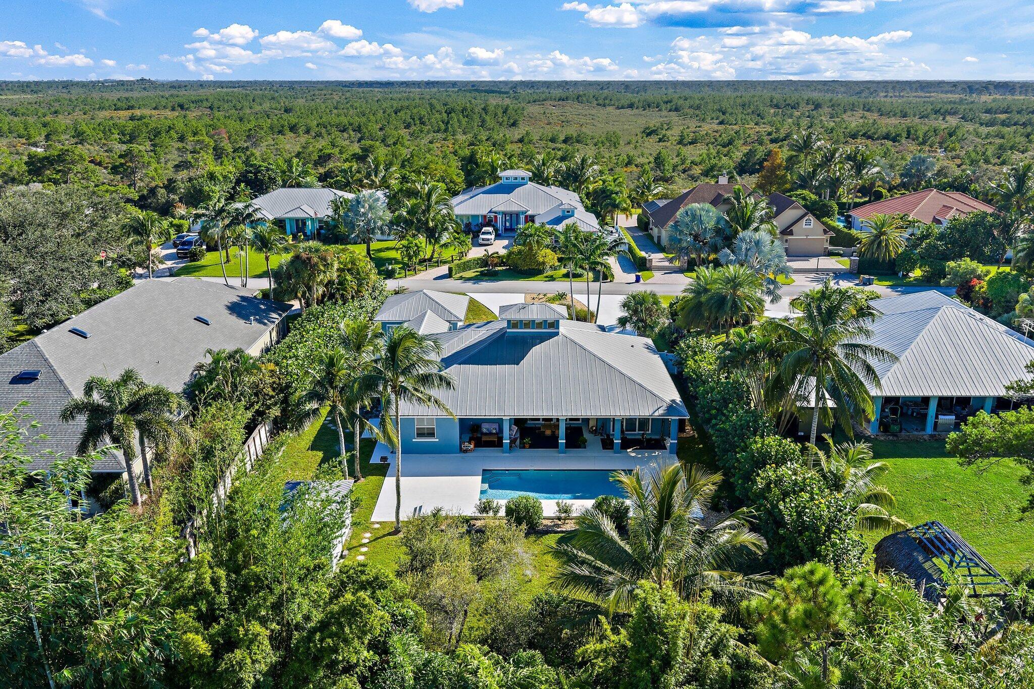 Beautiful updated custom-built pool home in the exclusive Papaya Estates of Hobe Hills. Positioned on no-thru street across from Jonathan Dickinson SP, this 4-bedroom plus den, 3-bathroom home sits on 1/2-acre, non-HOA lot and blends privacy and coastal charm only 1.6 miles from beach, dining, and shopping.Designed for elegant comfort and functionality, this open-concept CBS home has impact windows & doors, split floor plan with private MBR suite, volume ceilings with large cupola, pocketing sliding doors opening to an extra-large covered lanai, perfect for entertaining. Ideal for discerning buyers seeking a unique blend of luxury, space, and proximity to nature. This home is a rare find. Experience Florida living at its best!