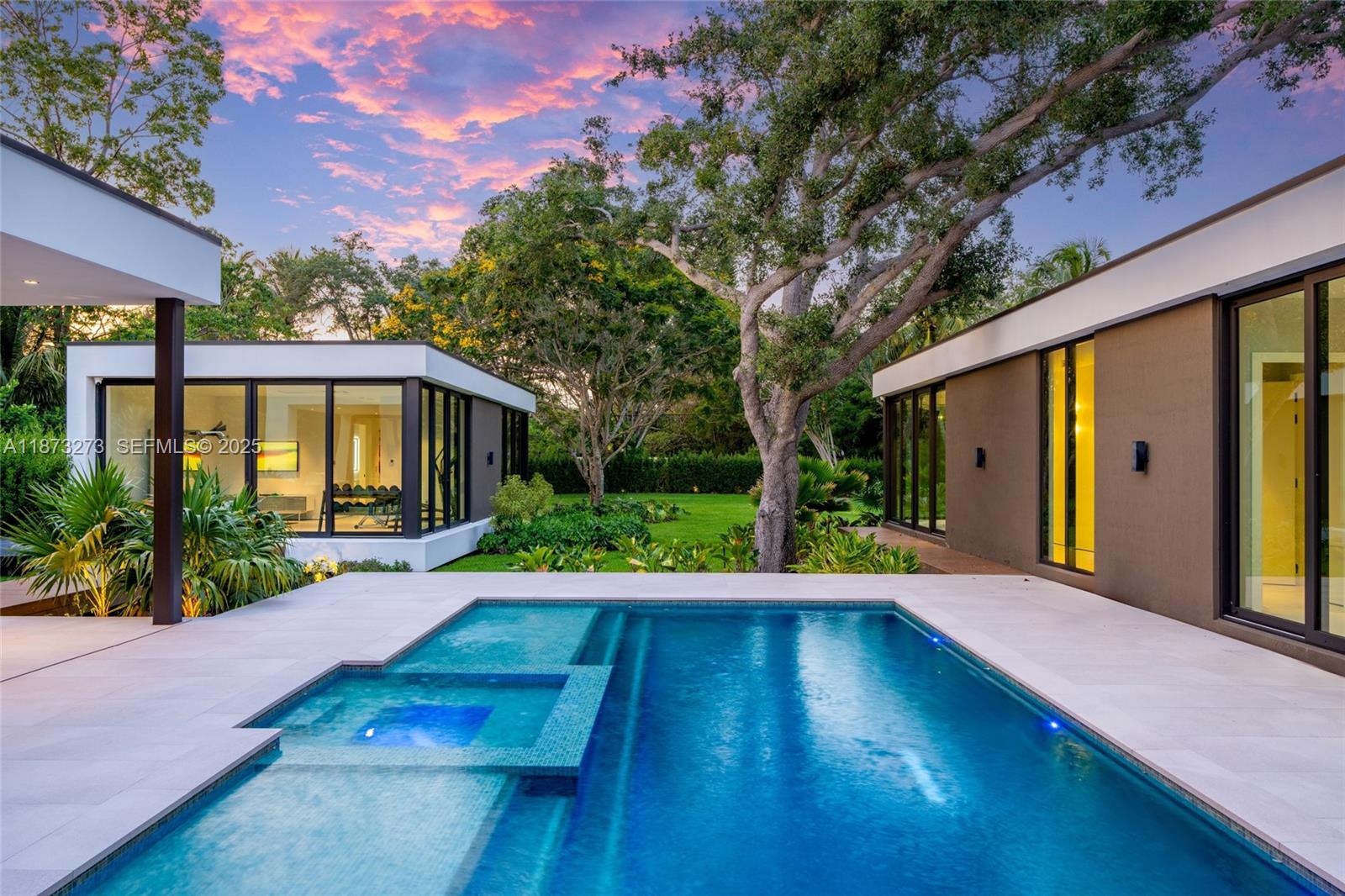 Set on a 39,639 sqft corner lot, this 2023 modern estate offers 5,847 sqft of luxury living. The main home features 6 beds, 6.5 baths, plus a detached 1 bed/1 bath suite. Designed for comfort and entertaining, enjoy a heated saltwater pool, hot tub, outdoor kitchen, putting green, and a two-car garage with EV charger. Premium finishes include Miacuccina millwork, 24x48 porcelain floors, soaring ceilings, a chef’s kitchen with Calacata Quartz, high-end appliances, & a large island. Smart features include a Control4 system, blackout shades, and more. Additional highlights: spa-style baths, walk-in pantry, laundry room, and fruit trees. Ideally located near top Pinecrest schools like Gulliver Prep, Palmetto, Beth Am, and more. Move-in ready in one of Pinecrest’s most desirable neighborhoods!