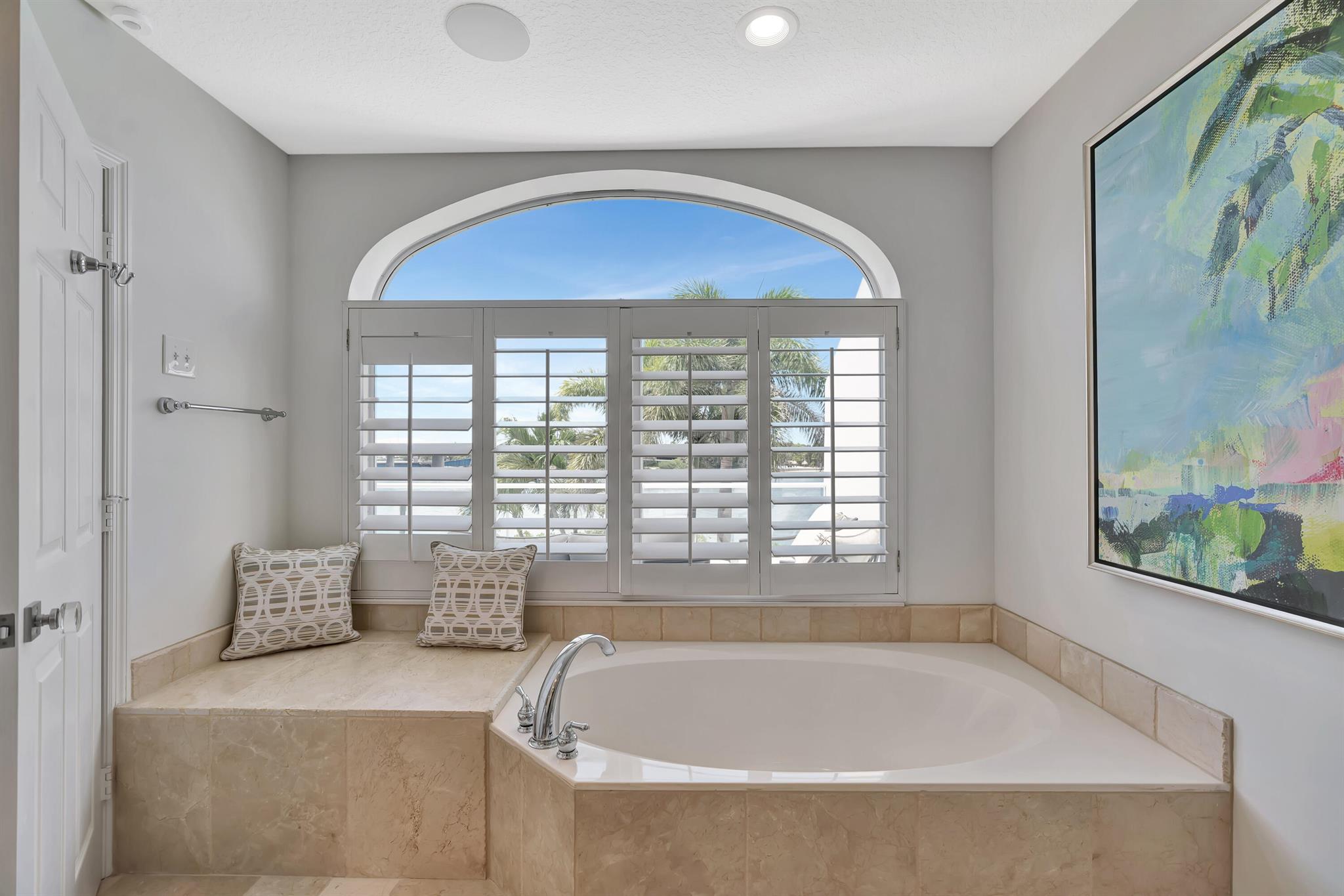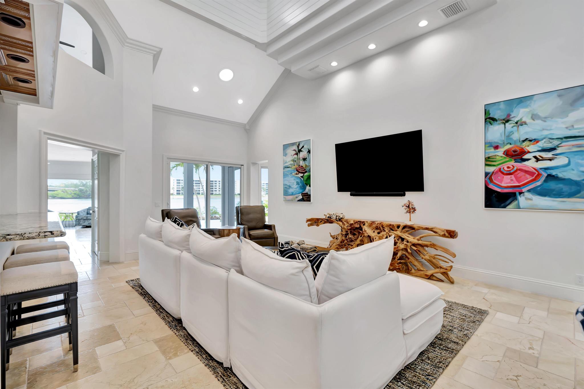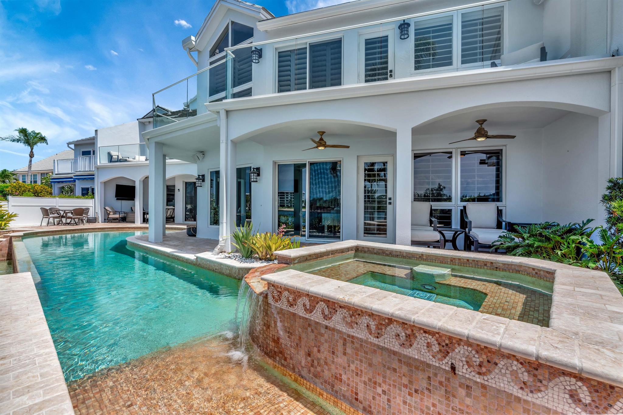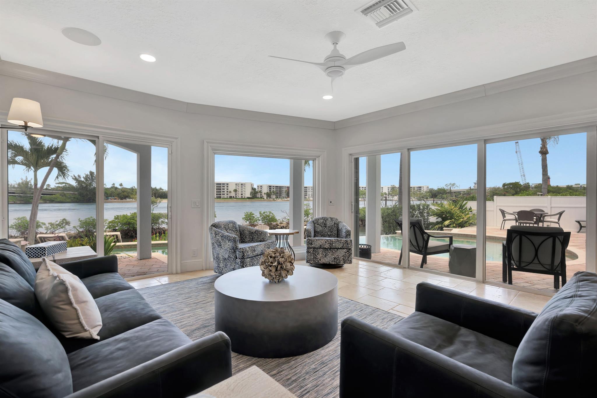 Located along 90 ft of pristine Intracoastal Waterway, this extraordinary 5,200+ sq ft residence is a one-of-a-kind gem in Jupiter, Florida. Masterfully combining two units into a single home, it showcases breathtaking views of the tropical blue waters and the iconic Jupiter Lighthouse, offering a serene escape. Located within a secure, manned gated community and just a short walk from the renowned 1000 North restaurant and the lively charm of Love Street. The home features six comfortable bedrooms, including two spacious master suites, four full bathrooms, and two half bathrooms. Two full kitchens, each with wine storage and a bar, make hosting gatherings effortless. Three distinct sitting areas, all with stunning water views.
