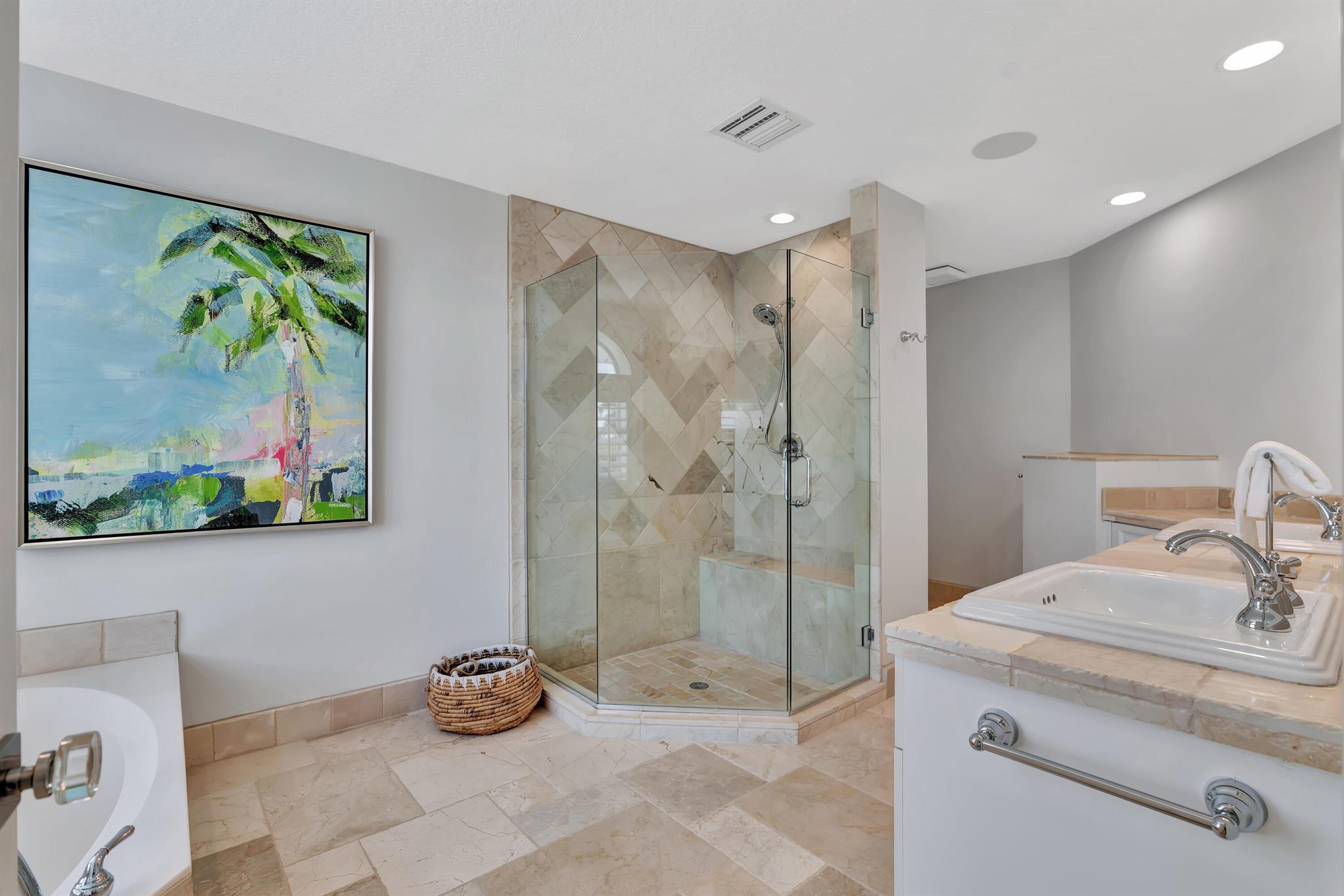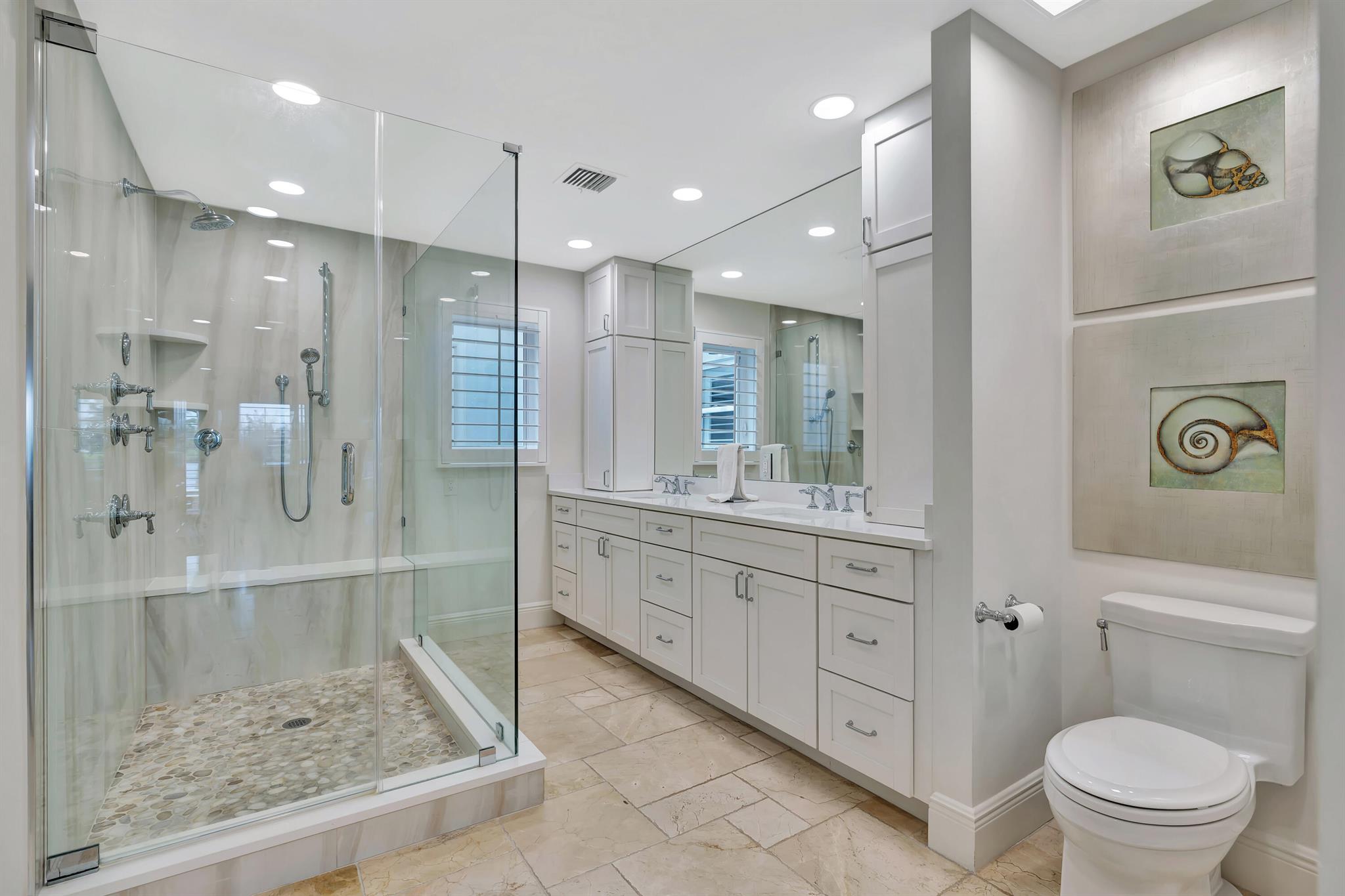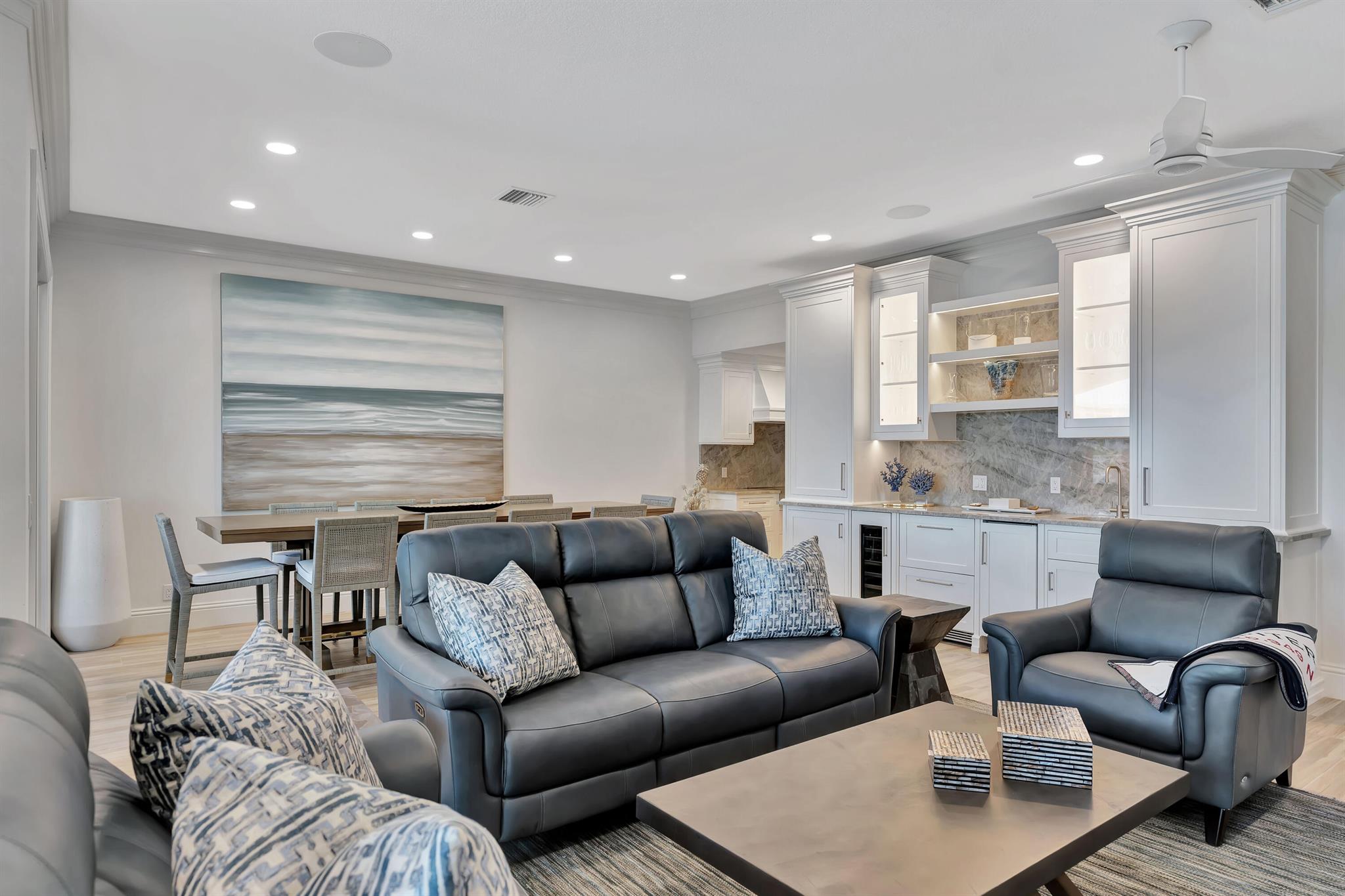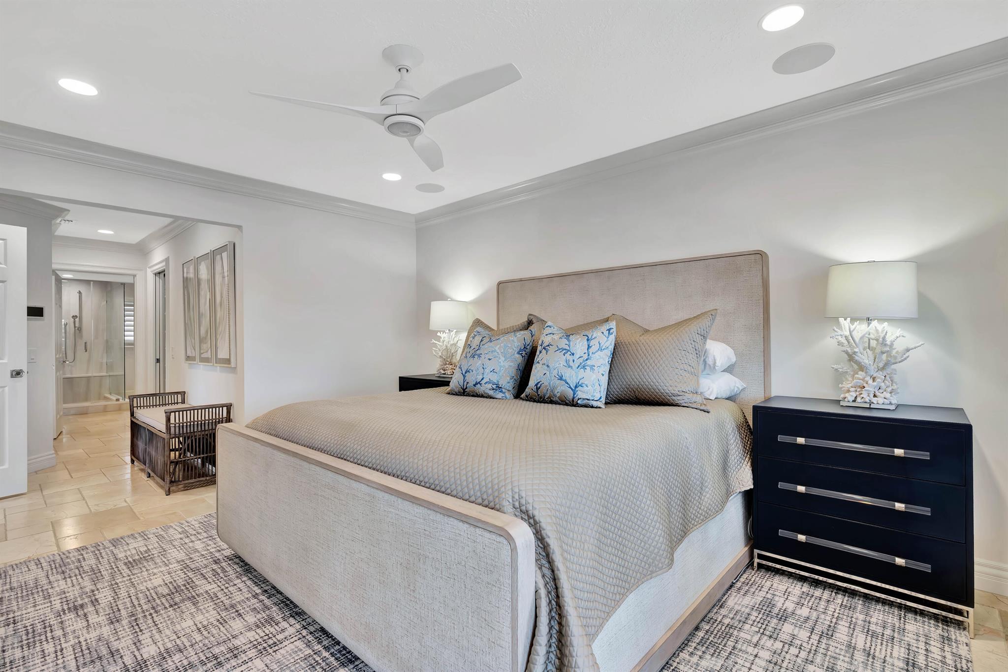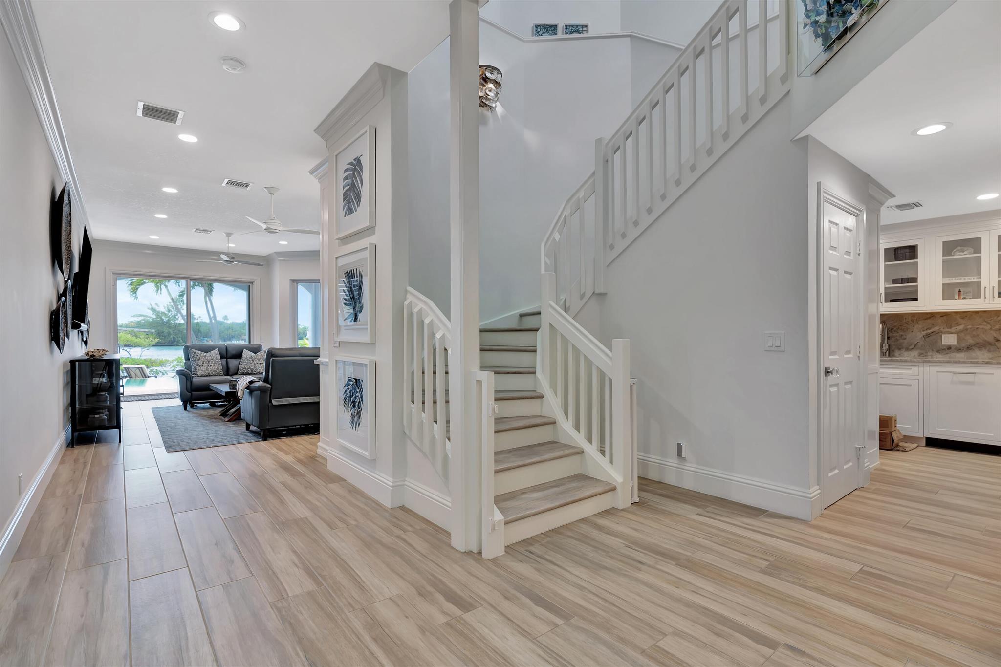 Located along 90 ft of pristine Intracoastal Waterway, this extraordinary 5,200+ sq ft residence is a one-of-a-kind gem in Jupiter, Florida. Masterfully combining two units into a single home, it showcases breathtaking views of the tropical blue waters and the iconic Jupiter Lighthouse, offering a serene escape. Located within a secure, manned gated community and just a short walk from the renowned 1000 North restaurant and the lively charm of Love Street. The home features six comfortable bedrooms, including two spacious master suites, four full bathrooms, and two half bathrooms. Two full kitchens, each with wine storage and a bar, make hosting gatherings effortless. Three distinct sitting areas, all with stunning water views.