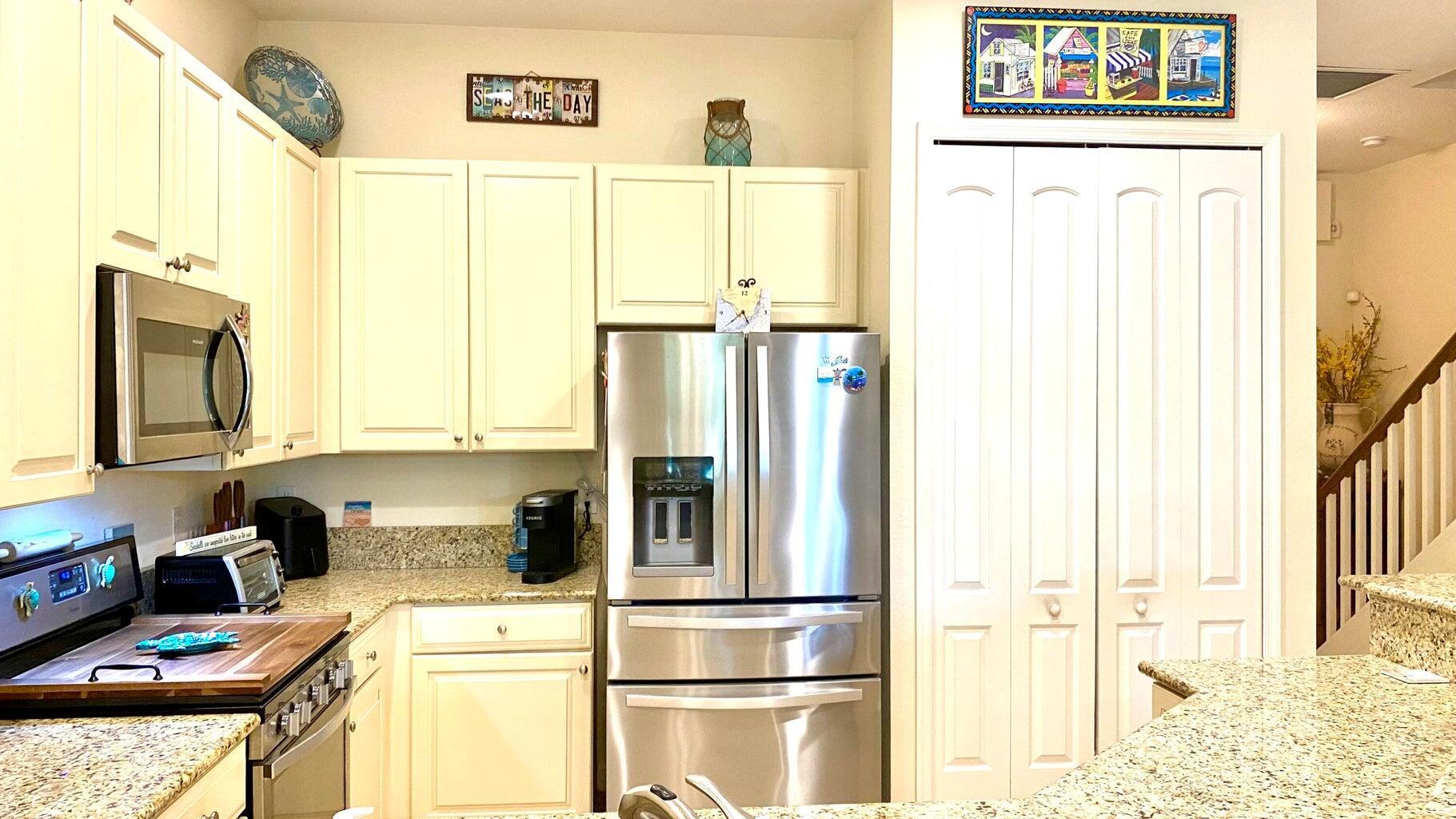 Turn-Key Townhome Living in St. Andrews! Experience the best of Port Saint Lucie with this sophisticated and private townhome in the well-established community of St. Andrews. High ceilings and a flowing, open-concept layout create an airy and expansive atmosphere. The chef's kitchen, a dream for entertaining, features premium stainless steel appliances, a gas range, and a large granite-topped peninsula that opens to the main living and dining area. A screened front porch and a private, covered back patio expand your living space outdoors.The second level offers quiet comfort with beautiful wood flooring throughout. The bright and spacious guest bedroom includes an attached en-suite bath, providing a private haven. The luxurious master suite serves as your ultimate sanctuary, featuring