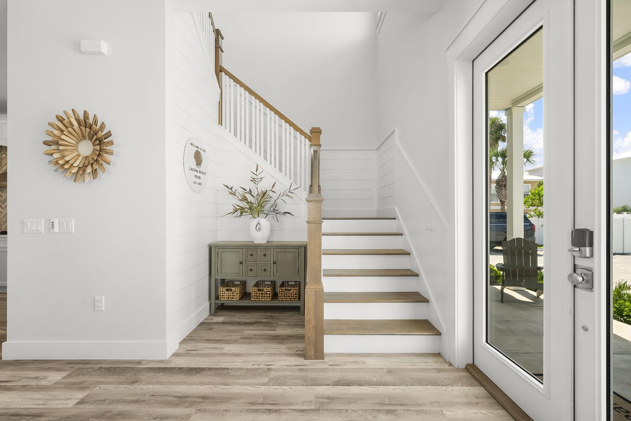 Welcome to your dream beach retreat! This stunning 5BR/4.5BA home offers 2,800 SF of luxury living just steps from the sugar-white sands of Panama City Beach. Bright and airy with soaring ceilings and open-concept design, it features a chef's kitchen, refreshed coastal decor, and new artwork throughout. The living room and downstairs primary include brand-new area rugs for added warmth. Step outside to a private backyard oasis with a sparkling heated pool, wall-mounted TV, and app-controlled string lighting. A brand-new $10K patio set with loungers and balcony bistro table (lifetime warranty) elevates the outdoor living experience. Enjoy breathtaking Gulf views from the second-floor balcony.