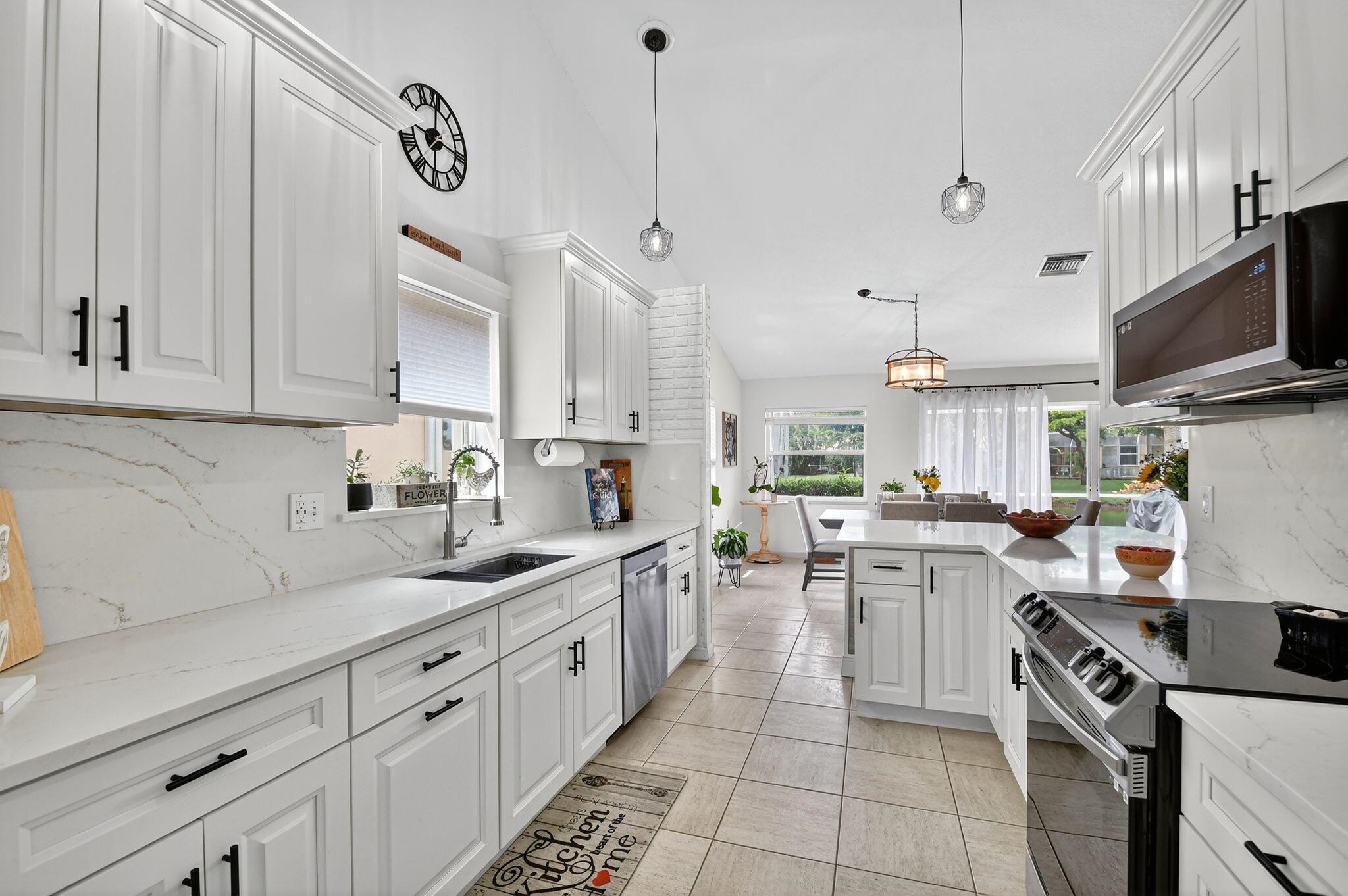Looking for your Florida dream home? This stunning lakefront property has been completely updated with warm, inviting finishes and breathtaking views! Kitchen remodeled in 2024 with luxury upgrades including quartz countertops, bathrooms tastefully updated, and a Screened patio with serene lake views to enjoy your morning coffee or a relaxing barbecue at the end of the day. The open floor plan offers a separate Den for retreating to read a good book or enjoying some ''me'' time. A/C 2006, W/H 2024, roof original but in great condition. Community offers Resort-style community pool, fitness center & tennis courts. Low HOA includes cable, ADT, landscaping & more! Close to shopping, dining, and everything you need. Don't just dream it--live the Florida lifestyle!