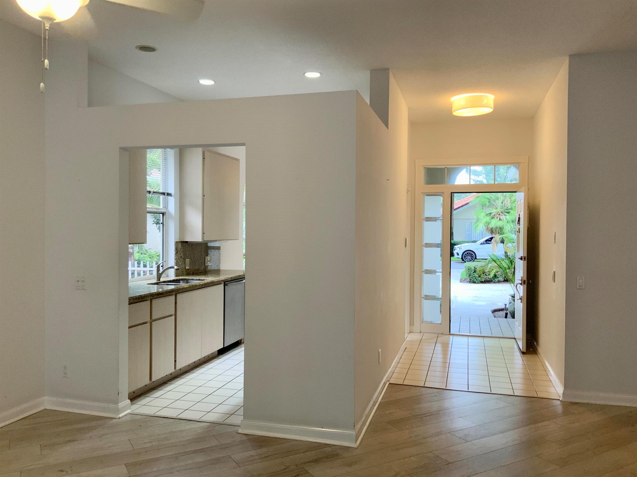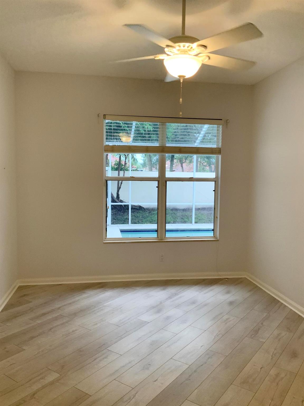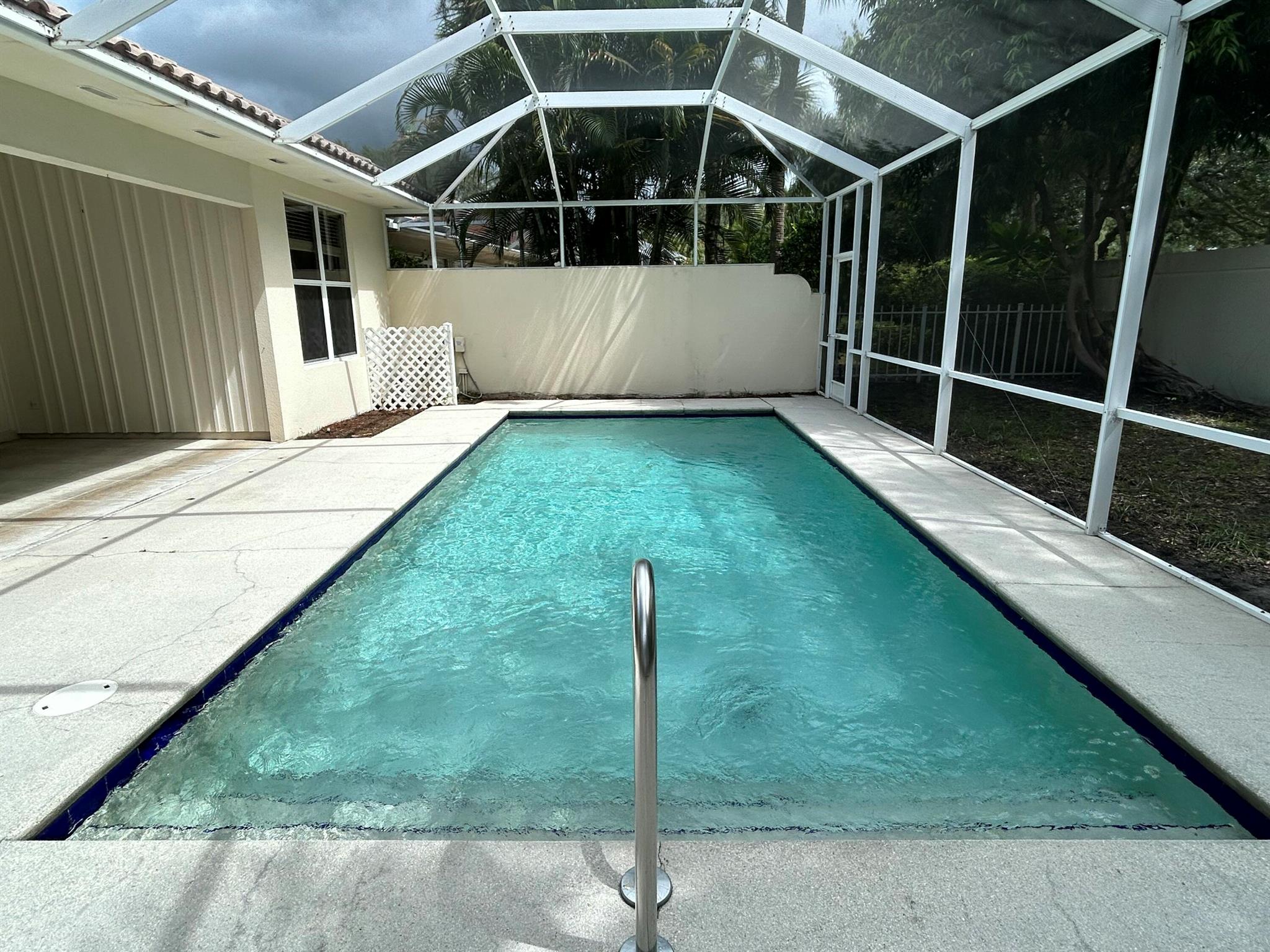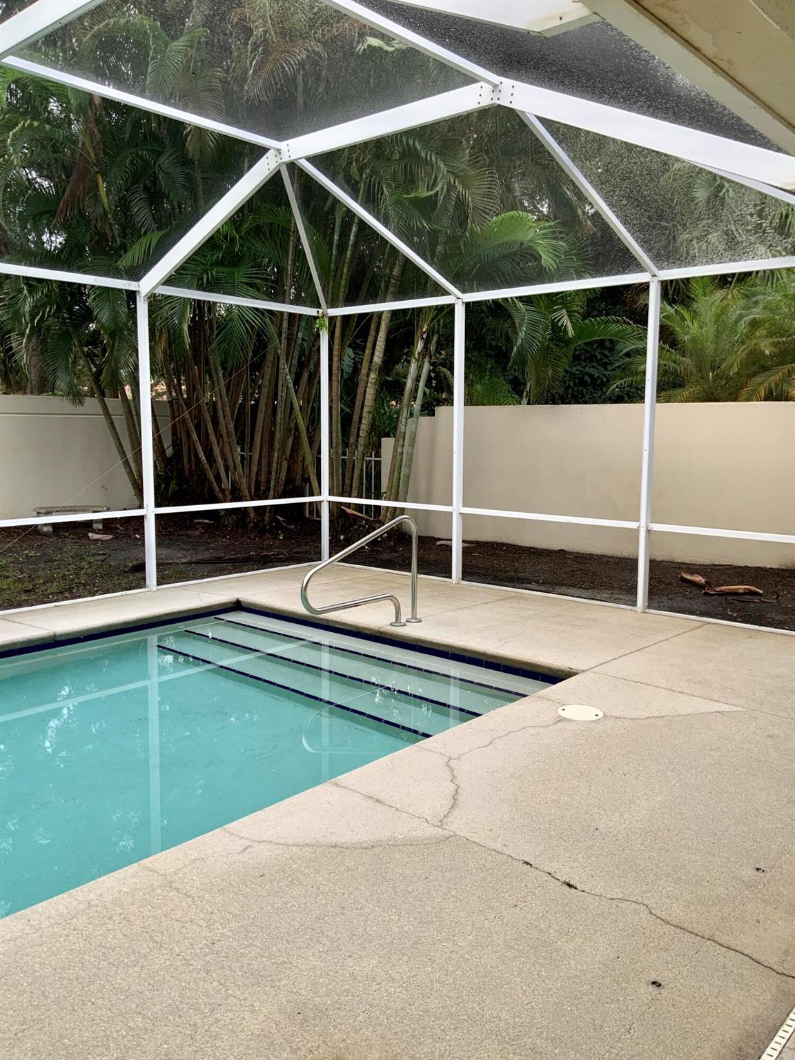 Oaks East is a guard gated community just south of the Gardens Mall. This property is a 1 story 3 Bedroom 2 bath 2 car garage . Granite kitchen counters; upgraded flooring; vaulted ceilings, wall of telescoping glass doors open to covered lanai and screened in resurfaced pool. Private quiet interior location.
