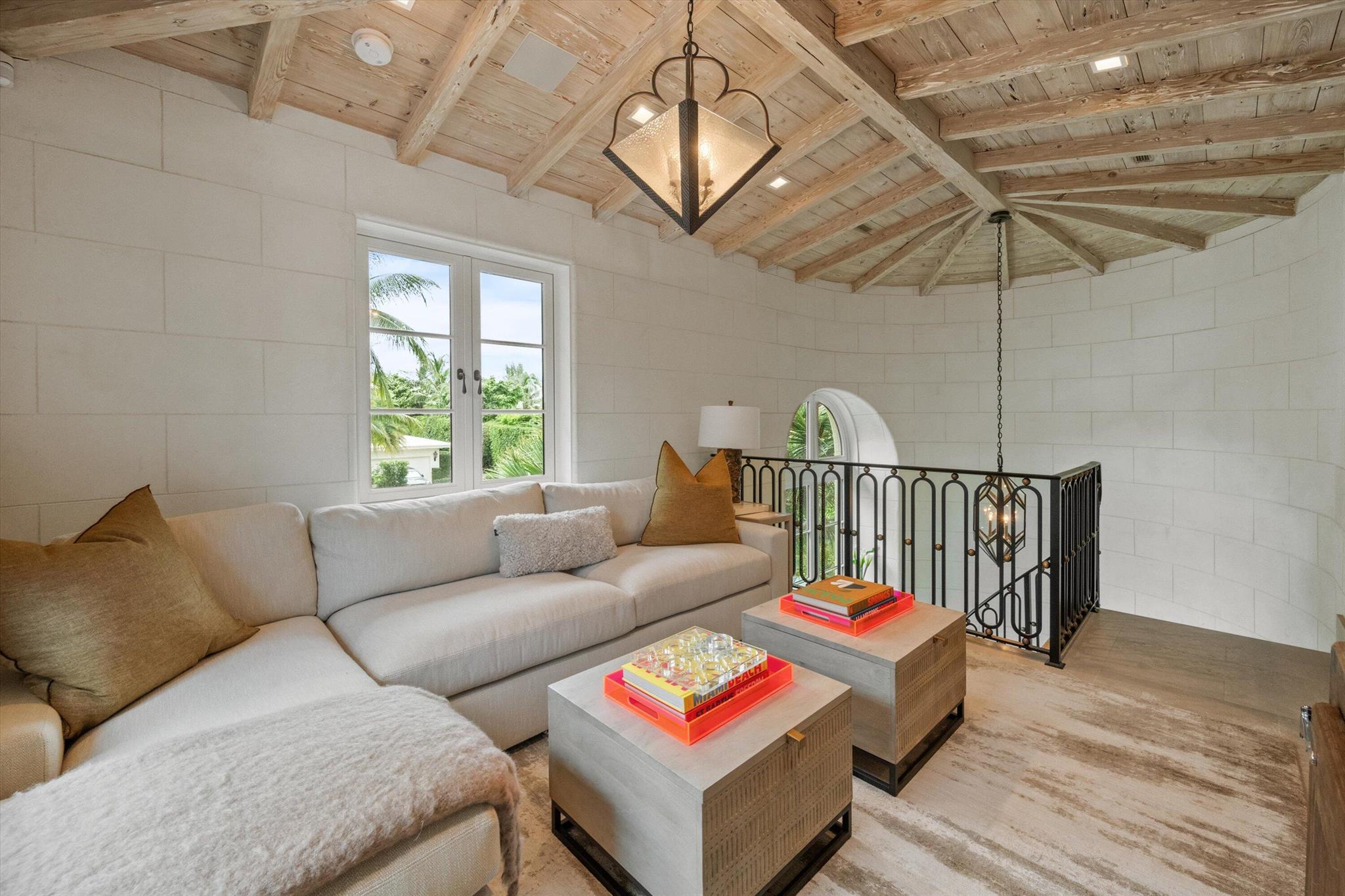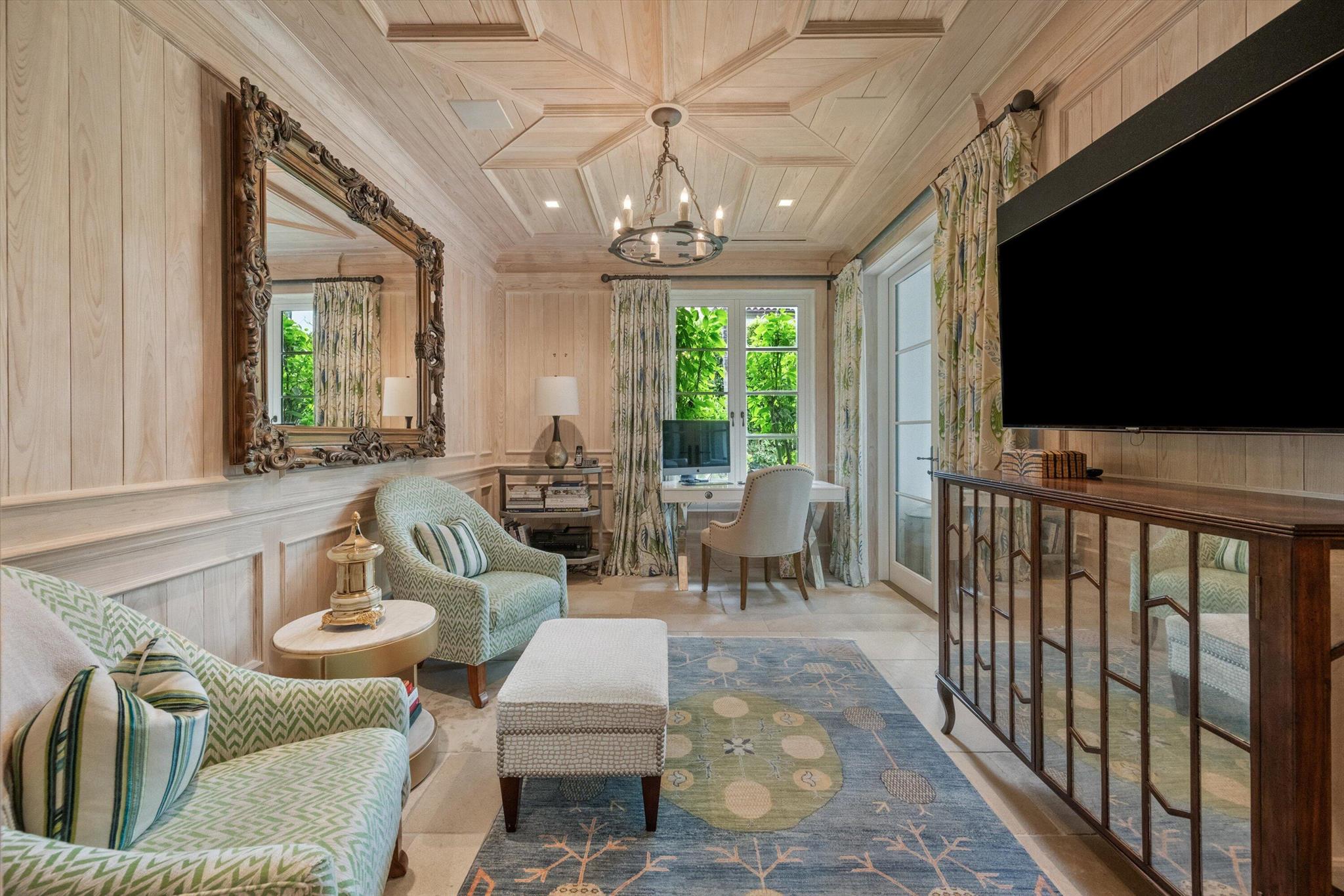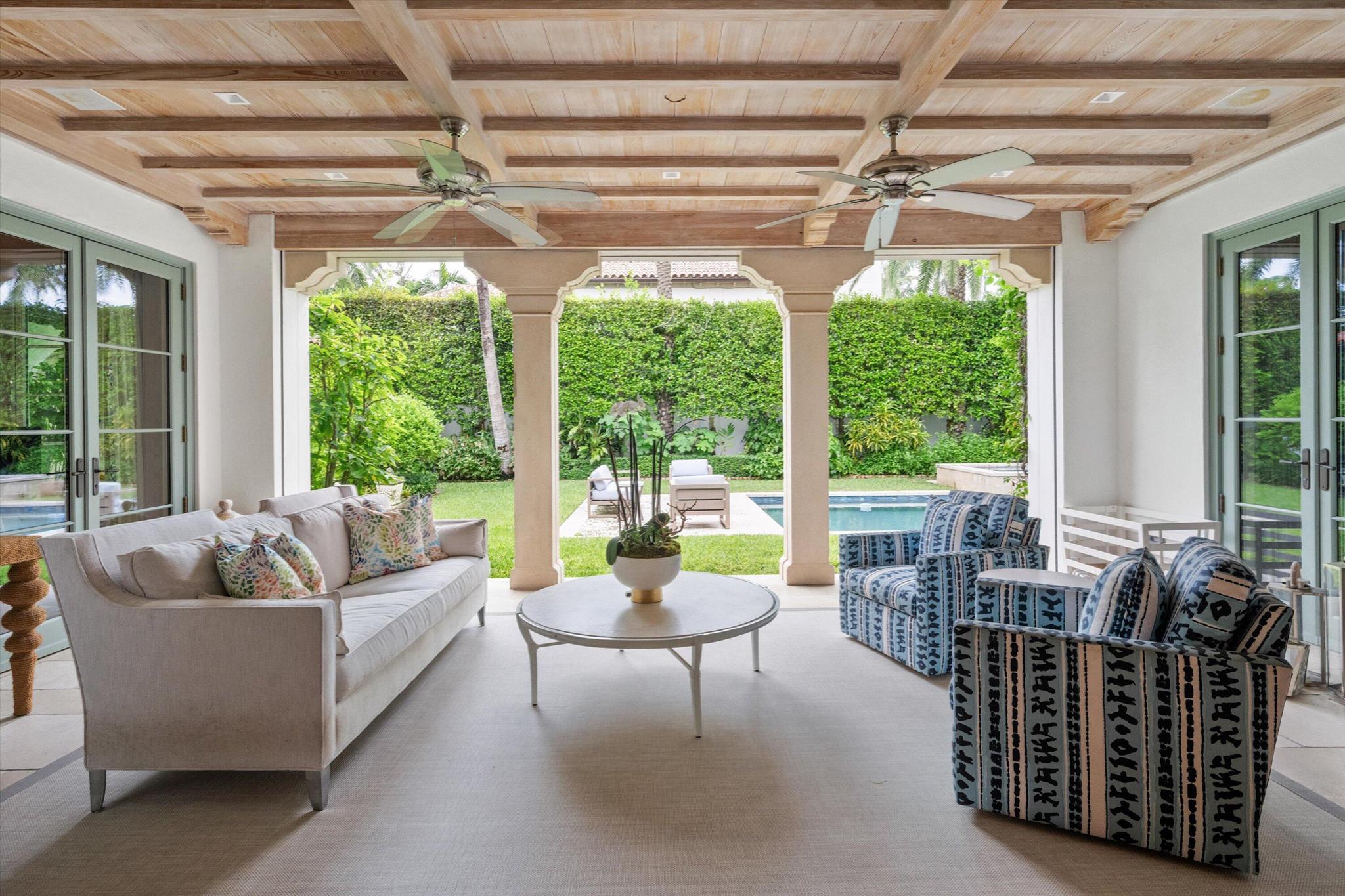 Stunning ocean block, custom 4-bedroom, 4.2-bath home spans 6,030 sq. ft. and showcases timeless elegance with modern luxury. Designed by Thomas Kirchhoff, the residence features a first-floor master suite, study, and a chef's kitchen with a center island opening to a spacious family room and screened loggia overlooking a lush yard, pool/spa, and cabana bath. Upstairs offers three en-suite bedrooms, a sitting room, a wet bar, laundry, and a large terrace--perfect for guests. High end finishes include extensive pecky cypress woodwork, custom millwork, 10-foot ceilings, a wine wall with a 450-bottle fridge, two gas fireplaces, multiple fountains, and a two-car garage. Deeded beach access and a full house generator complete this exceptional offering.