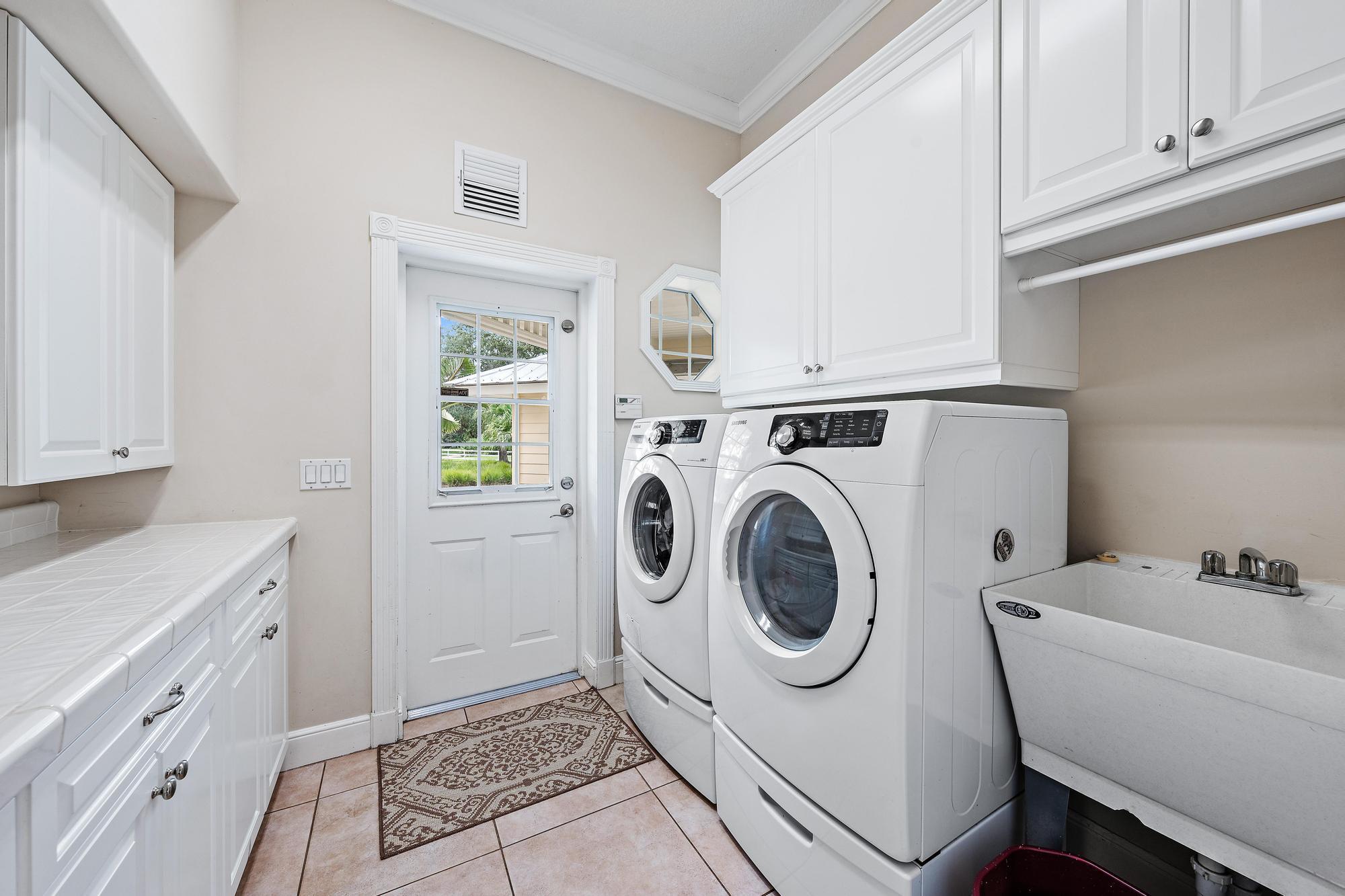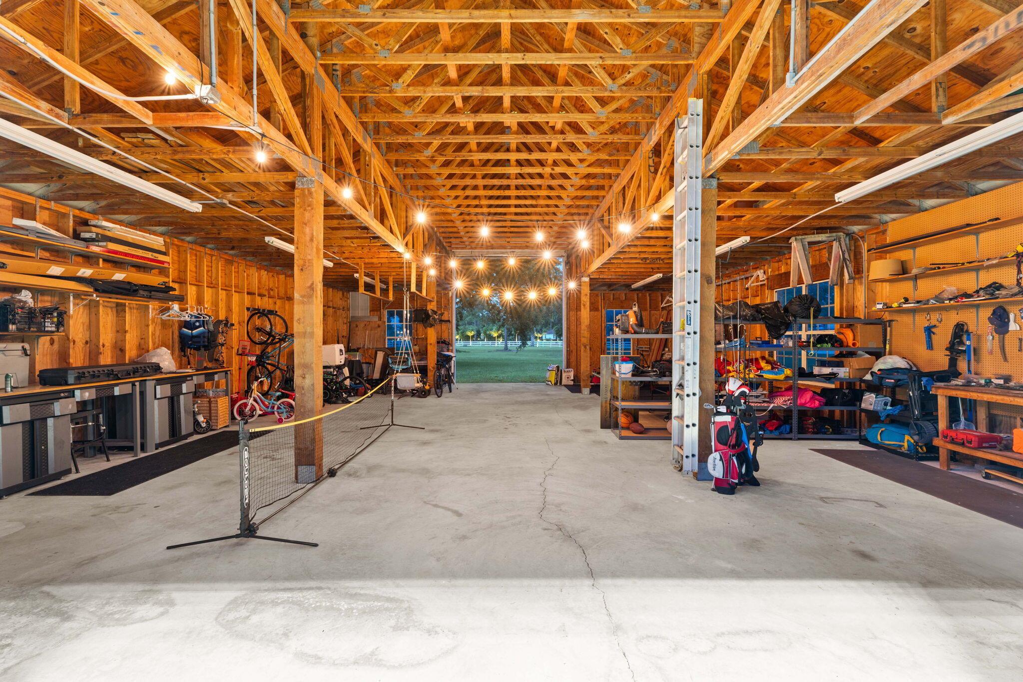 Over 4 acres of dry, fully usable and fenced land in the gated community of Stuart West. This Key West-style estate features a 4-bed, 3-bath pool home with an attached garage, plus a detached 36x46 hurricane-rated RV barn with 12x14 doors and 100-amp service. Inside, enjoy a cozy fireplace, custom finishes, and a wraparound porch. Outside, a beautifully redone pool and over an acre of irrigated landscaping surrounded by mature oaks and vibrant Poincianas. A 400-ft concrete driveway leads to the back acreage, ideal for horses, RVs, or boats. Fully fenced with electric gate, whole-home generator, and no wetlands. A rare mix of privacy, charm, and functionality in one of Martin County's premier acreage communities