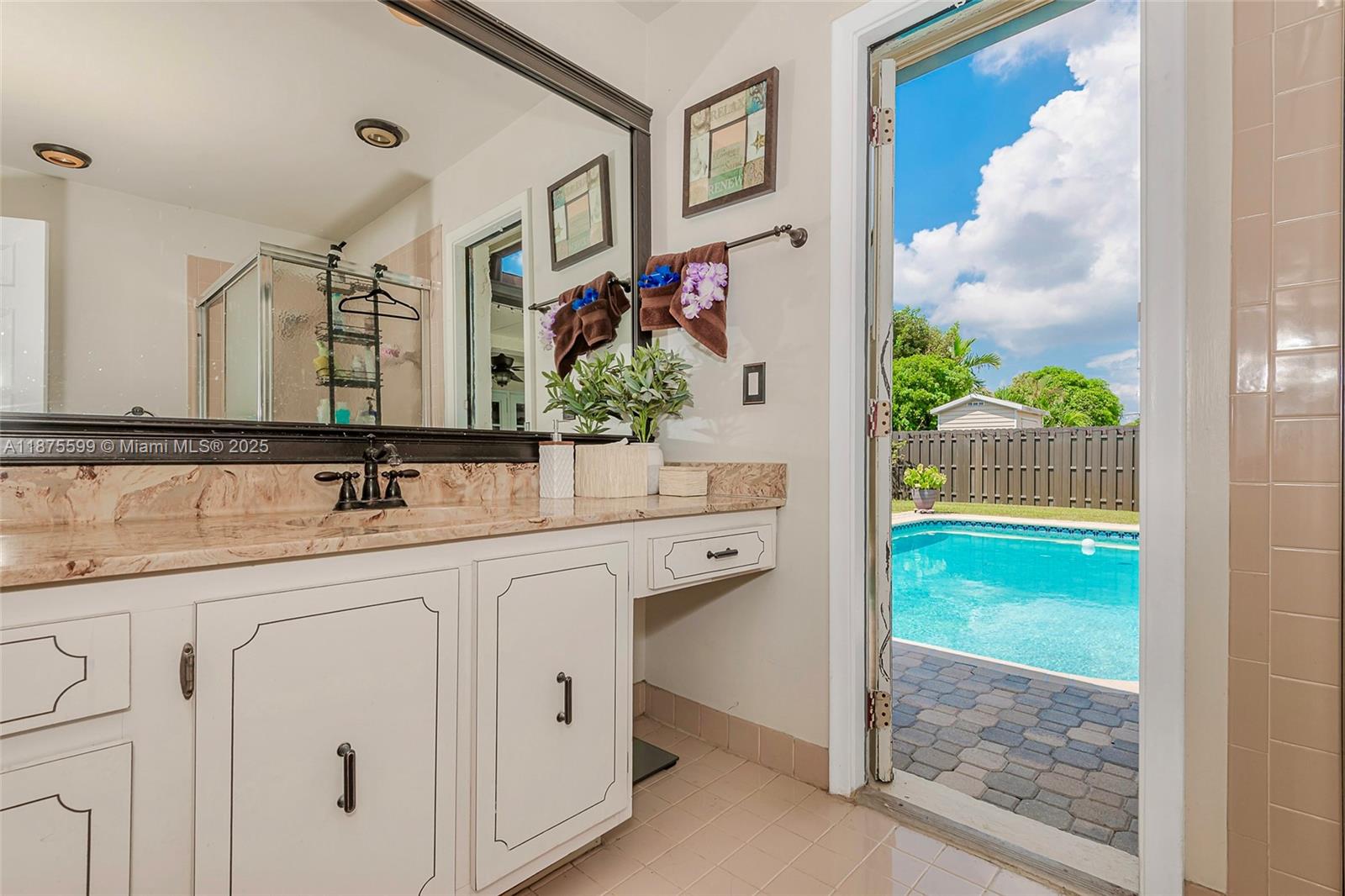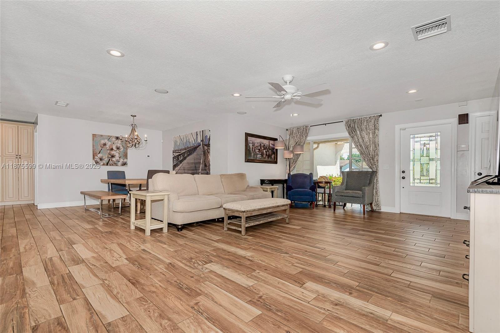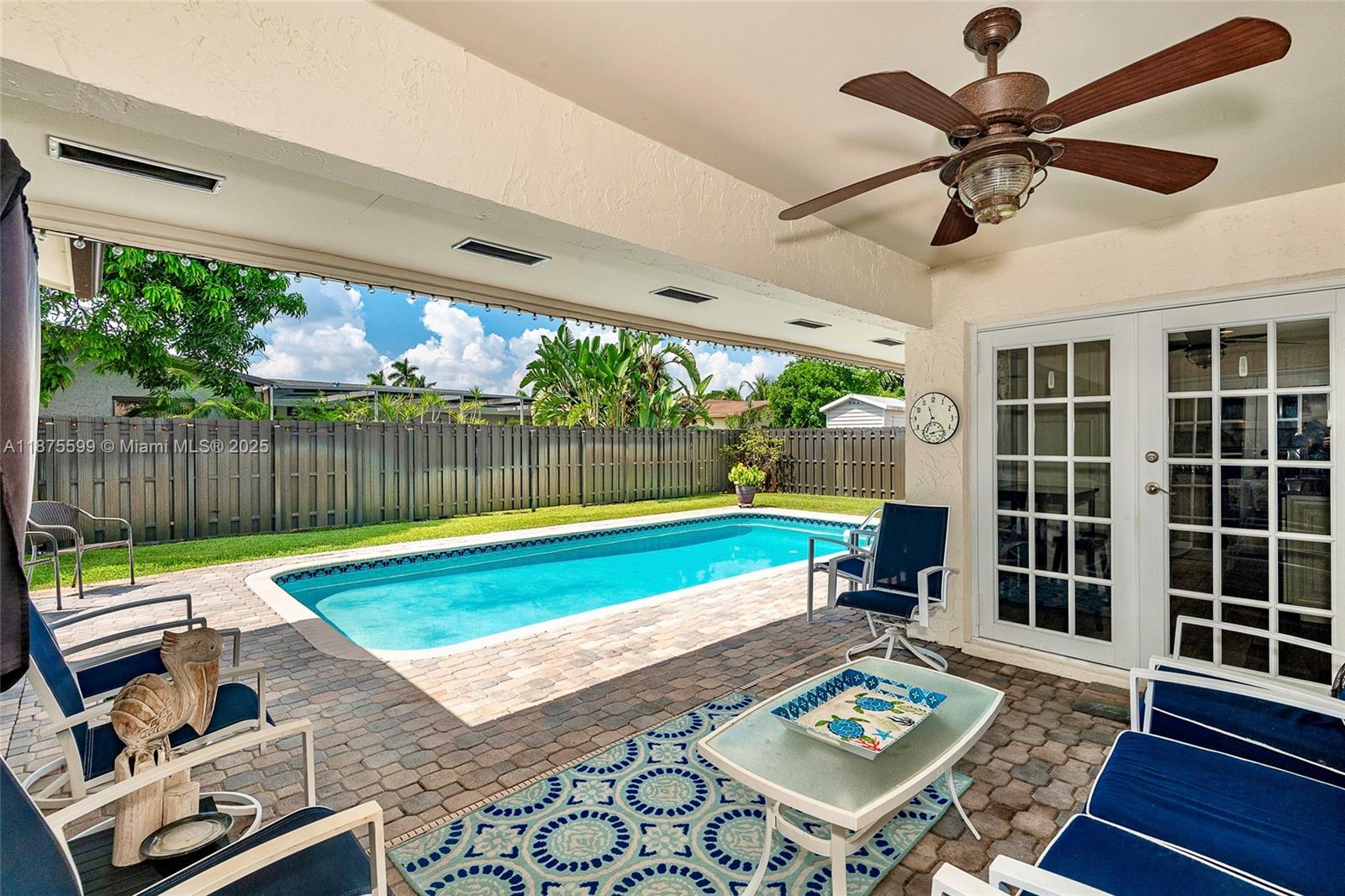 This fully remodeled 3-bedroom, 2-bathroom home is ready for a family to make it their forever home. Designed for comfort and entertaining, it’s perfect for hosting family gatherings, barbecues, and holiday celebrations. Step outside to a covered back patio overlooking the pool area — an ideal spot to enjoy your morning coffee or watch the birds. The stamped concrete driveway provides plenty of parking, while ALL IMPACT WINDOWS AND DOORS ensure safety and efficiency. Inside, you’ll find porcelain floors in the living areas and wood-look vinyl in the bedrooms. The home boasts a BRAND NEW ROOF (2025), beautifully remodeled kitchen and bathrooms, a tankless water heater, public sewer.