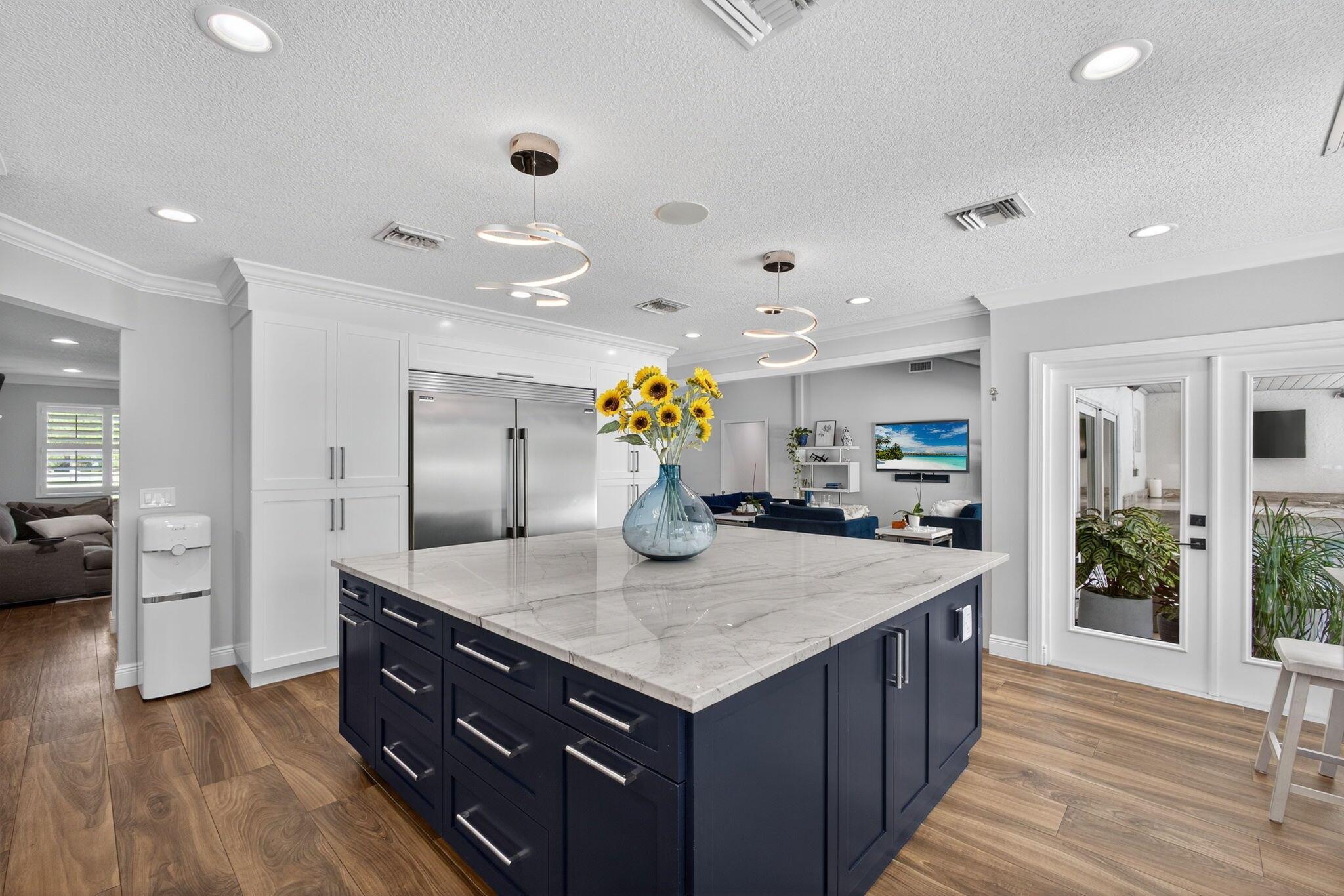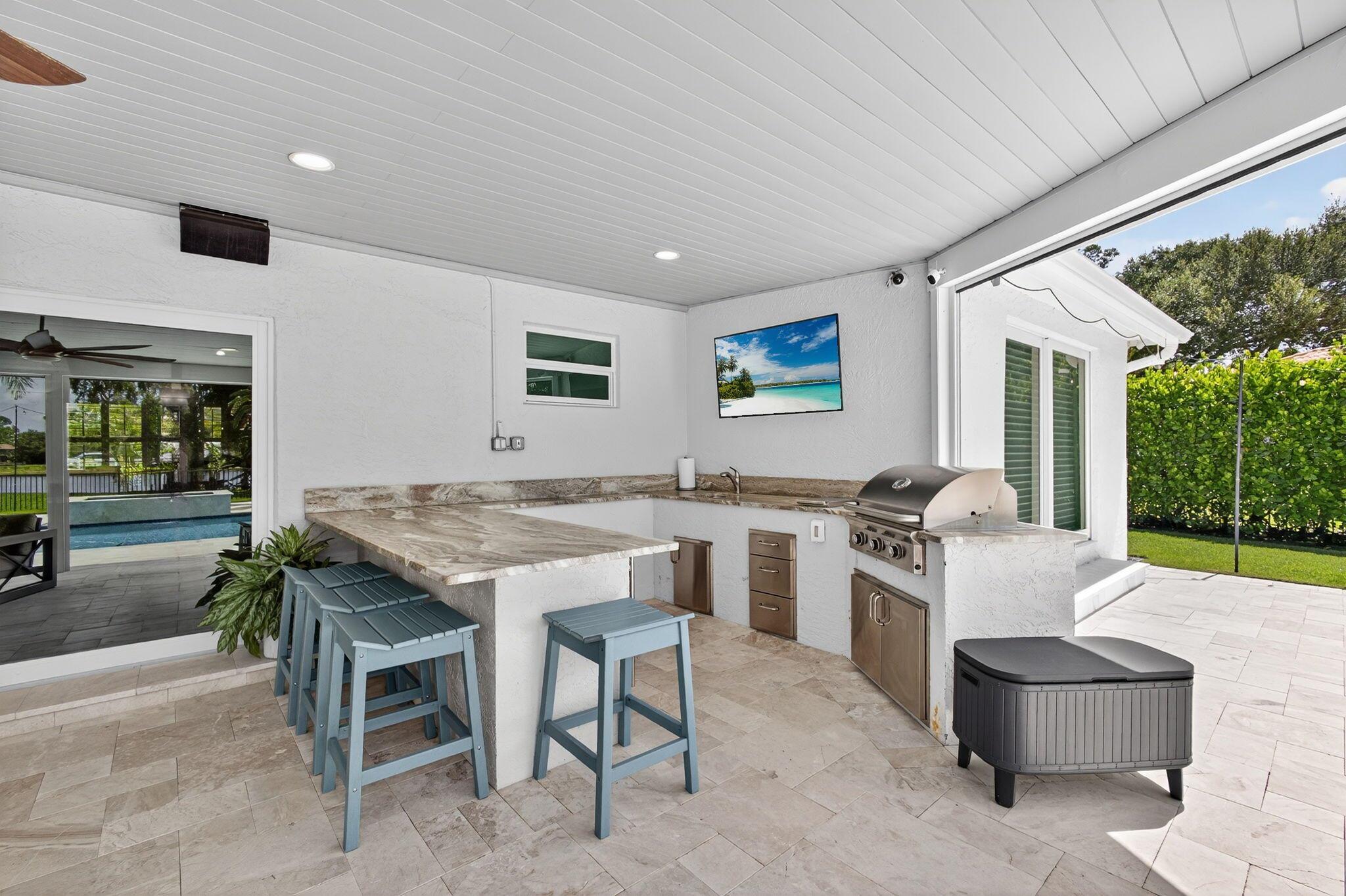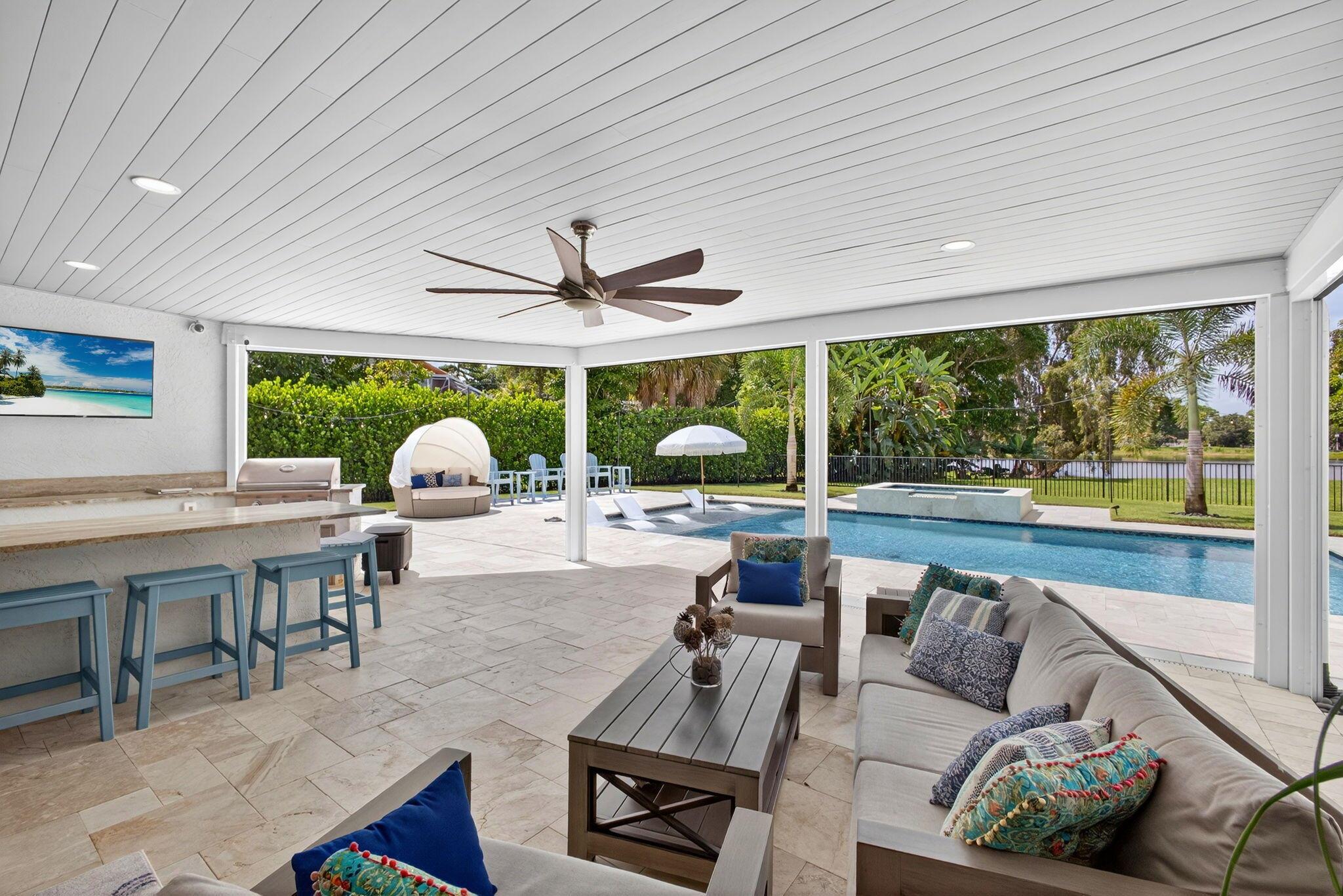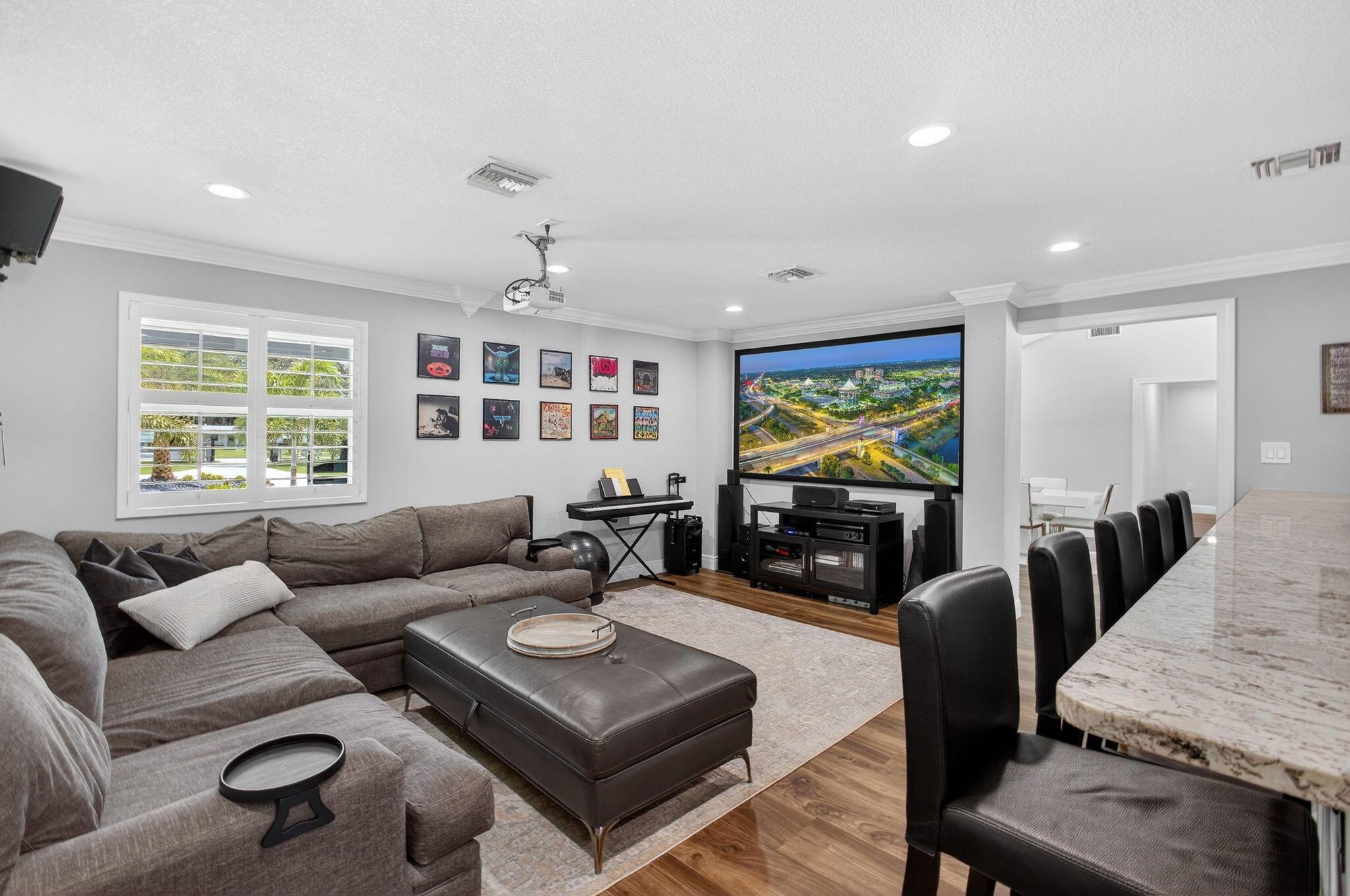 Rare Lakefront Estate on 1.3+ Acres - Fully Remodeled, No HOA!Seize this extraordinary opportunity to own a stunning 5-bedroom + office, lakefront home on a sprawling 1.3+ acre lot, free from HOA restrictions. This meticulously remodeled CBS-constructed residence blends luxury and functionality with top-of-the-line features. Enjoy peace of mind with impact glass windows, a new metal roof, and a secure front entry gate. The gourmet kitchen is a culinary masterpiece, boasting high-end appliances, custom cabinetry and oversized Island.The home's open-concept design showcases vaulted ceilings, creating an airy and grand atmosphere. Relax in the state-of-the-art movie theater w/ full Sports Bar or unwind by the brand-new 17x34 pool and Hot tub, complete with a fully equipped summer kitchen