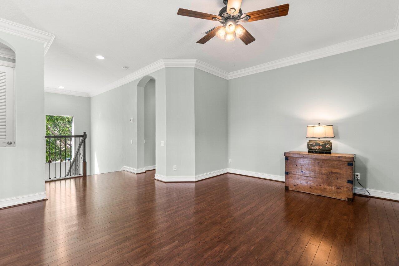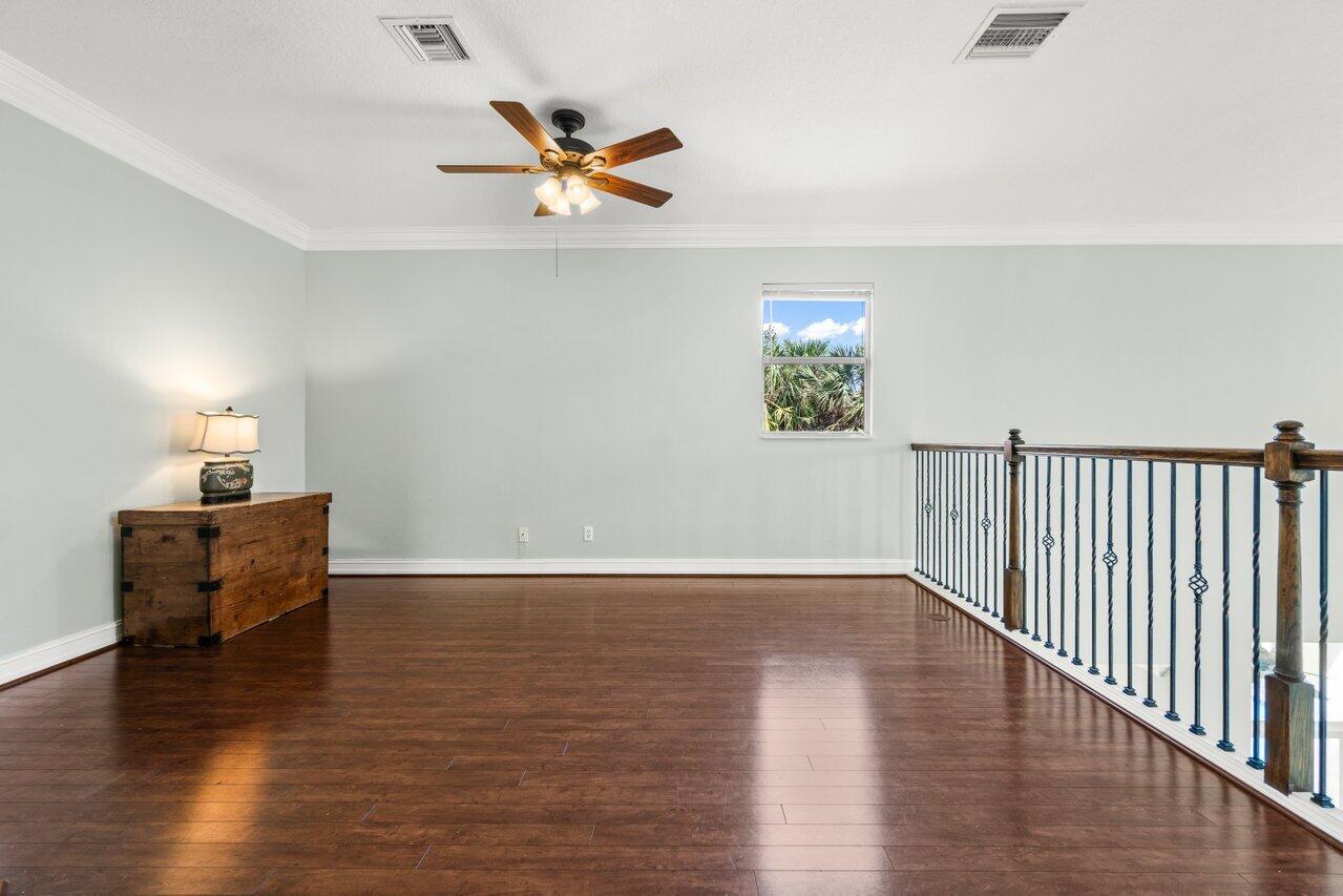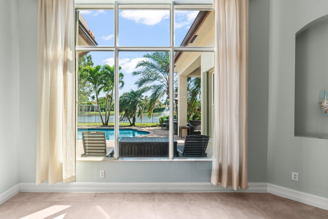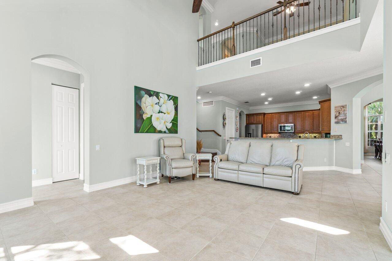 Secluded in a gated community of just 24 homes, this 5 Bedroom 4 Bathroom 3 car garage pool home features a lake view giving way to luxury & privacy in a tranquil setting.Your primary bedroom is on the first floor with en suite,double walk-in closets, & beautiful water views along with a second bedroom & full bath providing flexibility to use as a first floor office or guest suite. You'll immediately notice the 10'-23' tall ceilings highlighted with crown molding & expansive windows providing an abundance of natural light.Your formal dining & living room are off the entry.The open family room and kitchen make this an inviting home for family & prime for entertaining.Kitchen features stainless steel appliances, a bar, & an island. upstairs you have a loft with 3 additional bedrooms