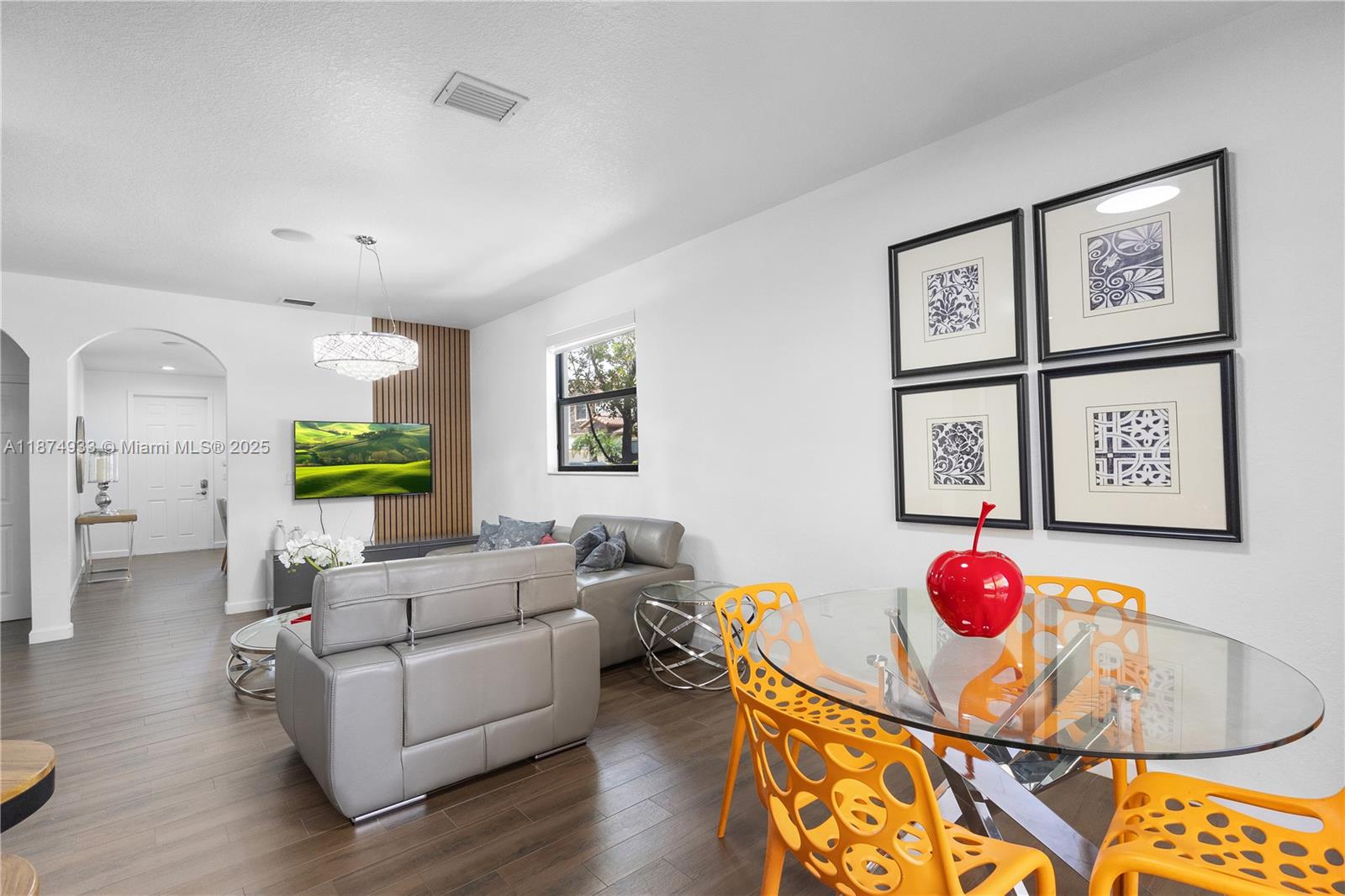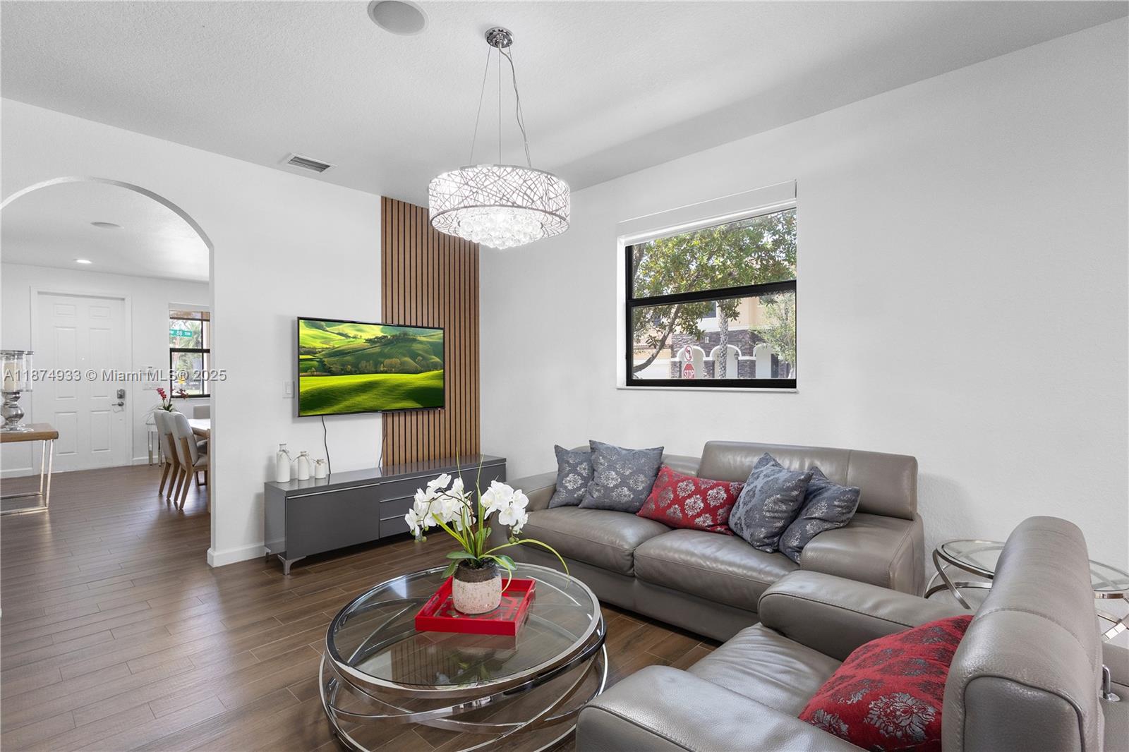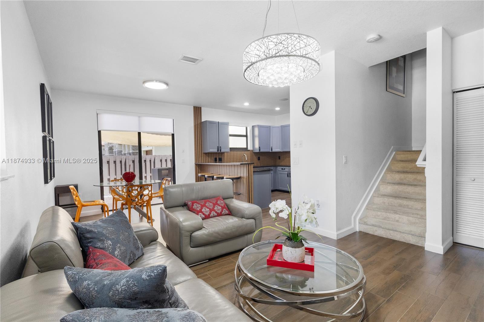 This beautiful home features a modern open-concept design, with a spacious living area and an elegant kitchen equipped with stainless steel appliances, granite countertops, and an eat-in island—perfect for family gatherings and entertaining. The first level boasts stylish wood-look porcelain tile flooring, while the second floor offers cozy carpeting. Enjoy outdoor living in the covered backyard patio, ideal for relaxing or hosting get-togethers. As a resident of Grand Bay Estates, you’ll have access to one of Doral’s largest and most exclusive clubhouses, featuring a resort-style pool, spa, fitness center, playground, splash park, basketball courts, and much more. The property is also conveniently located near top-rated schools, shopping centers, restaurants, and major highways.