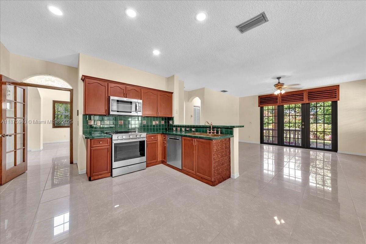 • Característica Interior:BreakfastBar, BreakfastArea, DiningArea, SeparateFormalDiningRoom, DualSinks, FrenchDoorsAtriumDoors, FirstFloorEntry, HighCeilings, SplitBedrooms, SeparateShower, UpperLevelPrimary, WalkInClosets