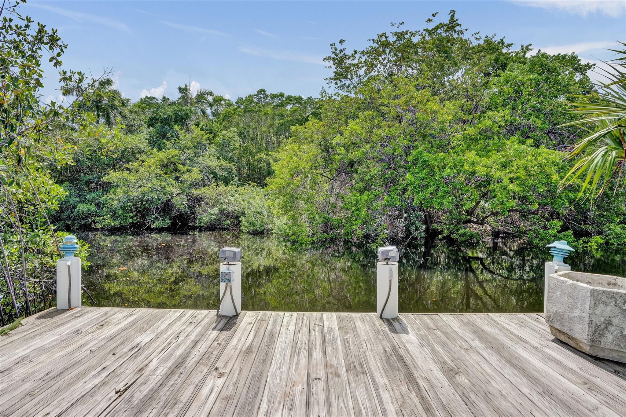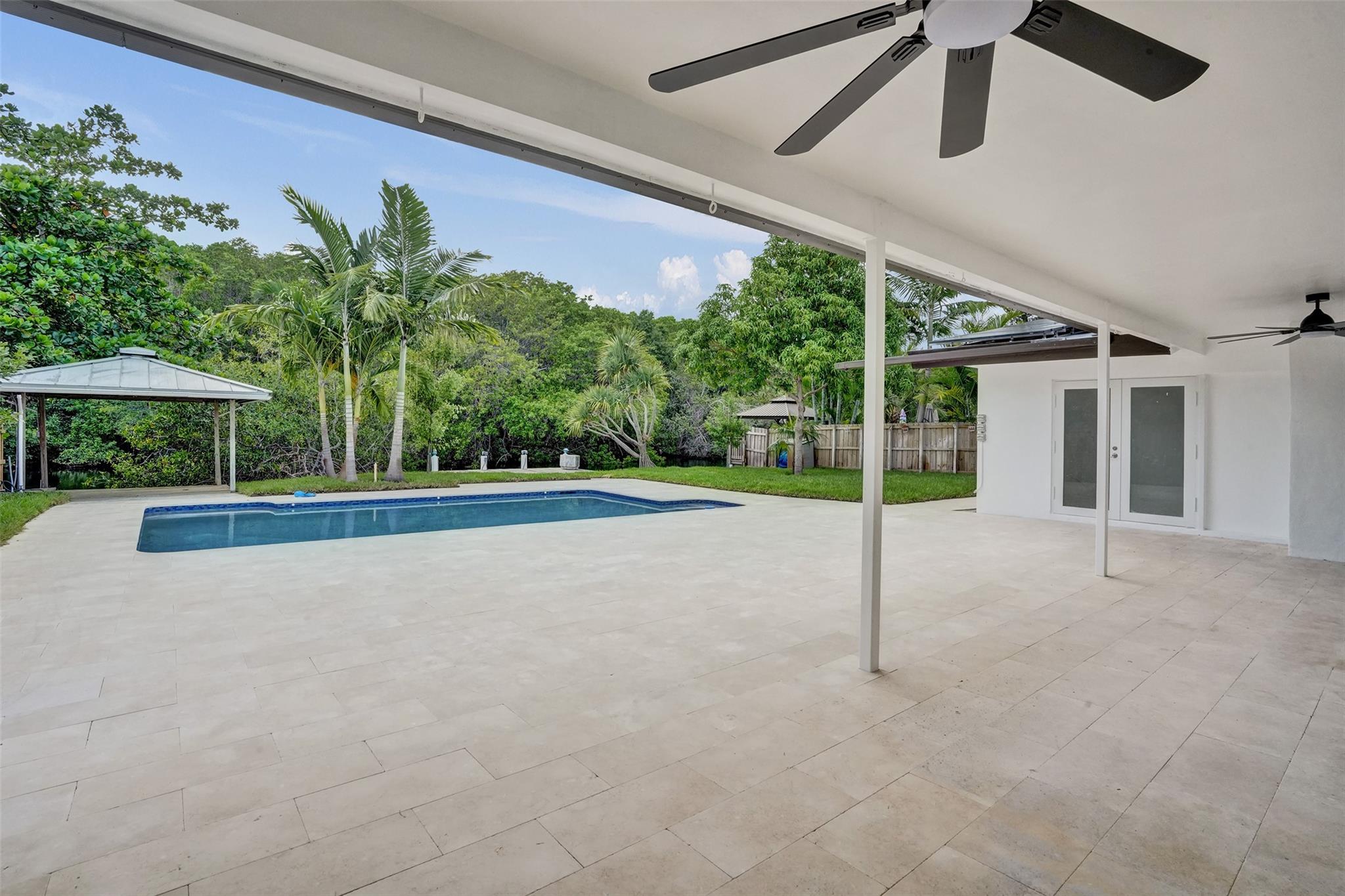 For those seeking a luxuriously remodeled, contemporary home w/ ocean access & extensive upgrades, look no further—this is your private paradise! Striking stacked-stone façade w/ 2002 metal roof & energy-efficient 2024 solar panels. Inside, the open-concept kitchen showcases shaker cabinetry, quartz counters, waterfall-edge bar & premium appliances accented in gold. Split BR layout ensures privacy, while spa-inspired baths create a resort-like atmosphere. Elegant porcelain tile flows thru/out, supported by a 2-zone AC system (2020/2022). Step outside to your oversized backyard designed for entertaining, featuring Jerusalem stone patio, sparkling pool, tiki hut & private dock. 2-car garage, sep. laundry, upgraded lighting, fans & more add to this exceptional property...a true must-see!