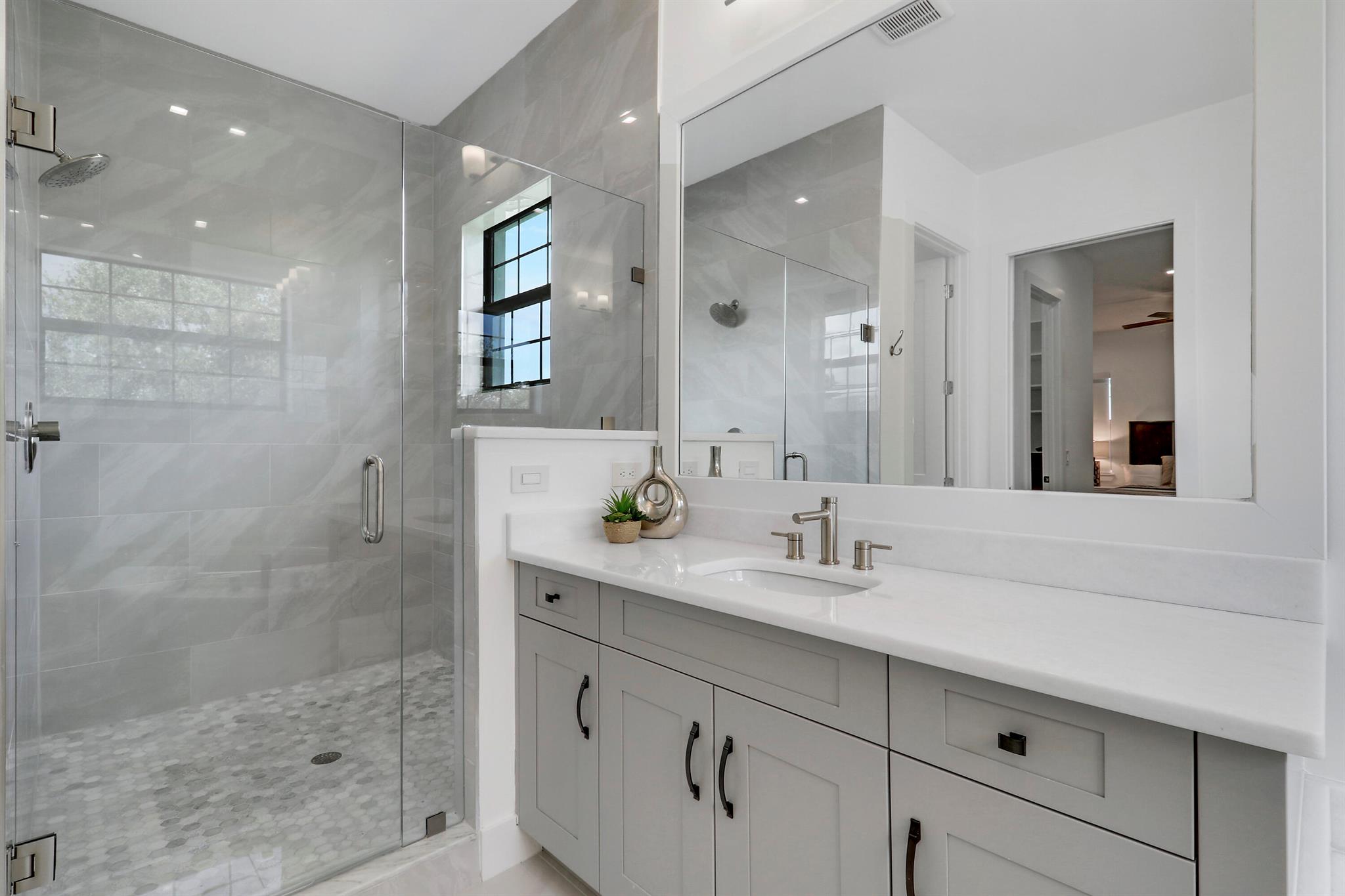 Welcome to the gated community of Banyan Cay, where luxury living meets modern design. This stunning Grenada model built in 2021 offers 3 bedrooms and 3.5 bathrooms plus a 2-car garage, complemented by exceptional upgrades and thoughtful details throughout. An elegant den features custom built-in shelves with a library ladder and a cozy seating area, while the chef's kitchen boasts floor-to-ceiling cabinetry, quartz countertops, and upgraded appliances.The main level includes a bedroom with an attached full bathroom, perfect for guests, a large storage closet under the stairs, and open living spaces that feature motorized shades. Sliding doors in the living room and kitchen open seamlessly to the covered patio, creating inviting indoor/outdoor living during the cooler months.
