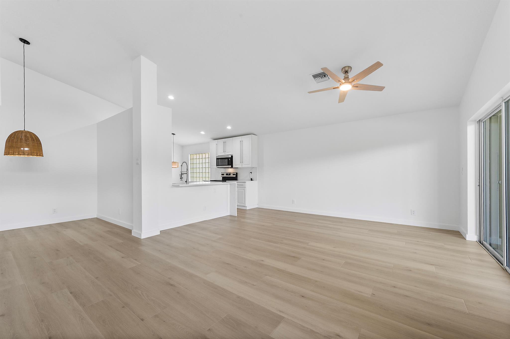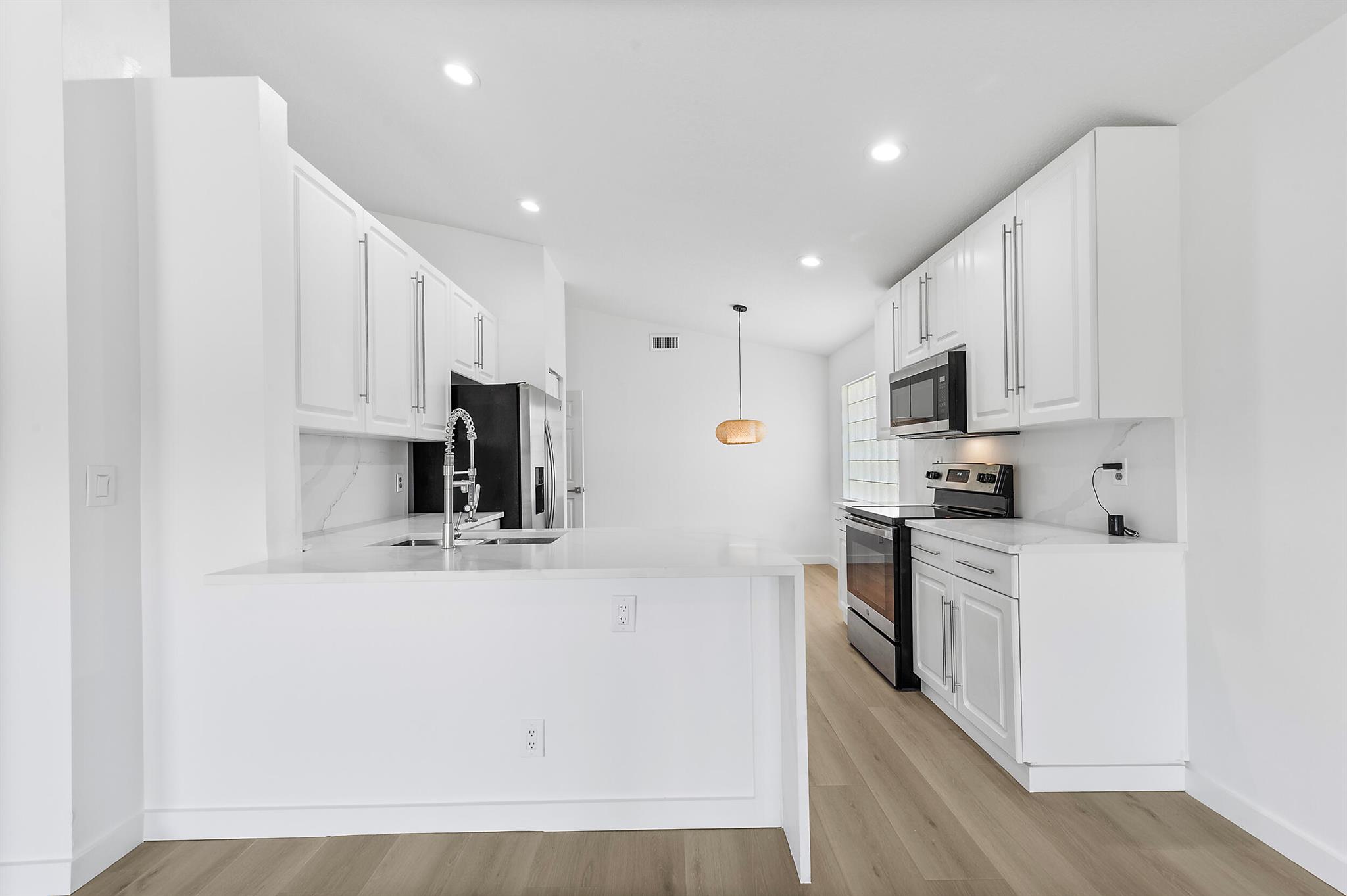 Beautifully renovated home with extensive upgrades! Enjoy a new AC system, vinyl waterproof plank flooring (20-yr warranty), fresh paint, new baseboards & moldings, updated appliances, quartz counters with backsplash, LED lighting, dual sink, faucets, and door hardware. Complete hurricane protection with accordion shutters. Screened patio, new ceiling fans, ADA toilets, new water heater. Located in a desirable 55+ gated community with low HOA covering internet, cable & security. HOA repaints homes regularly. Just a 5-minute walk to a nearby house of worship!